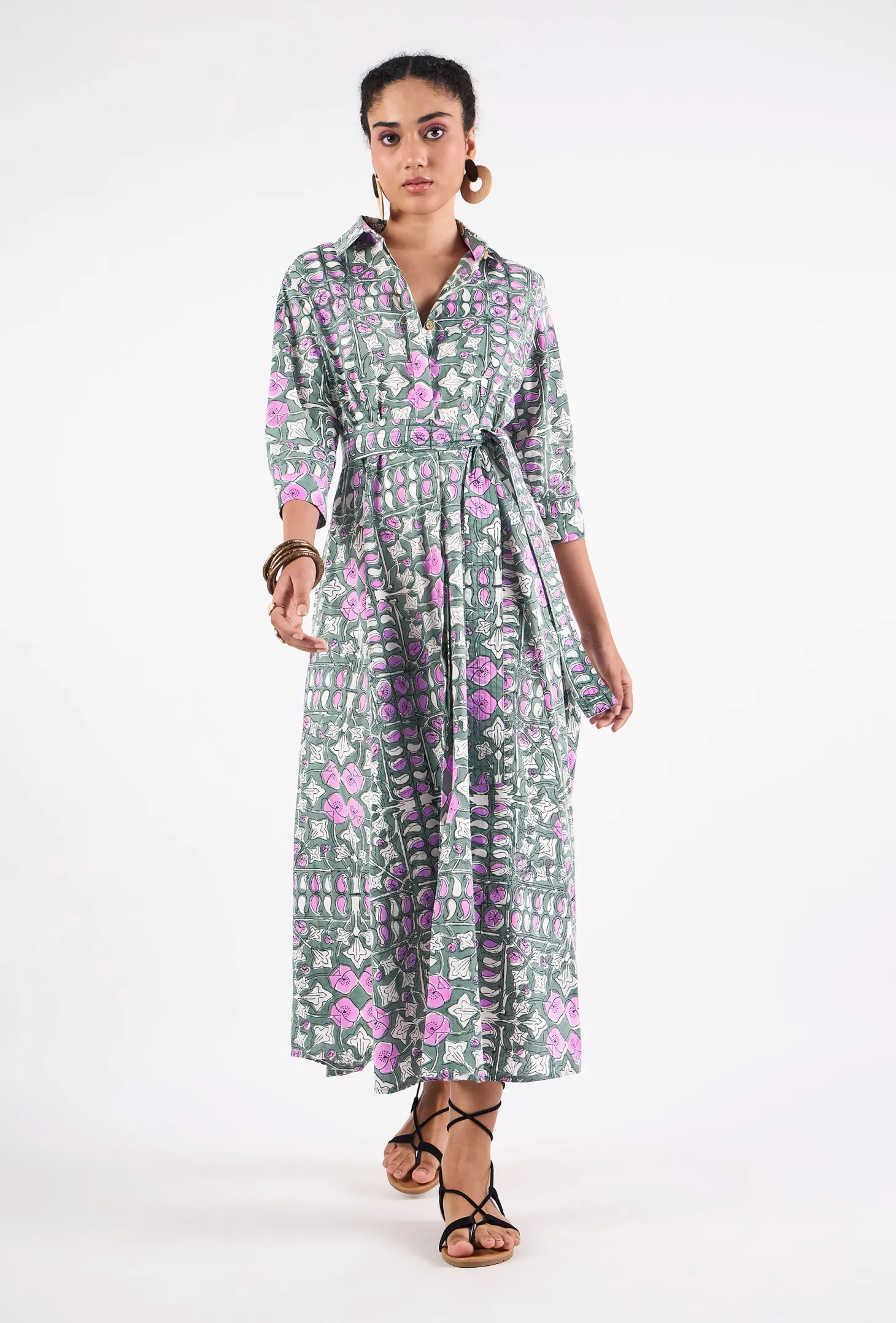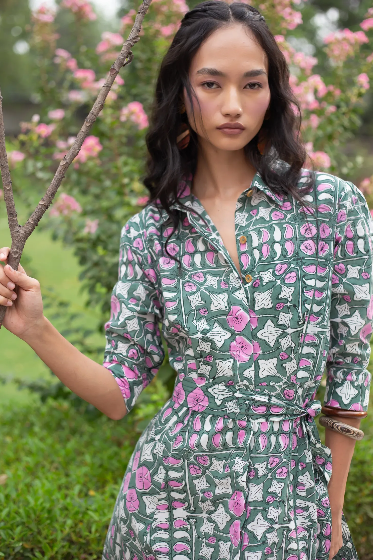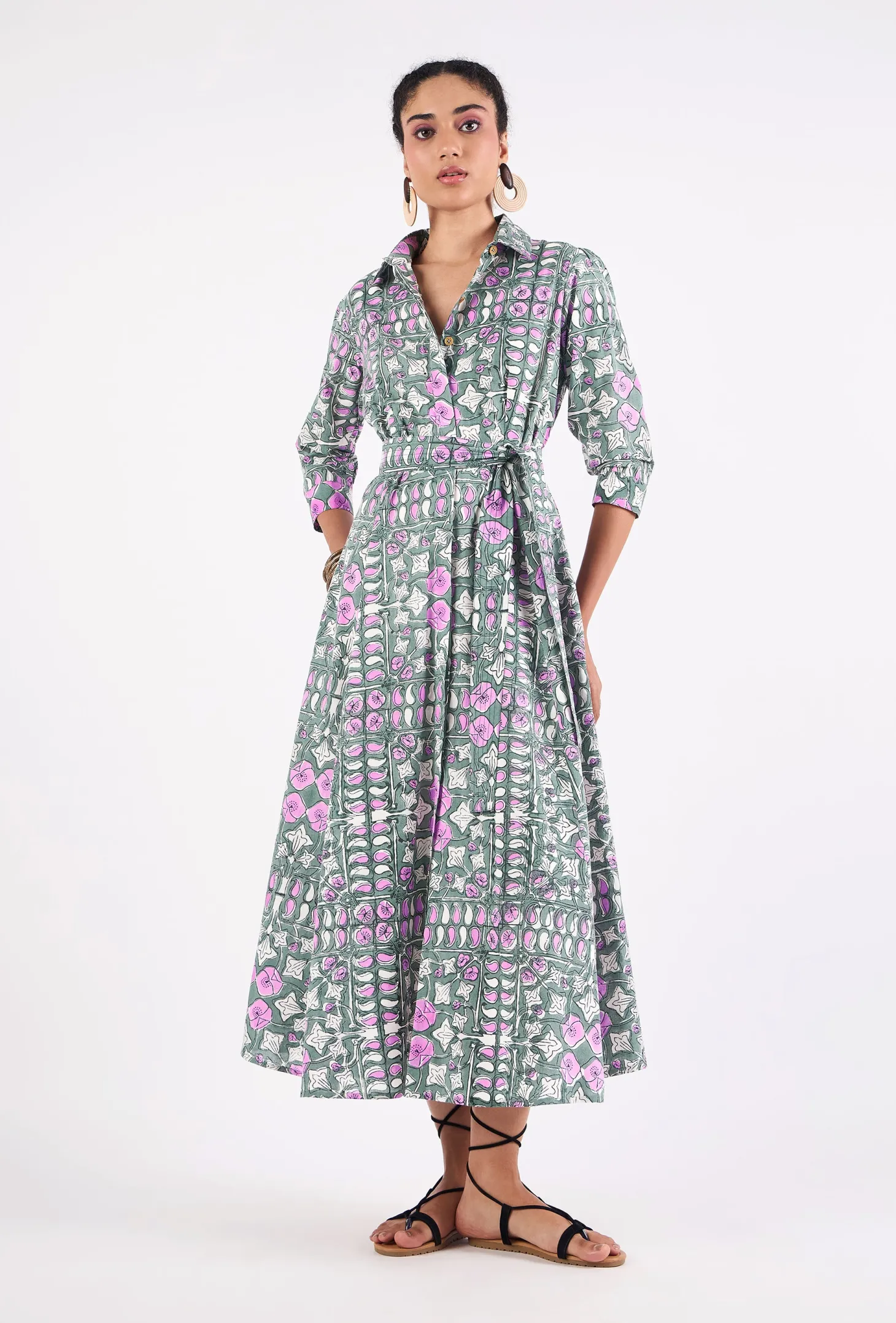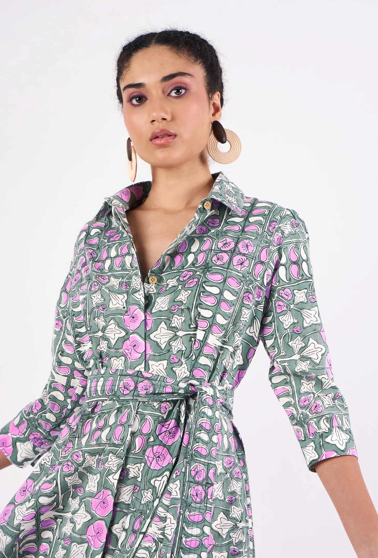 Emily is a classic shirt dress with an elegant ease and a flattering, effortless silhouette. The dress buttons down at the front and features 3/4 sleeves. Emily is made from a soft, breathable cotton cambric fabric. This print design is inspired by the rustic floral patterns typical for antique French tiles. The print combines the allure of old-world France with modern design sensibilities.