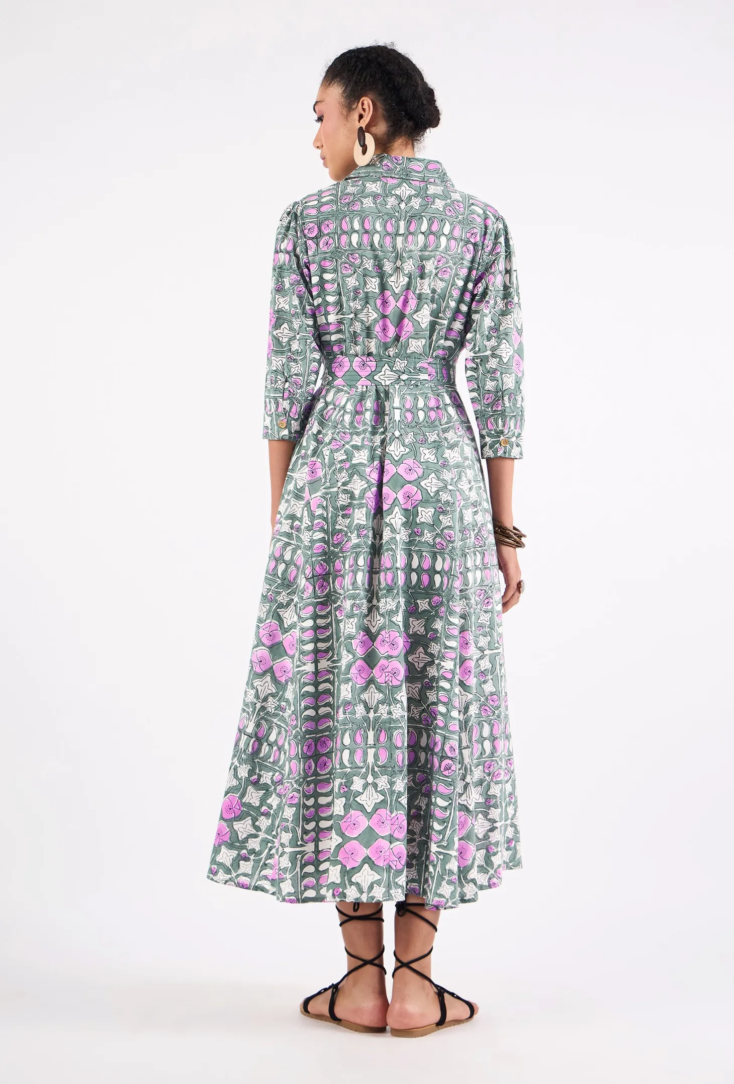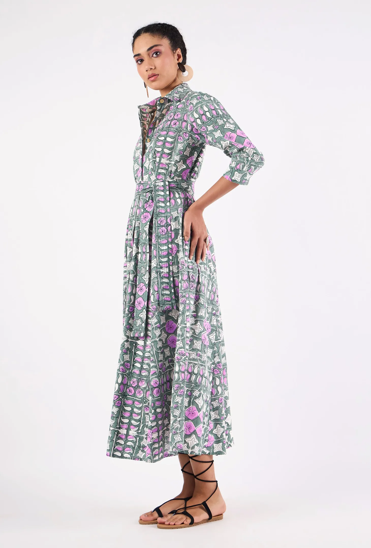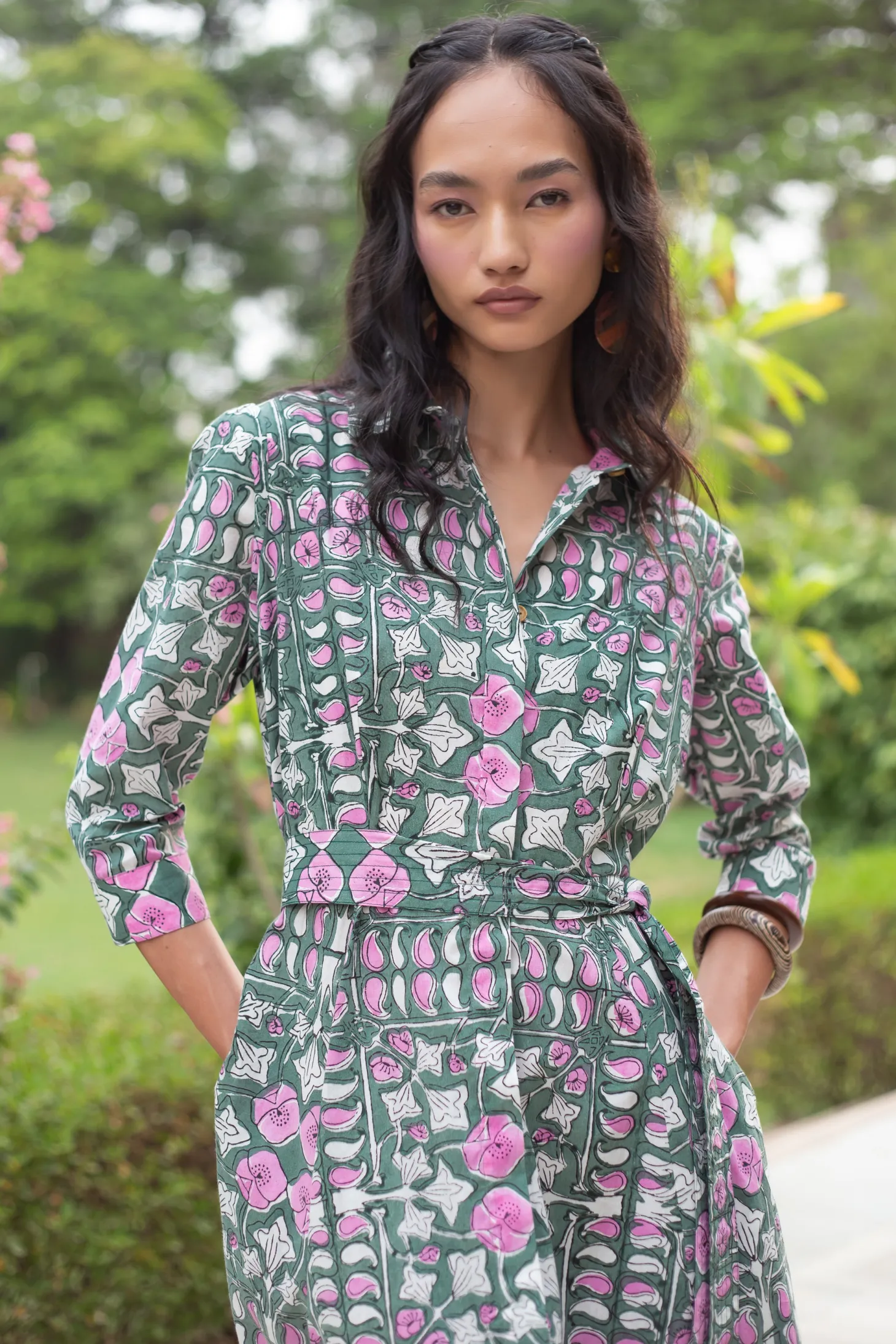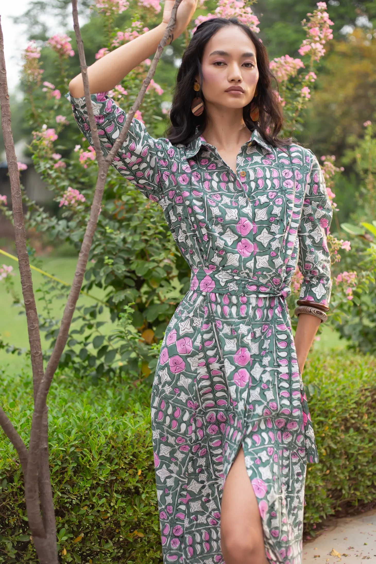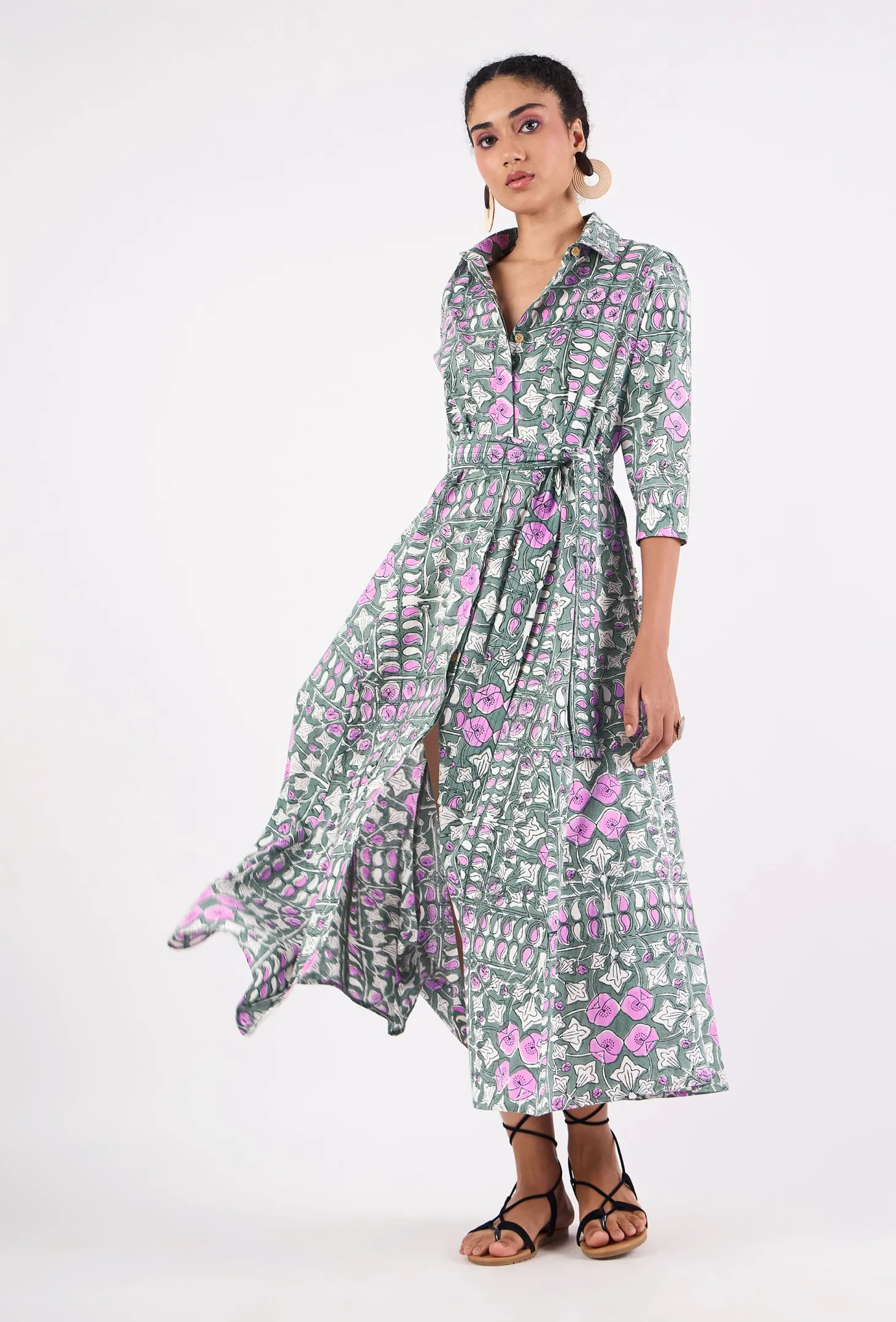 Emily is a classic shirt dress with an elegant ease and a flattering, effortless silhouette. The dress buttons down at the front and features 3/4 sleeves. Emily is made from a soft, breathable cotton cambric fabric. This print design is inspired by the rustic floral patterns typical for antique French tiles. The print combines the allure of old-world France with modern design sensibilities.