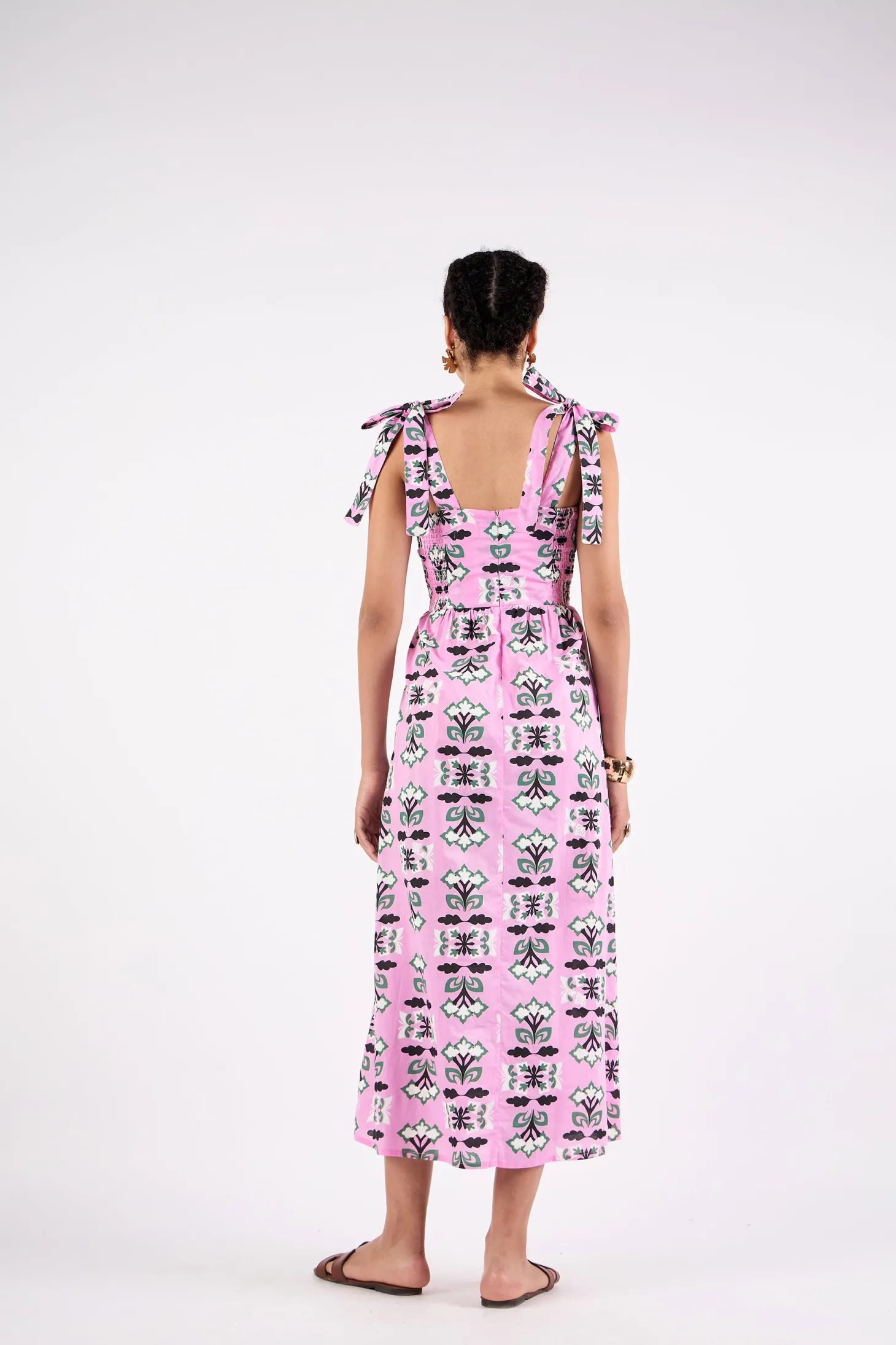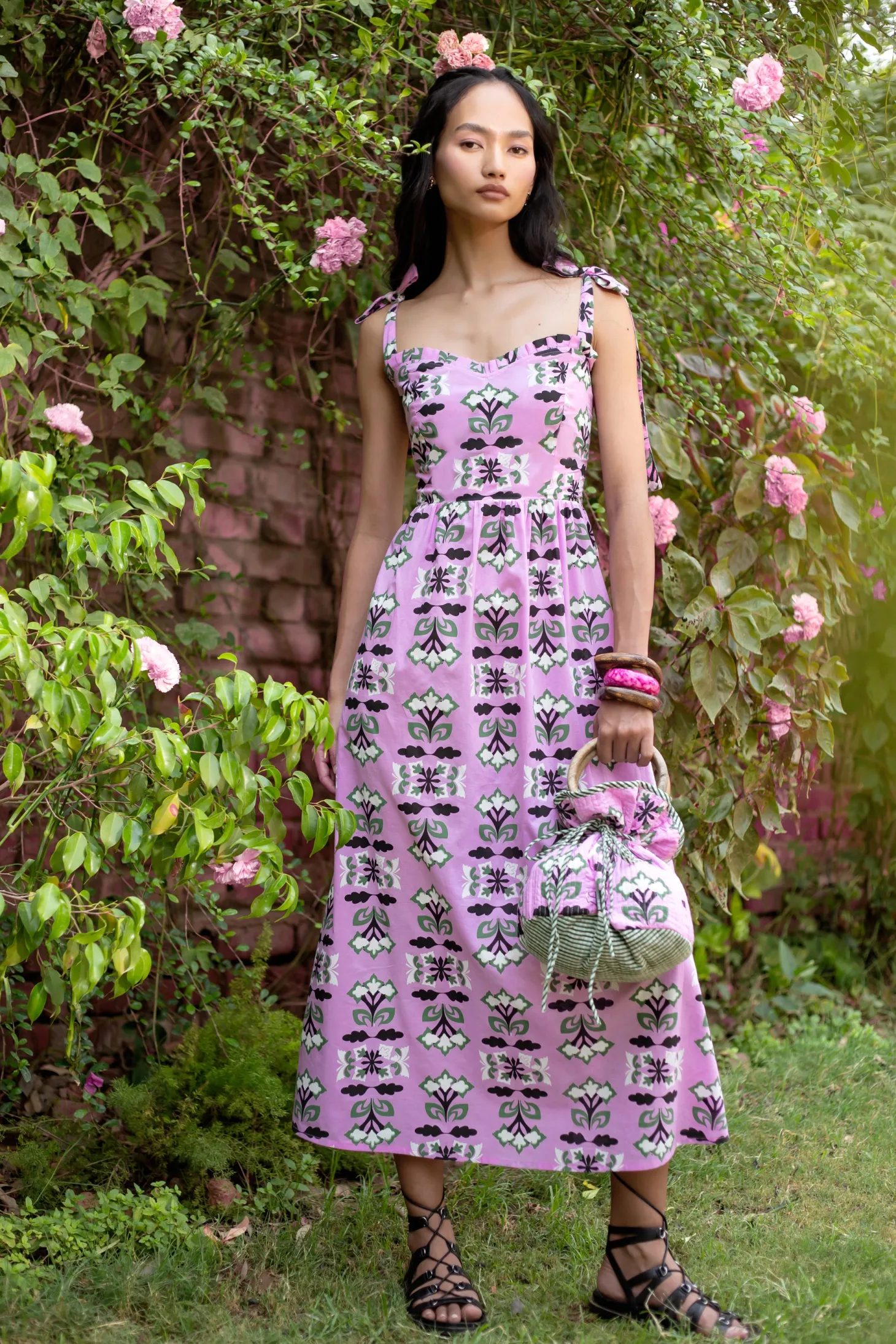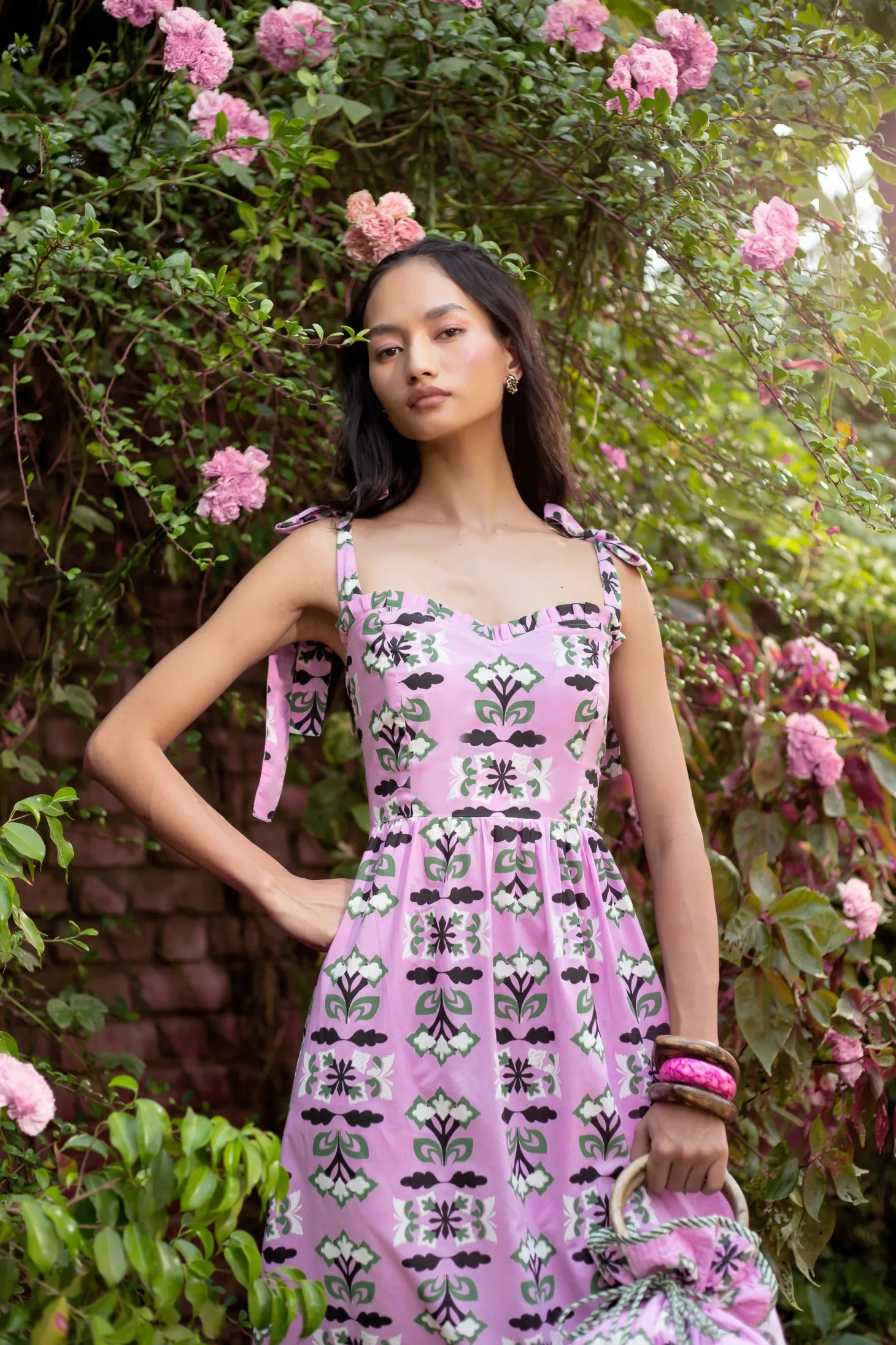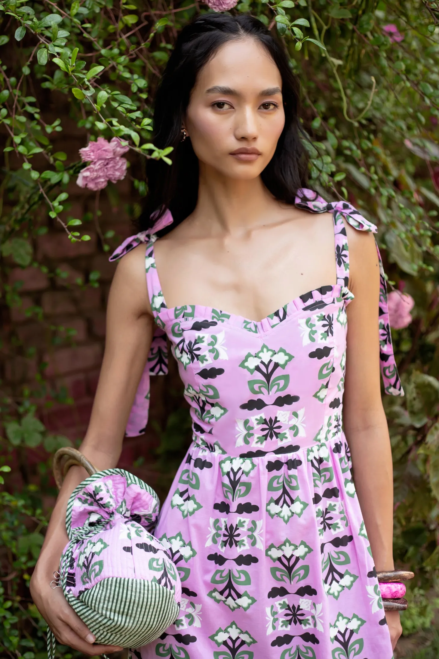With a nod to vintage 60s silhouettes, the Jackie dress showcases a sweetheart neckline, fitted bodice, and flattering A-line design. Channel modern romance with this dress perfect for date nights, champagne-filled soirées, and garden parties. Jackie is made from a soft, breathable cotton cambric fabric. Taking cues from the spectacular butterflies native to the Pyrenees, this design uses simple flower and butterfly motifs to create a captivating geometric pattern.