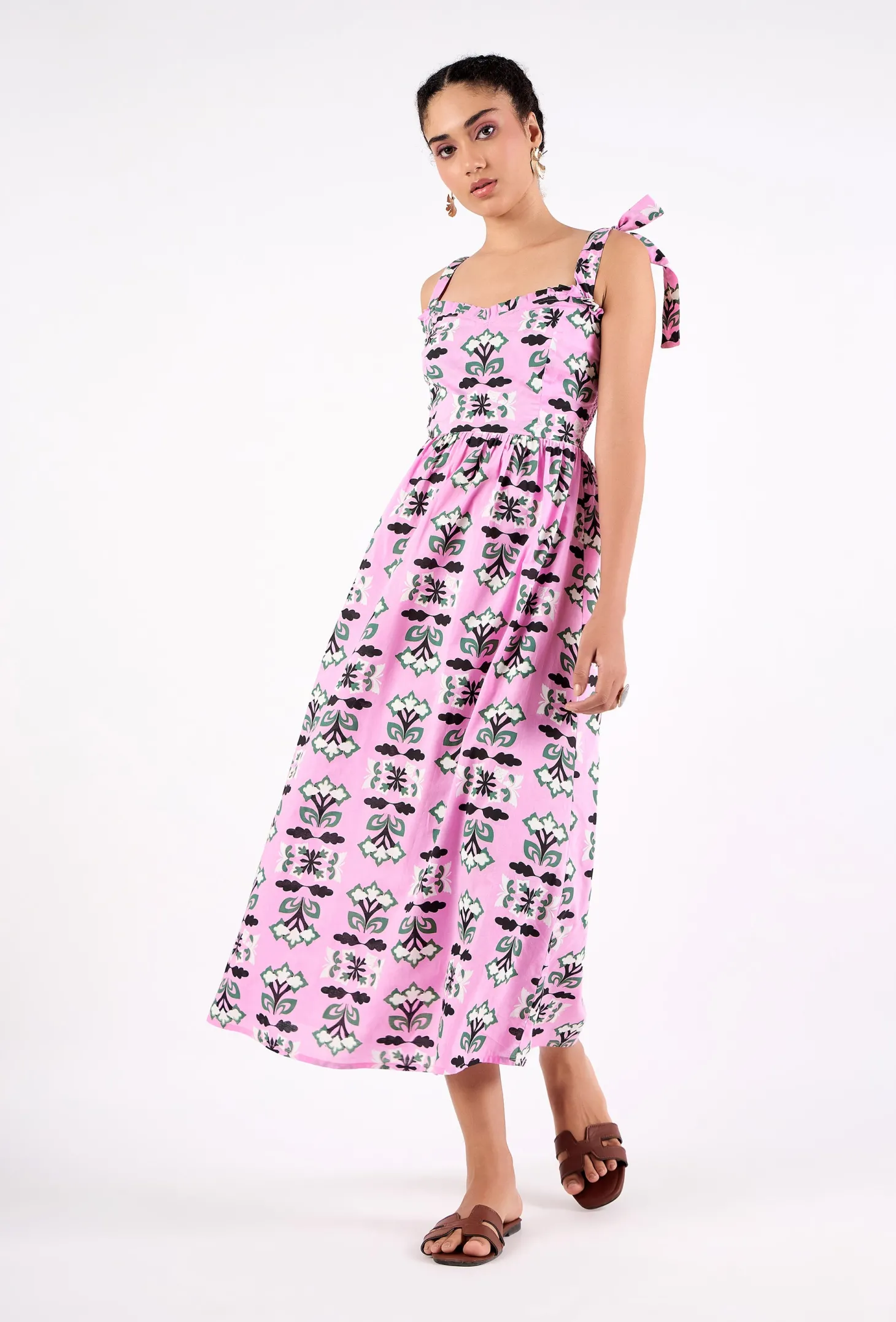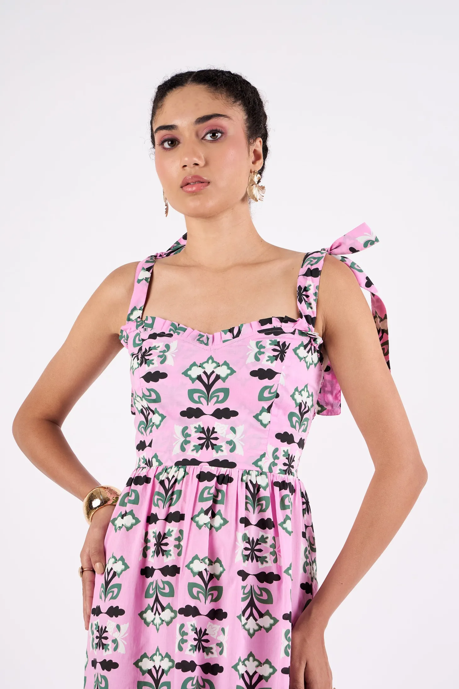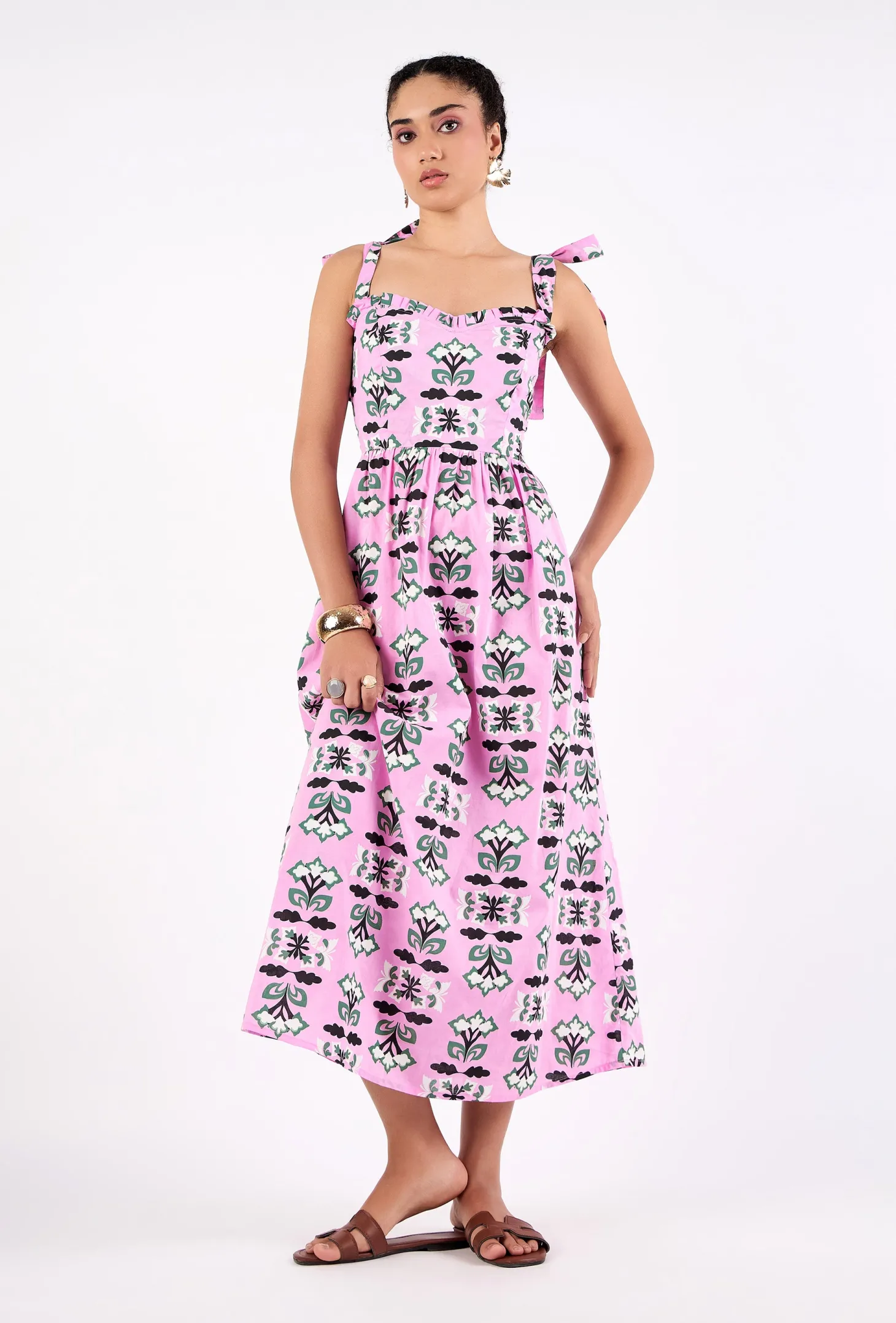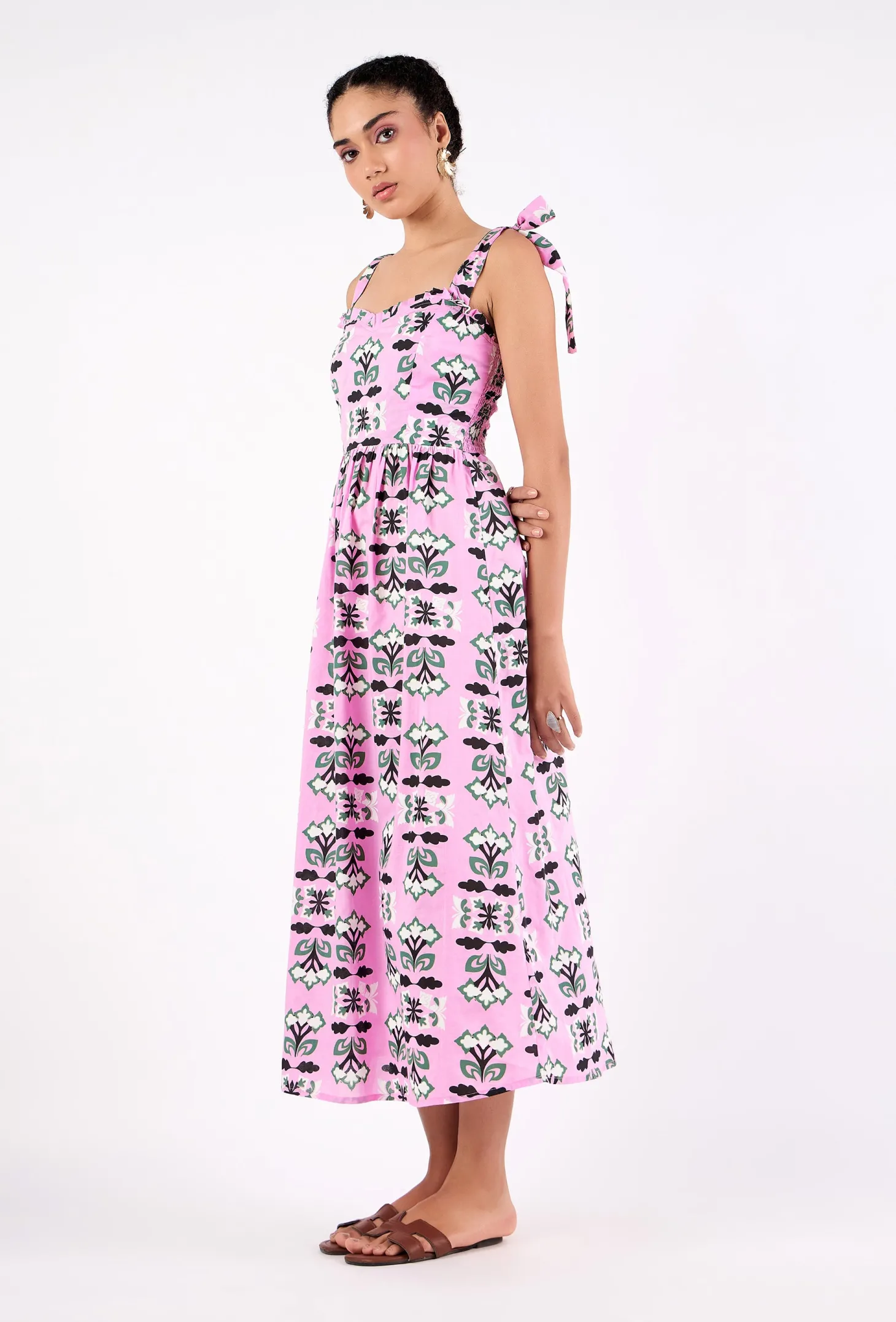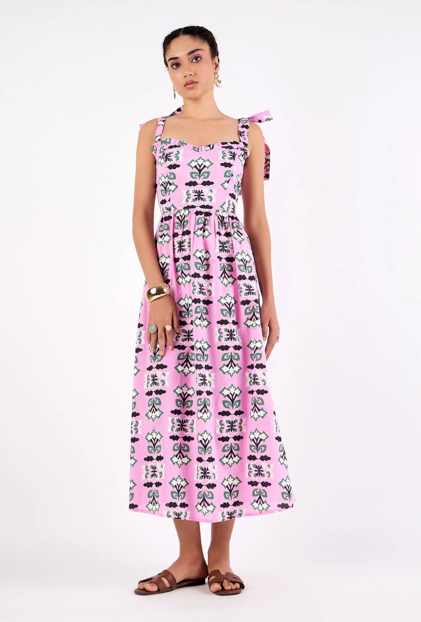 With a nod to vintage 60s silhouettes, the Jackie dress showcases a sweetheart neckline, fitted bodice, and flattering A-line design. Channel modern romance with this dress perfect for date nights, champagne-filled soirées, and garden parties. Jackie is made from a soft, breathable cotton cambric fabric. Taking cues from the spectacular butterflies native to the Pyrenees, this design uses simple flower and butterfly motifs to create a captivating geometric pattern.
