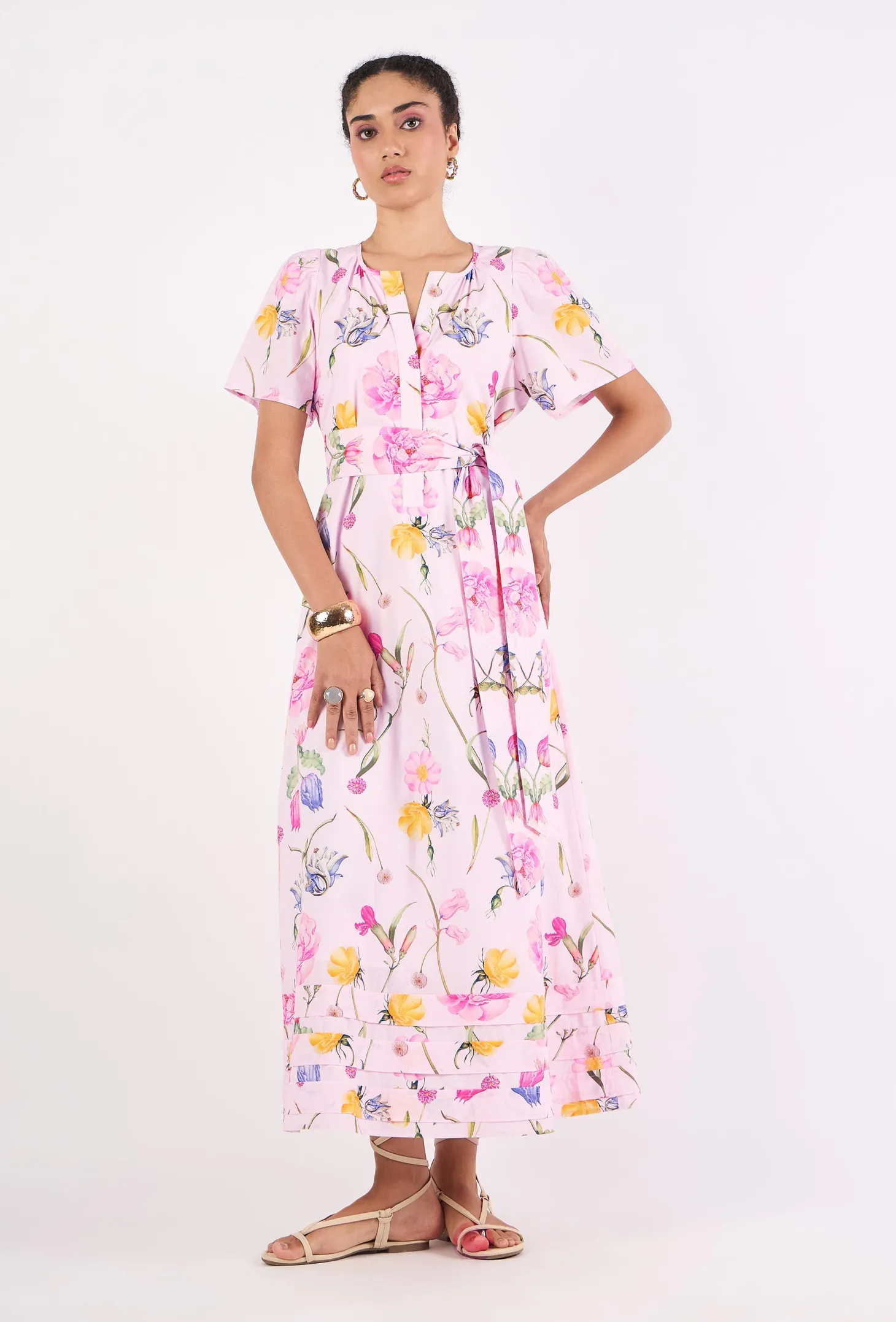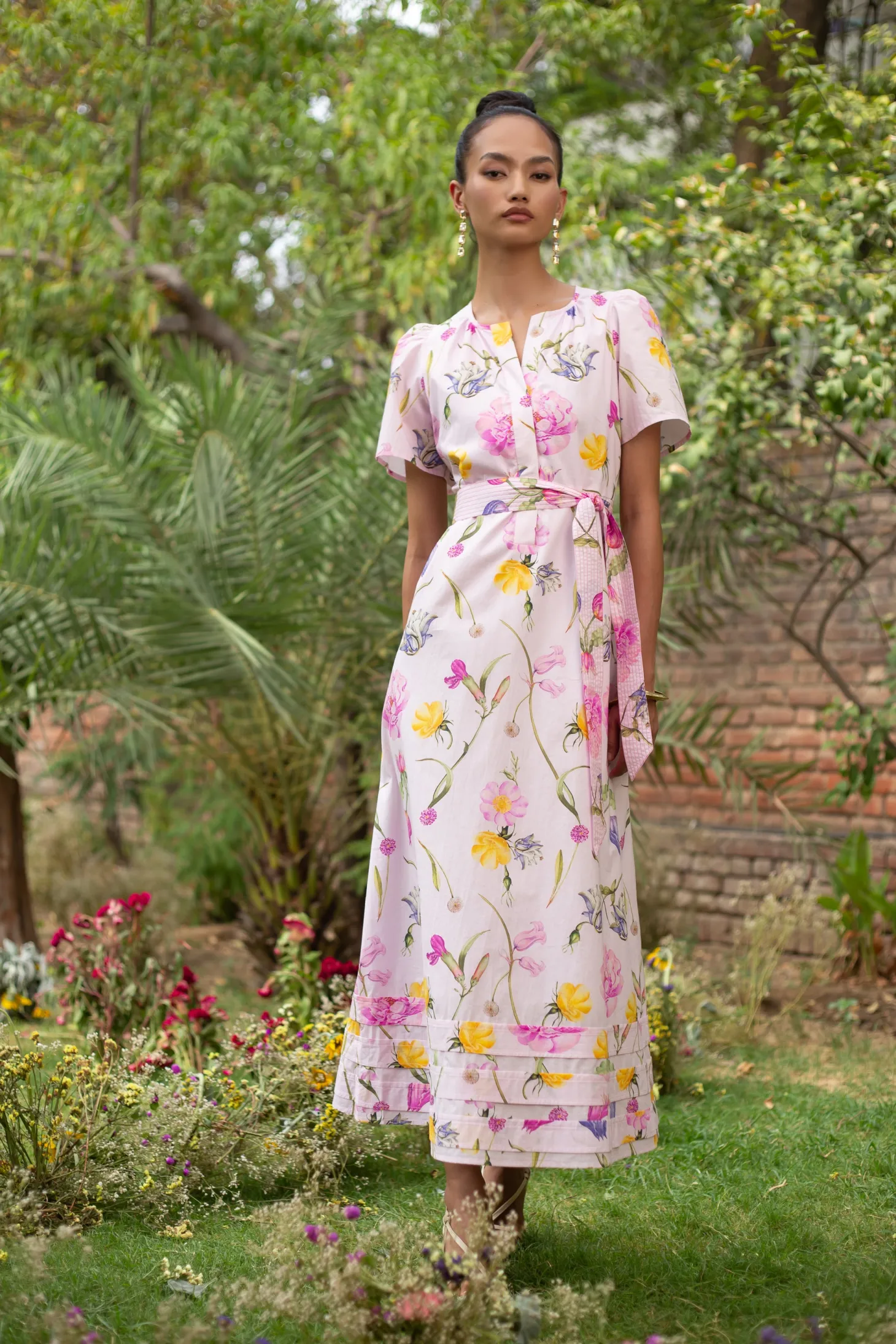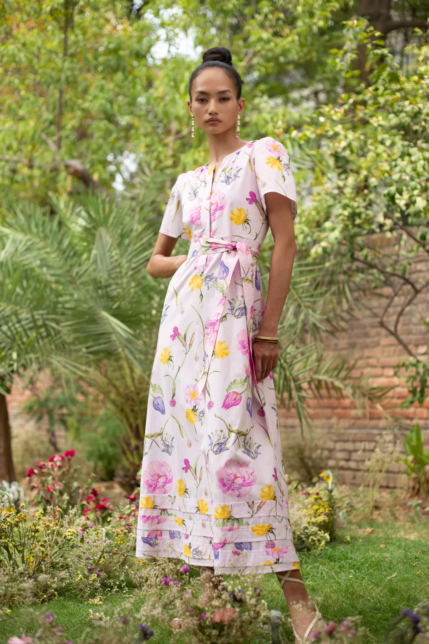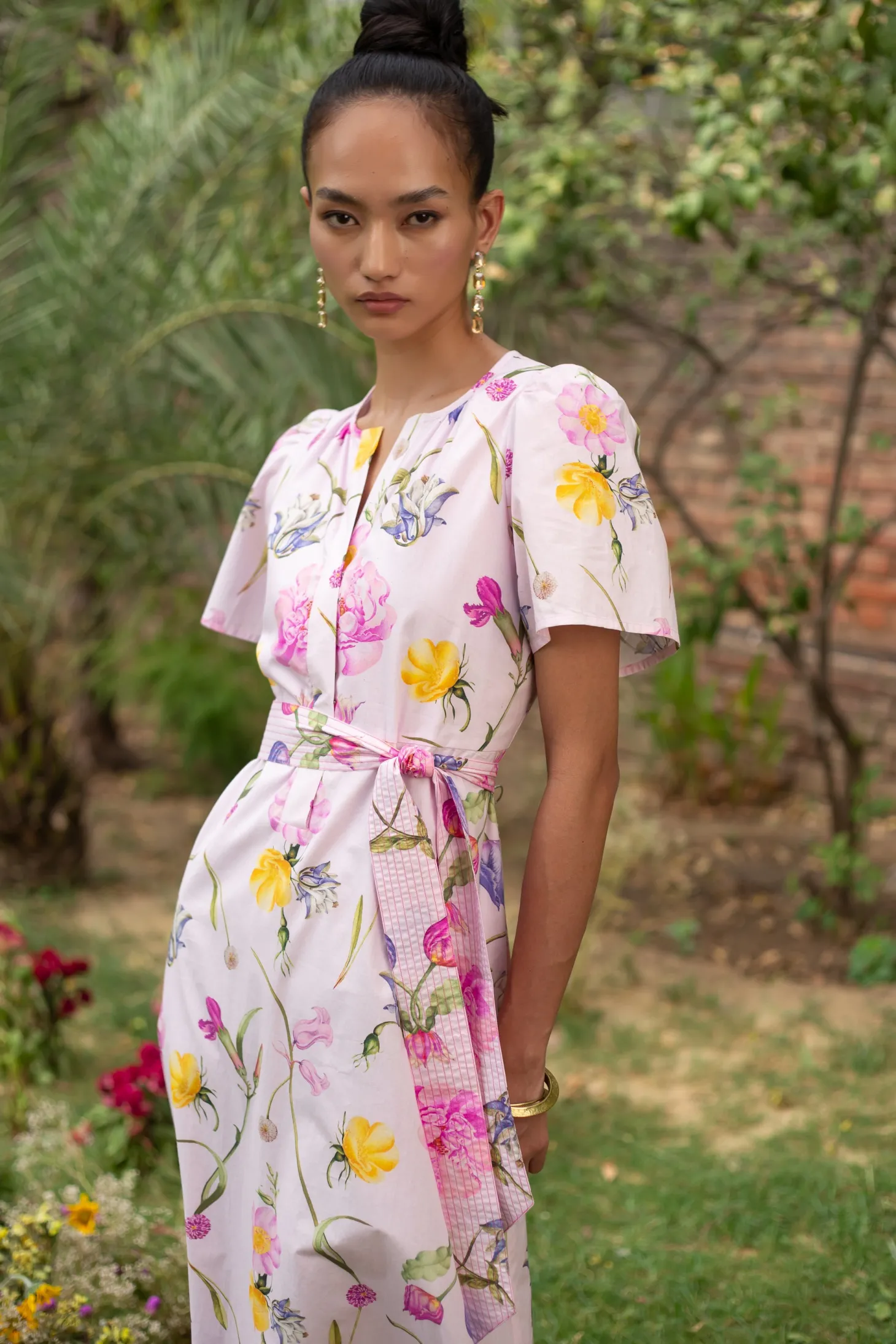 Meet Suzi, a versatile new silhouette designed to flatter all body types. The pullover midi dress boasts an adjustable V-neckline, semi-puff, straight sleeves and A-line skirt with pin-tucked details. The relaxed waist can be cinched with the included belt, making it an ideal dress to elevate your everyday style. Suzi is crafted from breathable premium Cotton Poplin. Drawing inspiration from the traditional perfume-making craft in Provence, this print evokes the magic of turning jasmine, iris and roses into an alluring fragrance.