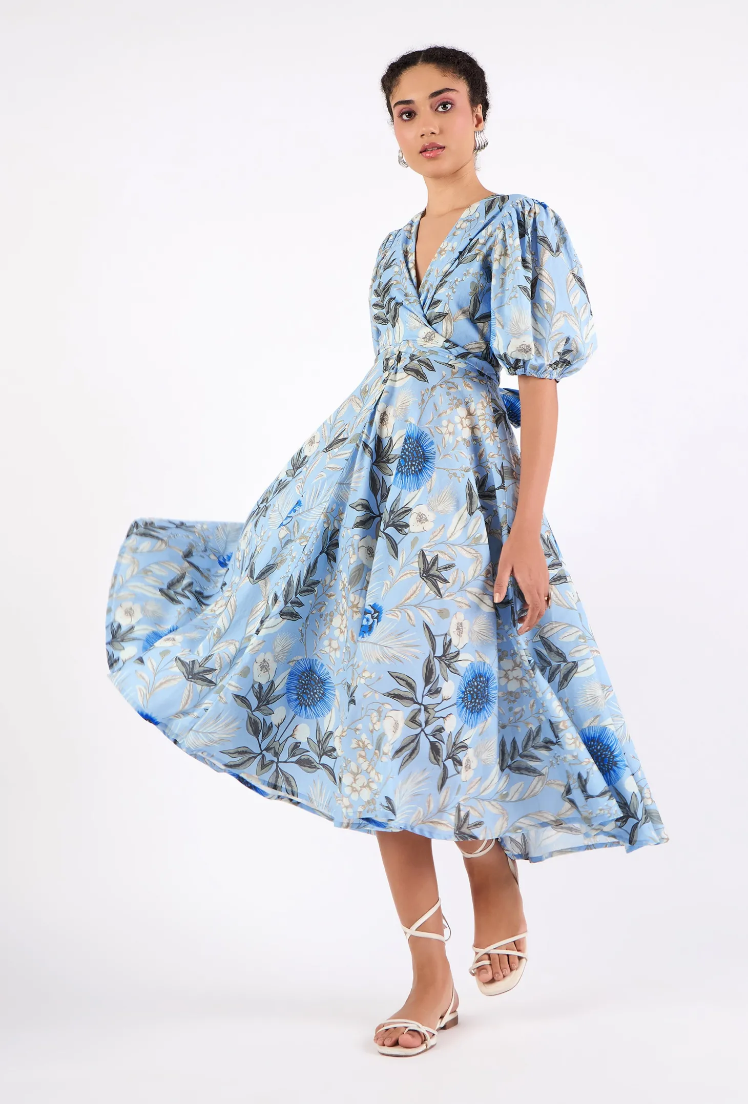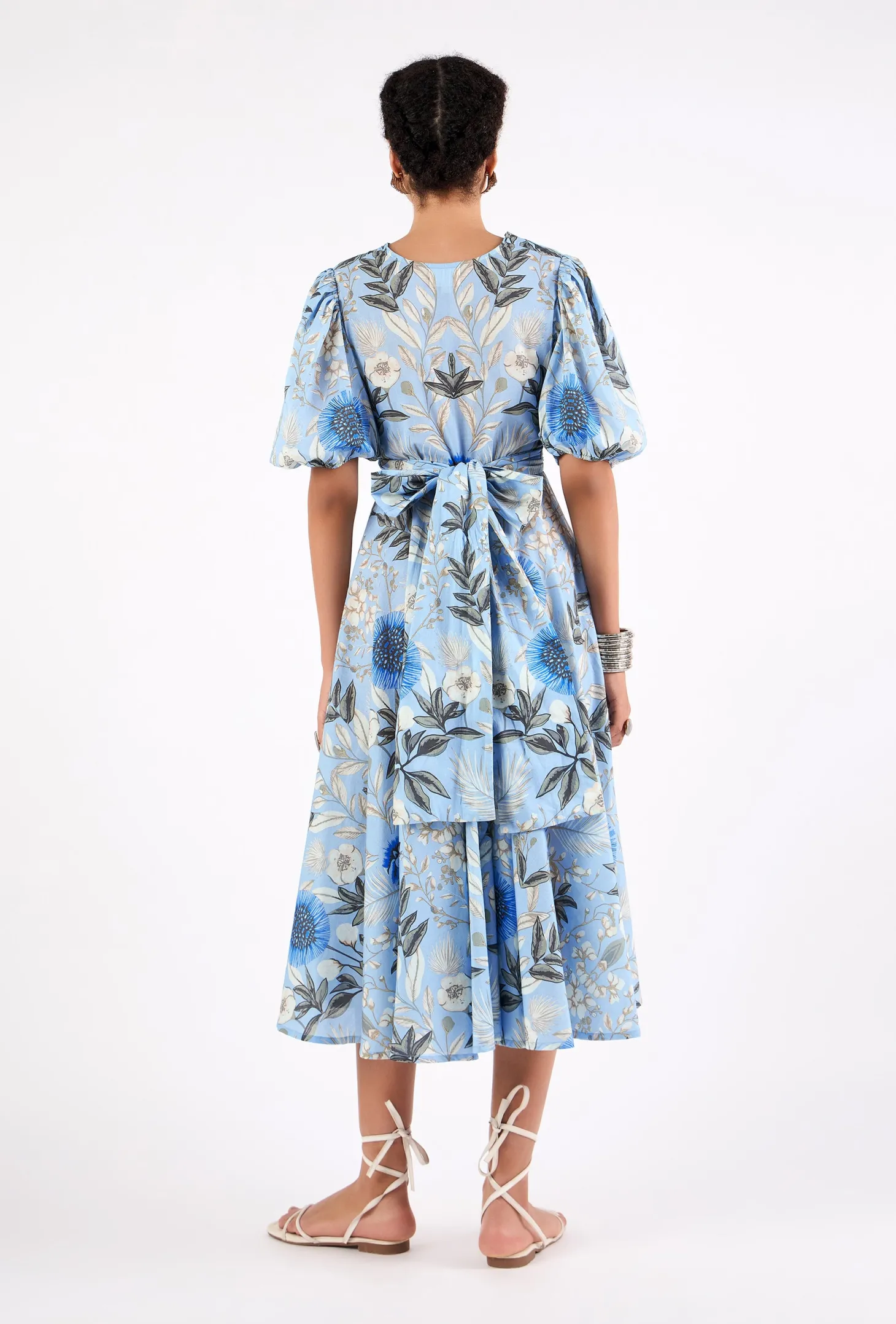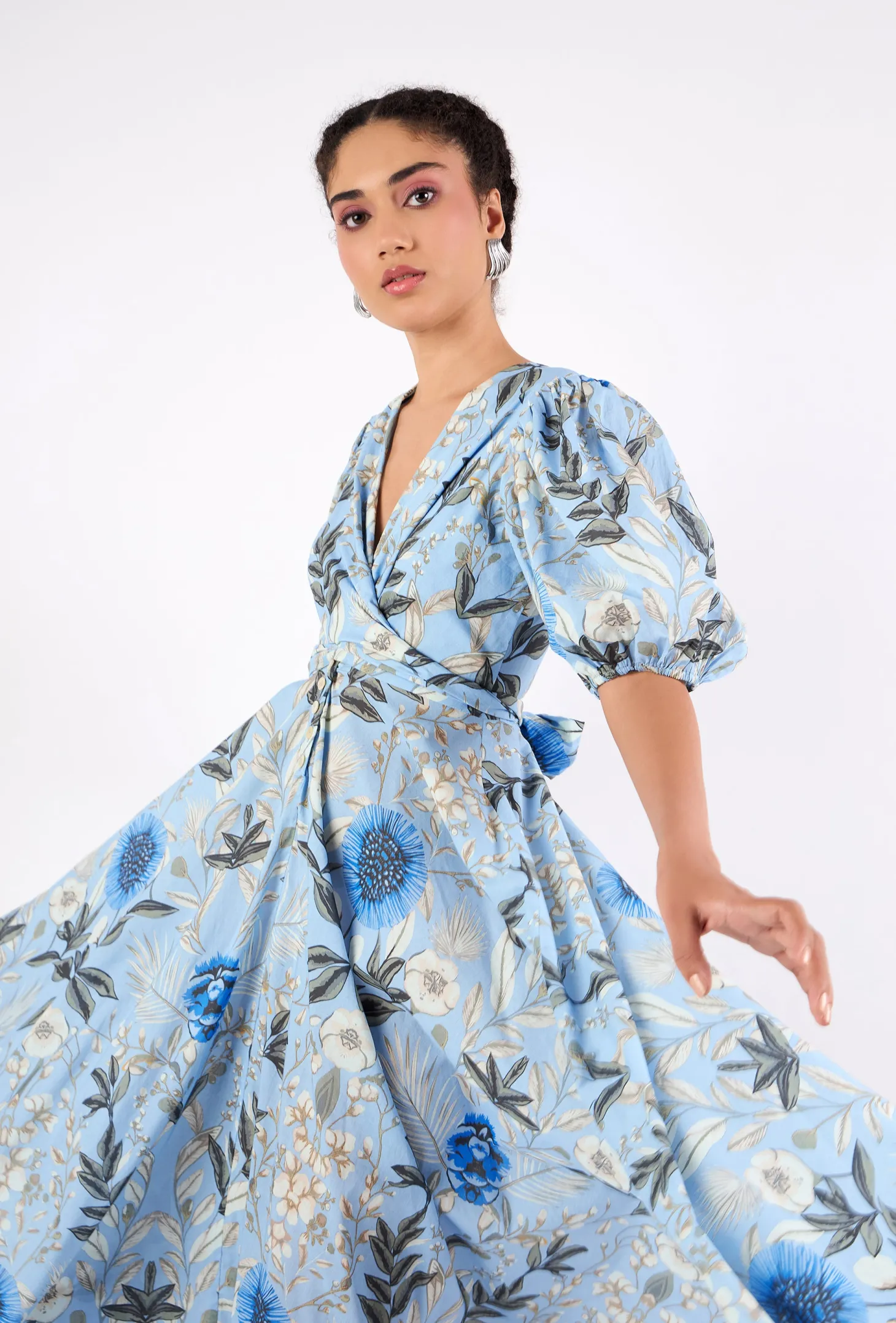 Lola is our signature style and all-time favorite. Crafted from 8 meters of softest, breathable cotton, the Lola is made to twirl in and spread joy! She is chic, easy-to-wear and incredibly versatile: Tie her in the front (with a bow) for an enticing, deep V-neckline or in the back for a bit more coverage. This print captures the enchanting beauty of Claude Monet’s garden in Normandy, famously depicted in the paintings of the renowned French painter.