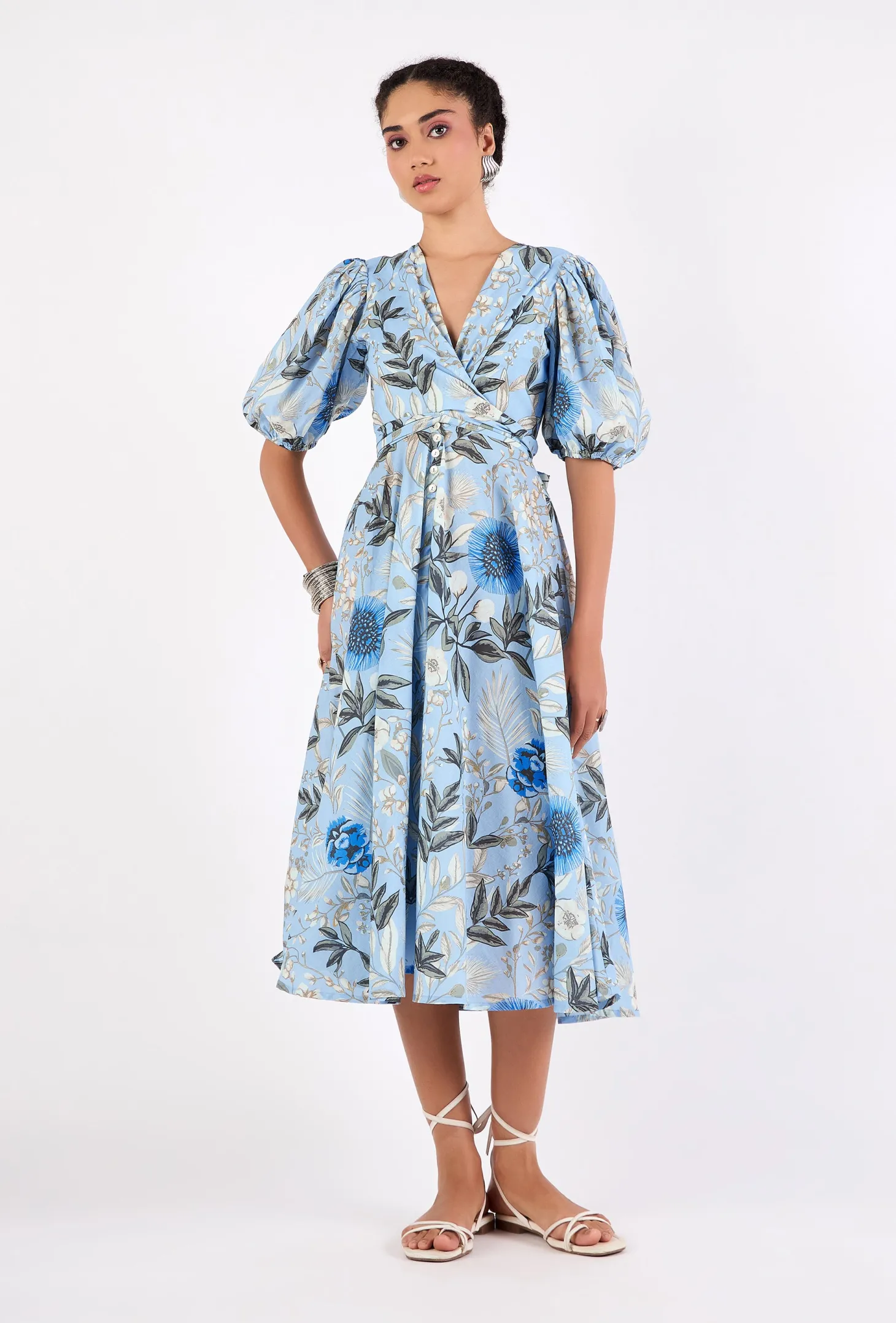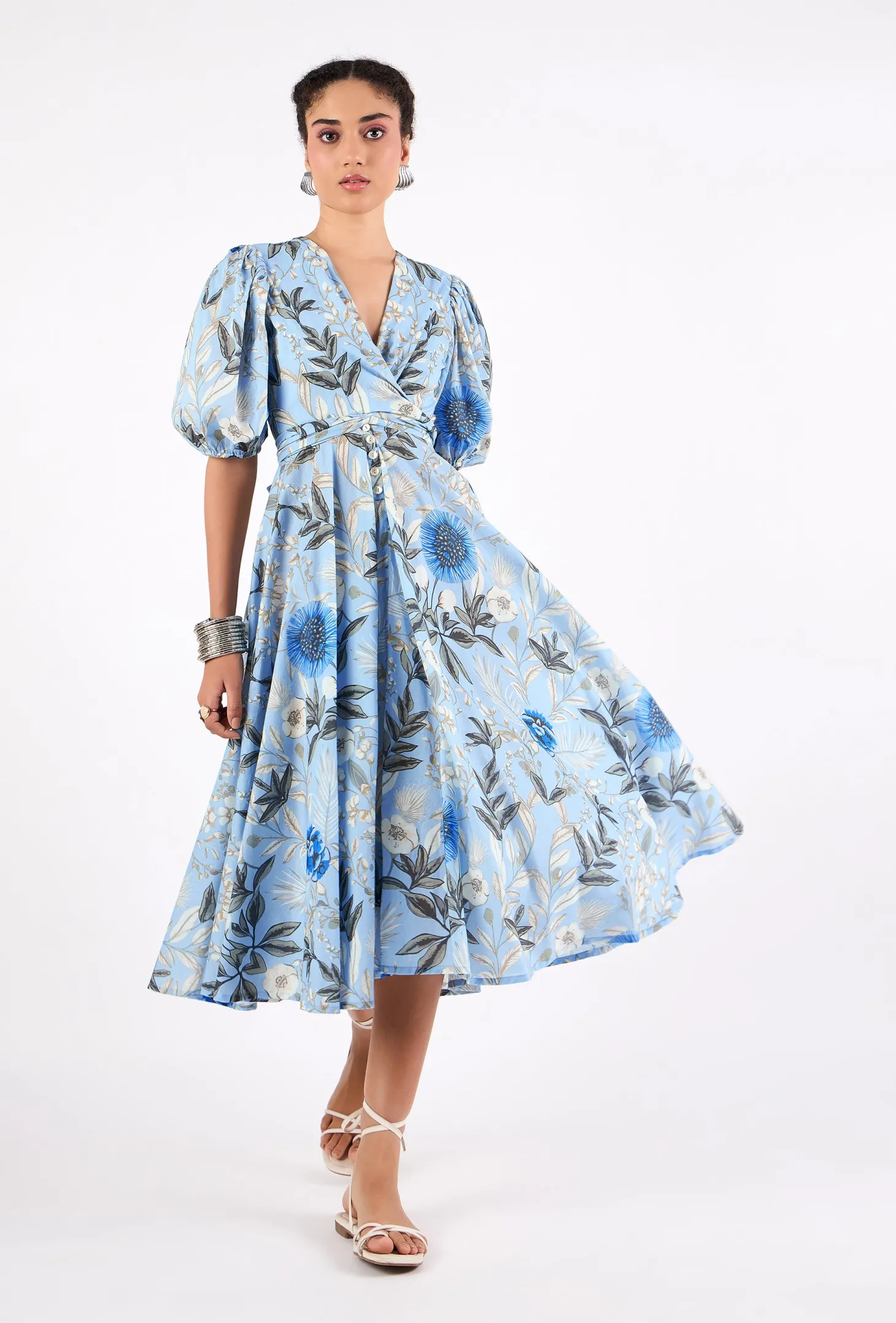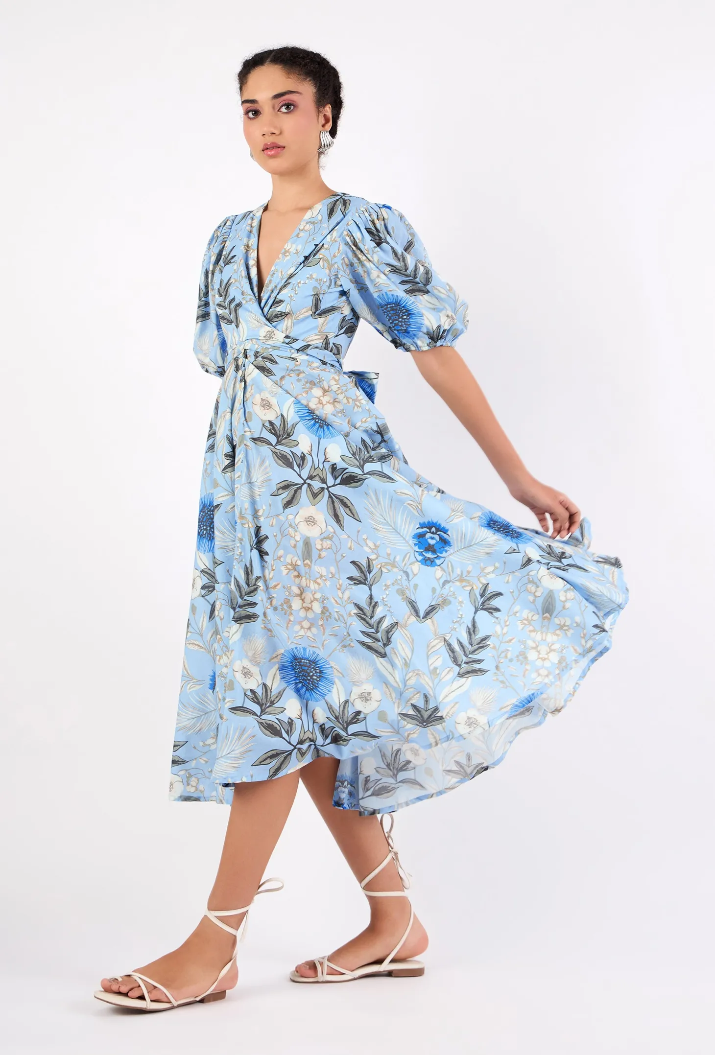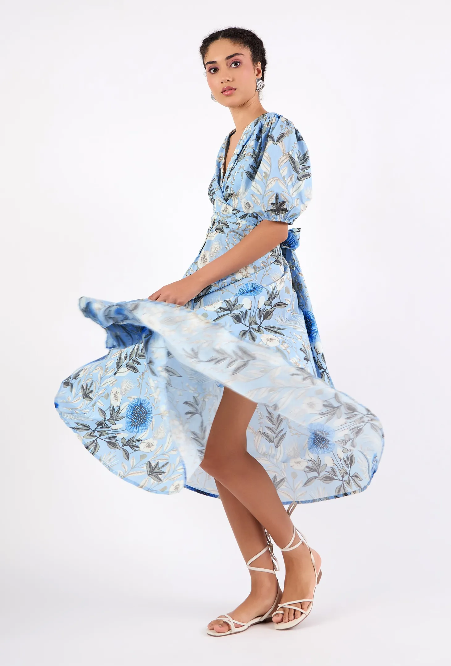 Lola is our signature style and all-time favorite. Crafted from 8 meters of softest, breathable cotton, the Lola is made to twirl in and spread joy! She is chic, easy-to-wear and incredibly versatile: Tie her in the front (with a bow) for an enticing, deep V-neckline or in the back for a bit more coverage. This print captures the enchanting beauty of Claude Monet’s garden in Normandy, famously depicted in the paintings of the renowned French painter.