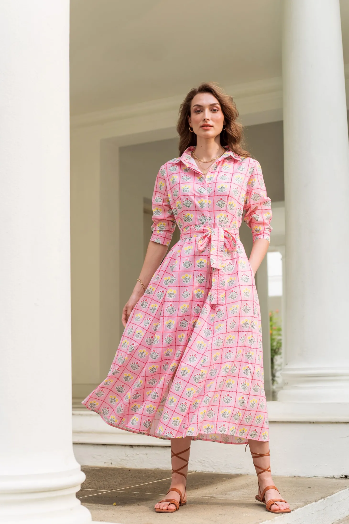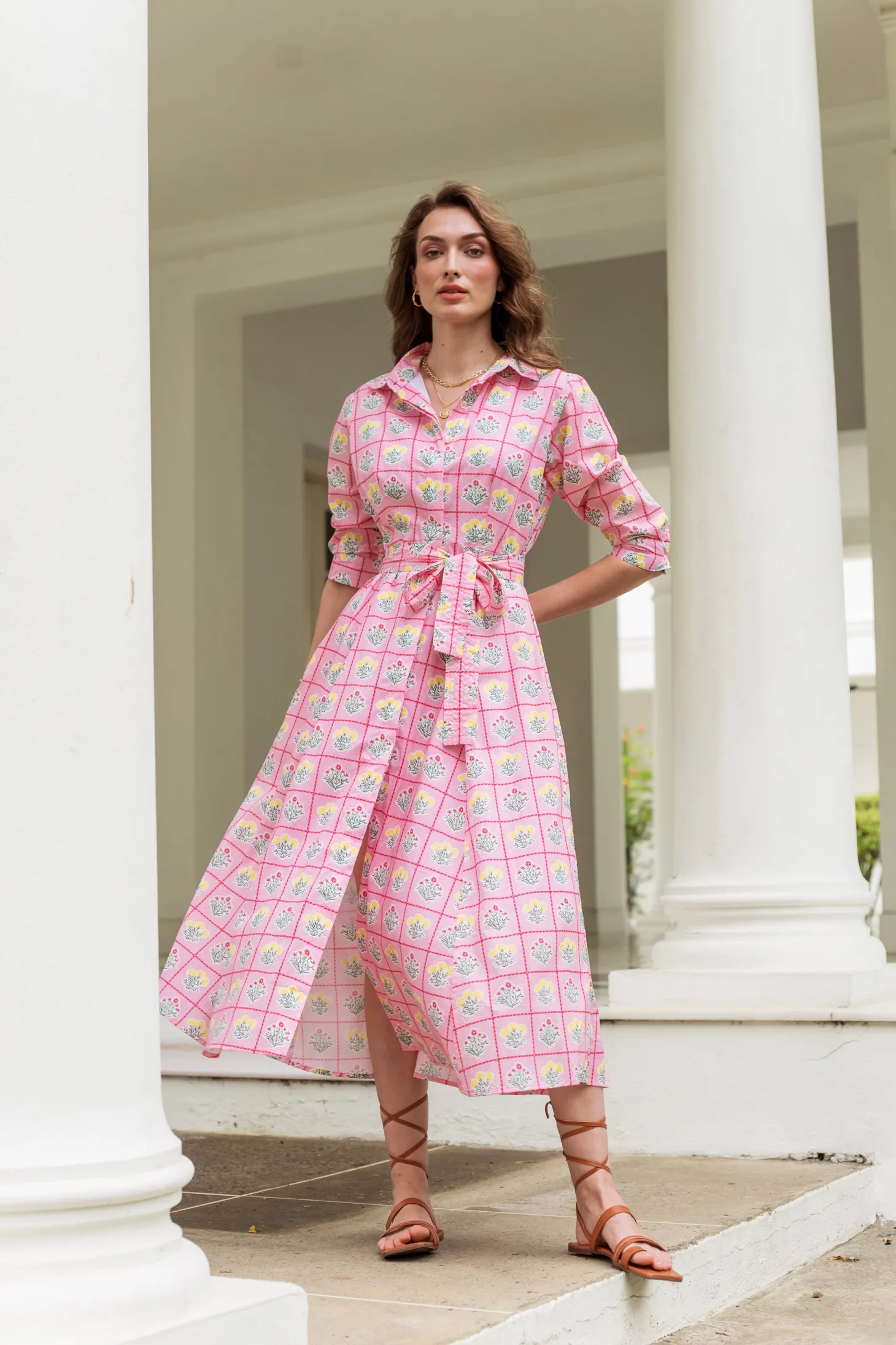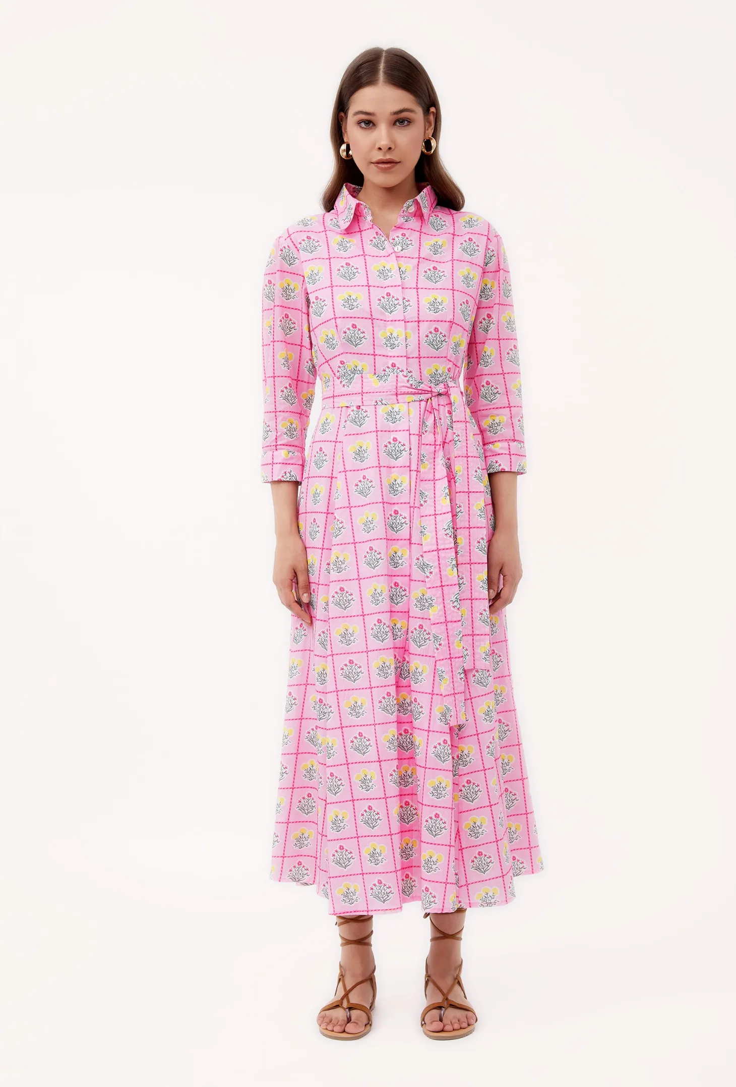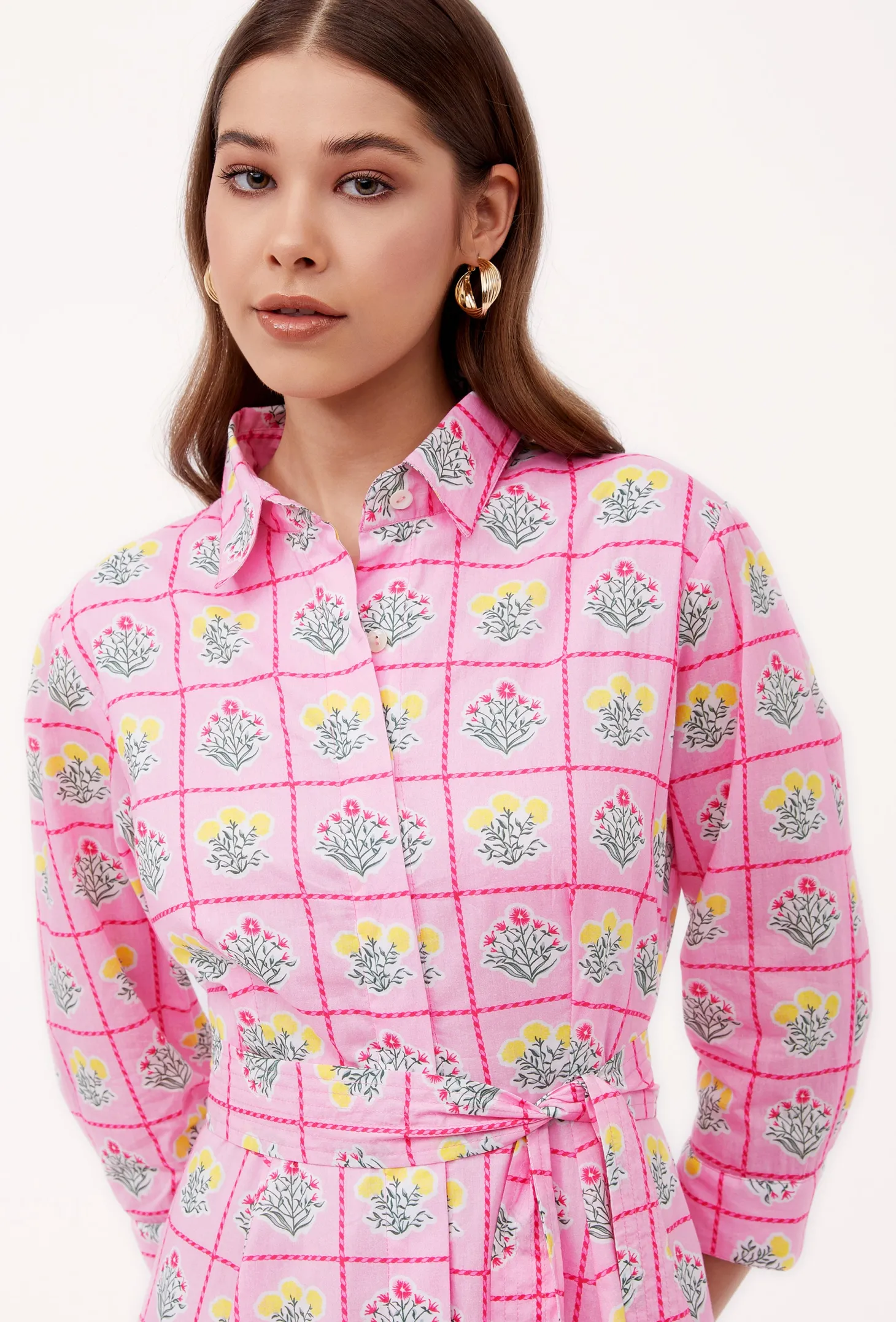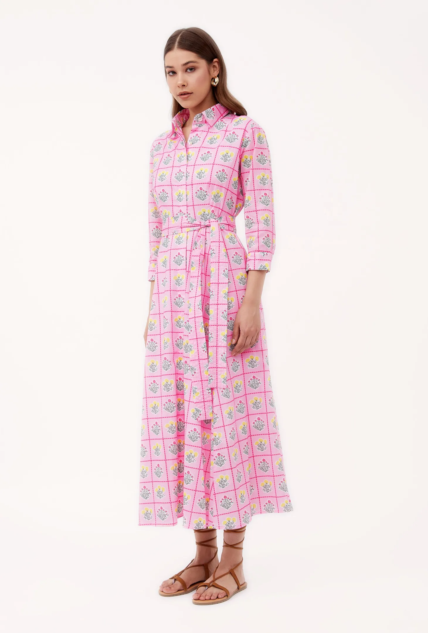 Emily is a classic shirt dress with an elegant ease and a flattering, effortless silhouette. The dress buttons down at the front and features 3/4 sleeves. Emily is made from a soft, breathable cotton cambric fabric that will keep you cool on a hot summer day. Inspired by a sun-drenched beach day, the artwork references the sorbet-colored beach umbrellas dotting Positano’s coastline.