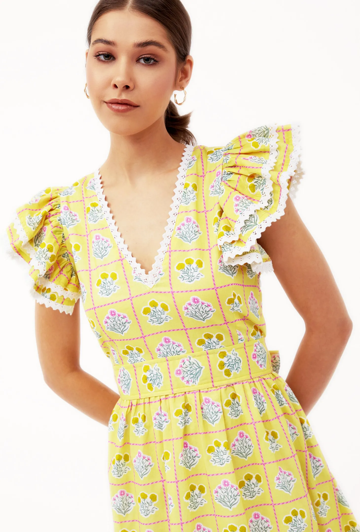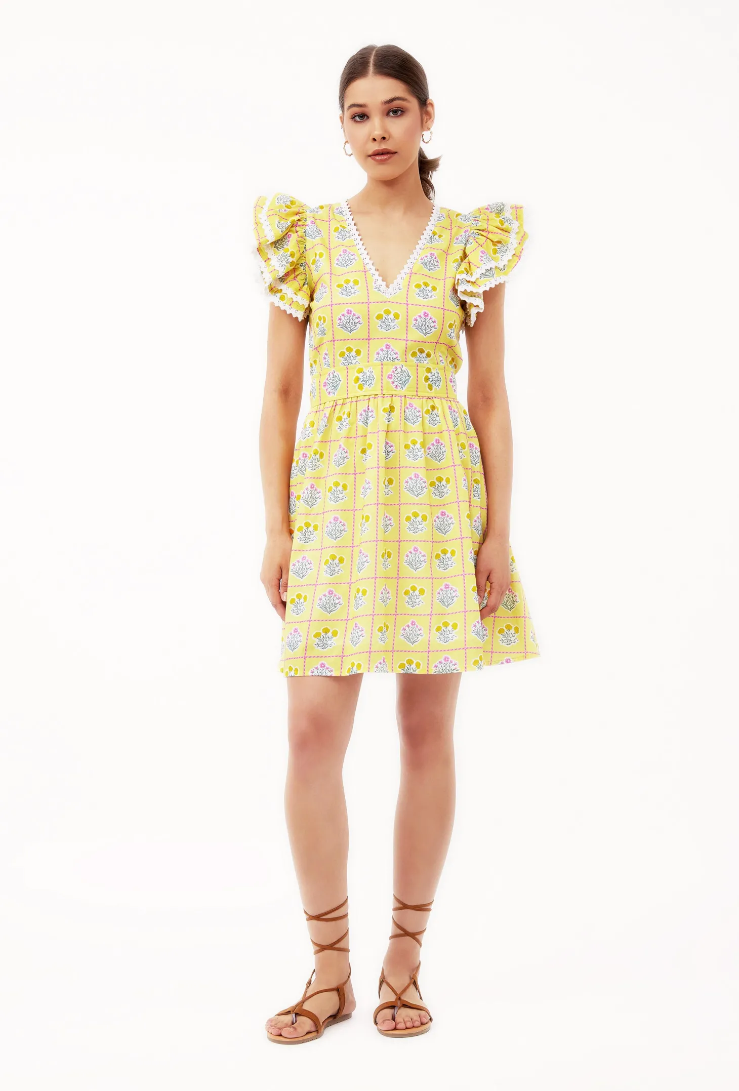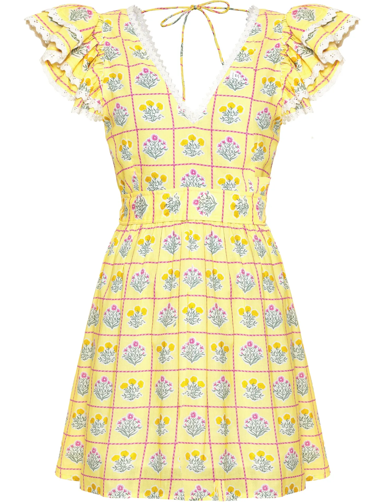 The Chloe is the ultimate jet set piece. With its flirty V-neck, its flutter sleeves and fitted self-tie waist, the Chloe is a great choice for a day outing but easily glams up for an evening event. Chloe is made from a soft, breathable cotton cambric fabric that will keep you cool on a hot summer day. Inspired by a sun-drenched beach day, the artwork references the sorbet-colored beach umbrellas dotting Positano’s coastline.