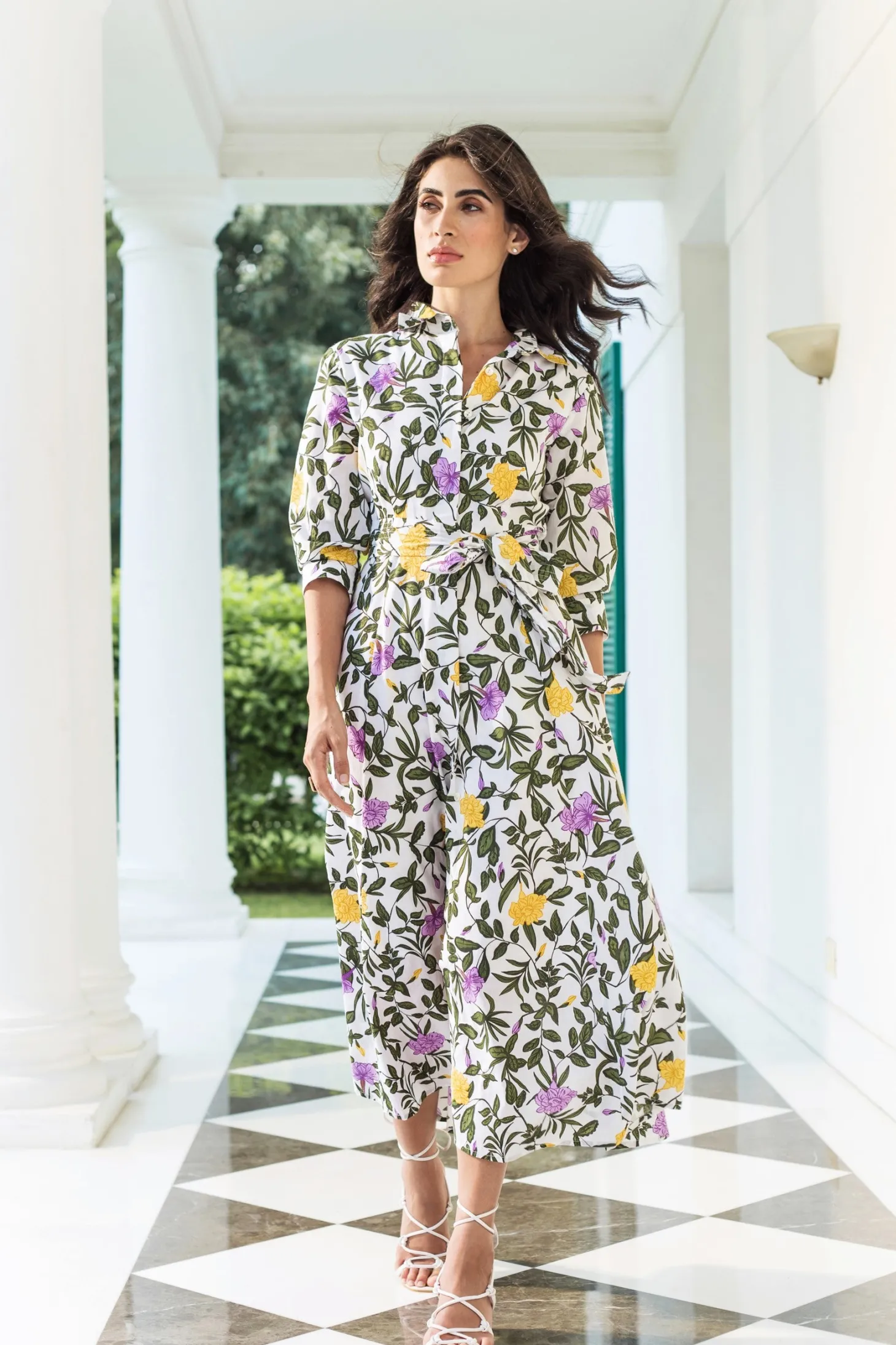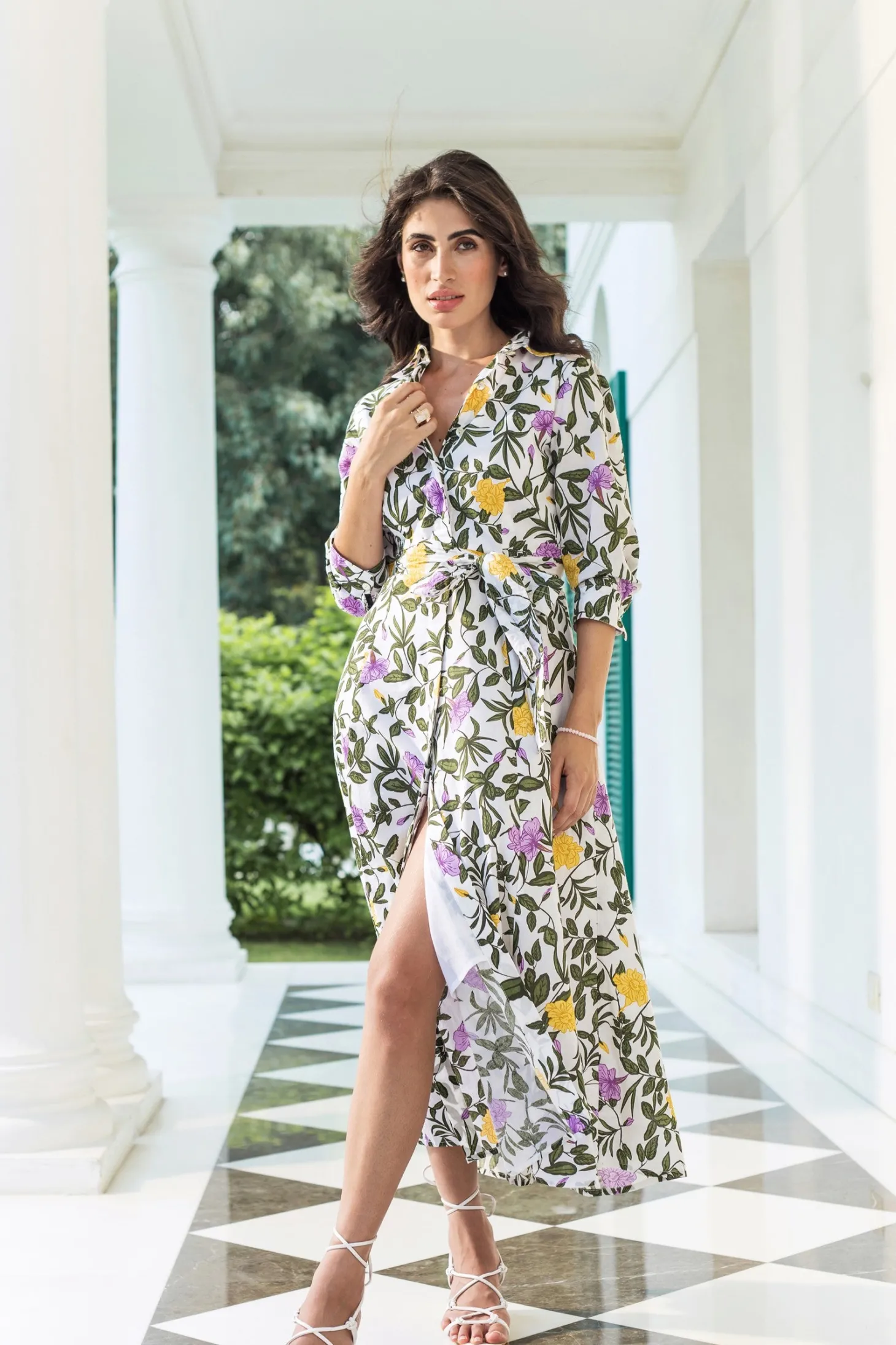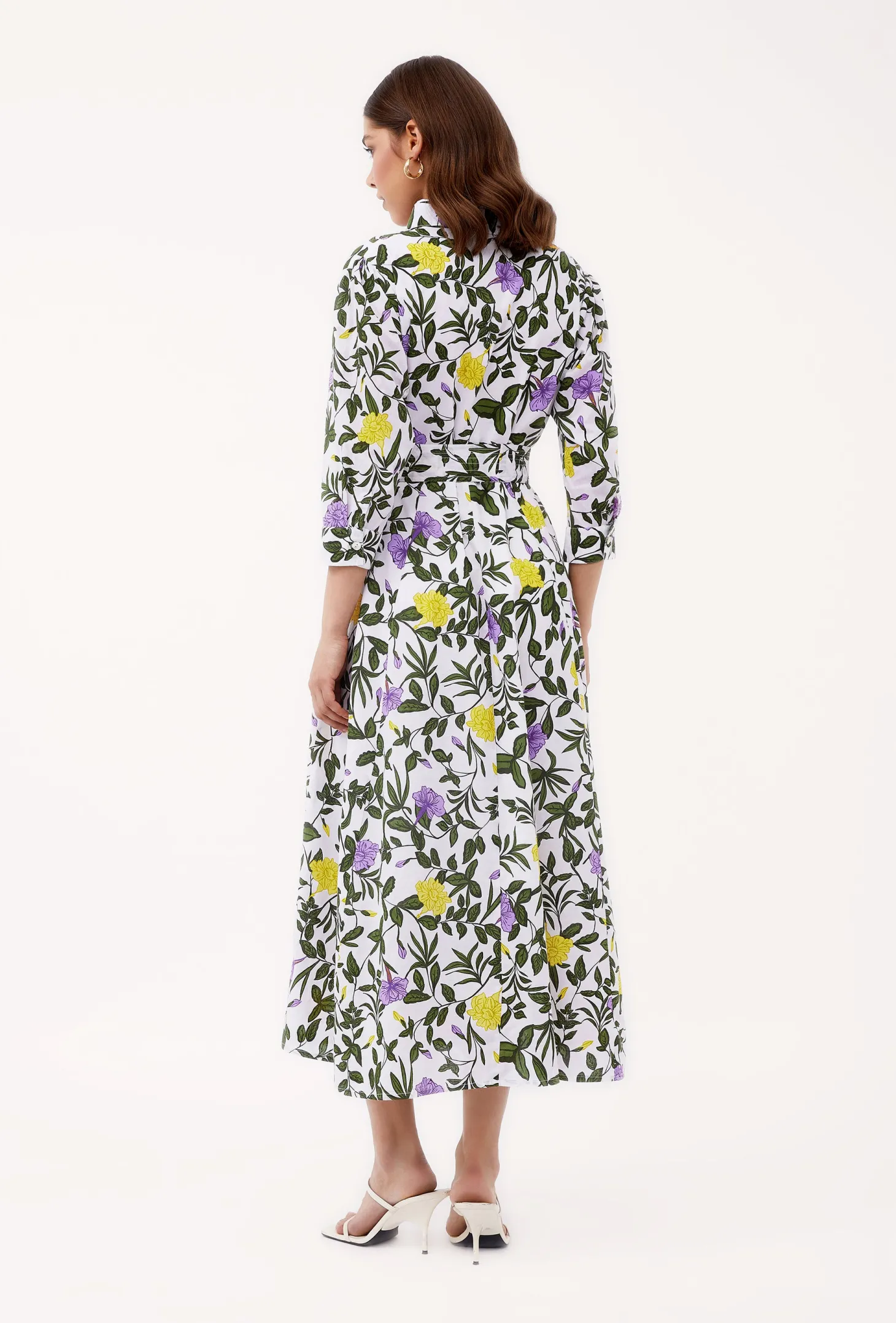 Emily is a classic shirt dress with an elegant ease and a flattering, effortless silhouette. The dress buttons down at the front and features 3/4 sleeves.Emily is made from a soft, breathable cotton cambric fabric that will keep you cool on a hot summer day. The print design echoes the charm of Tuscan gardens in full bloom, showcasing vivid depictions of lilies and lush greens.