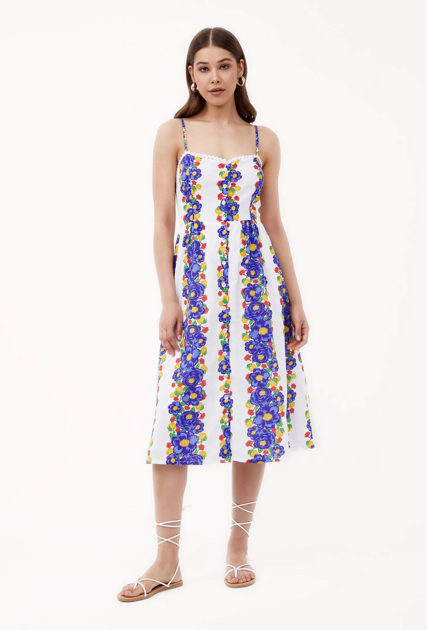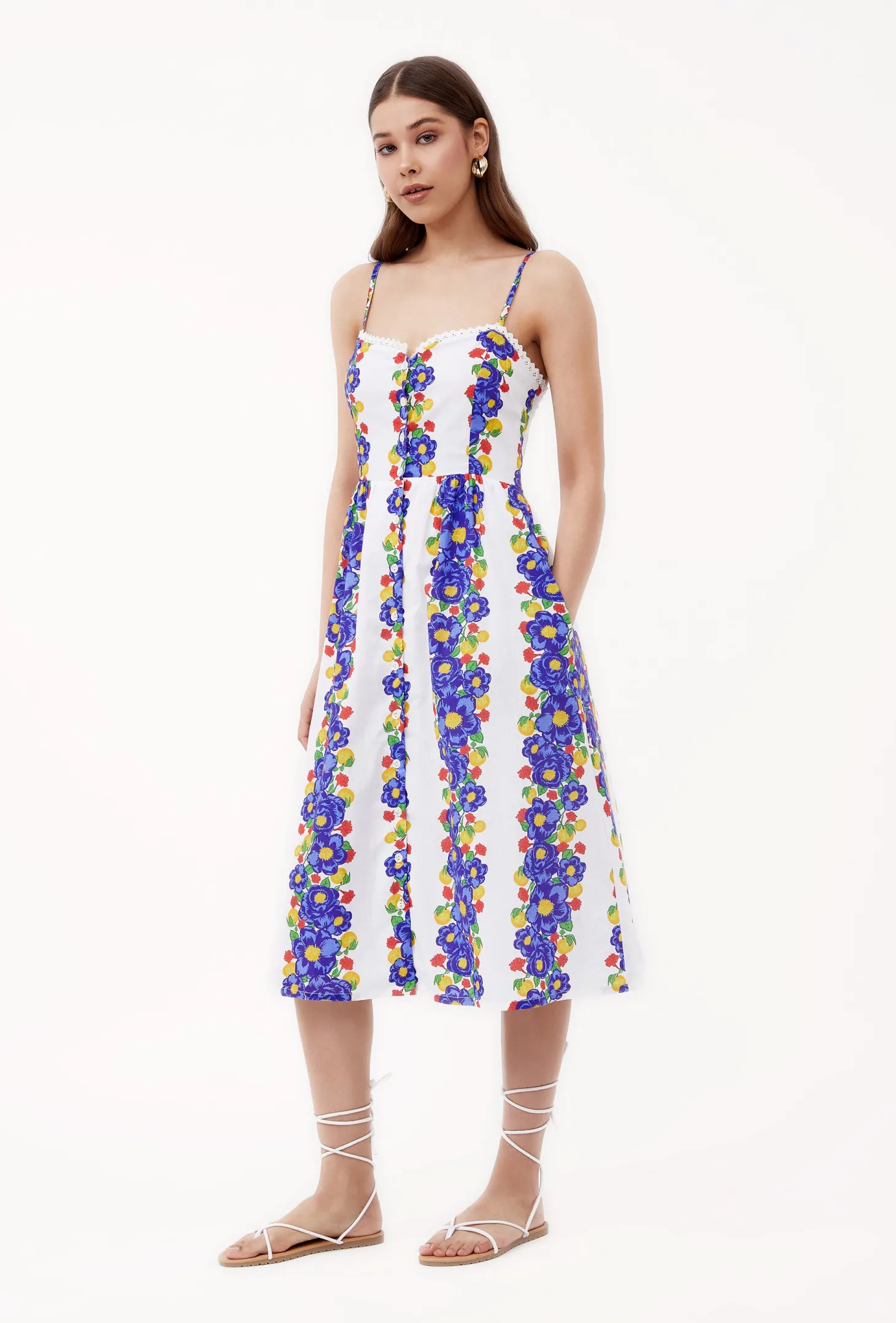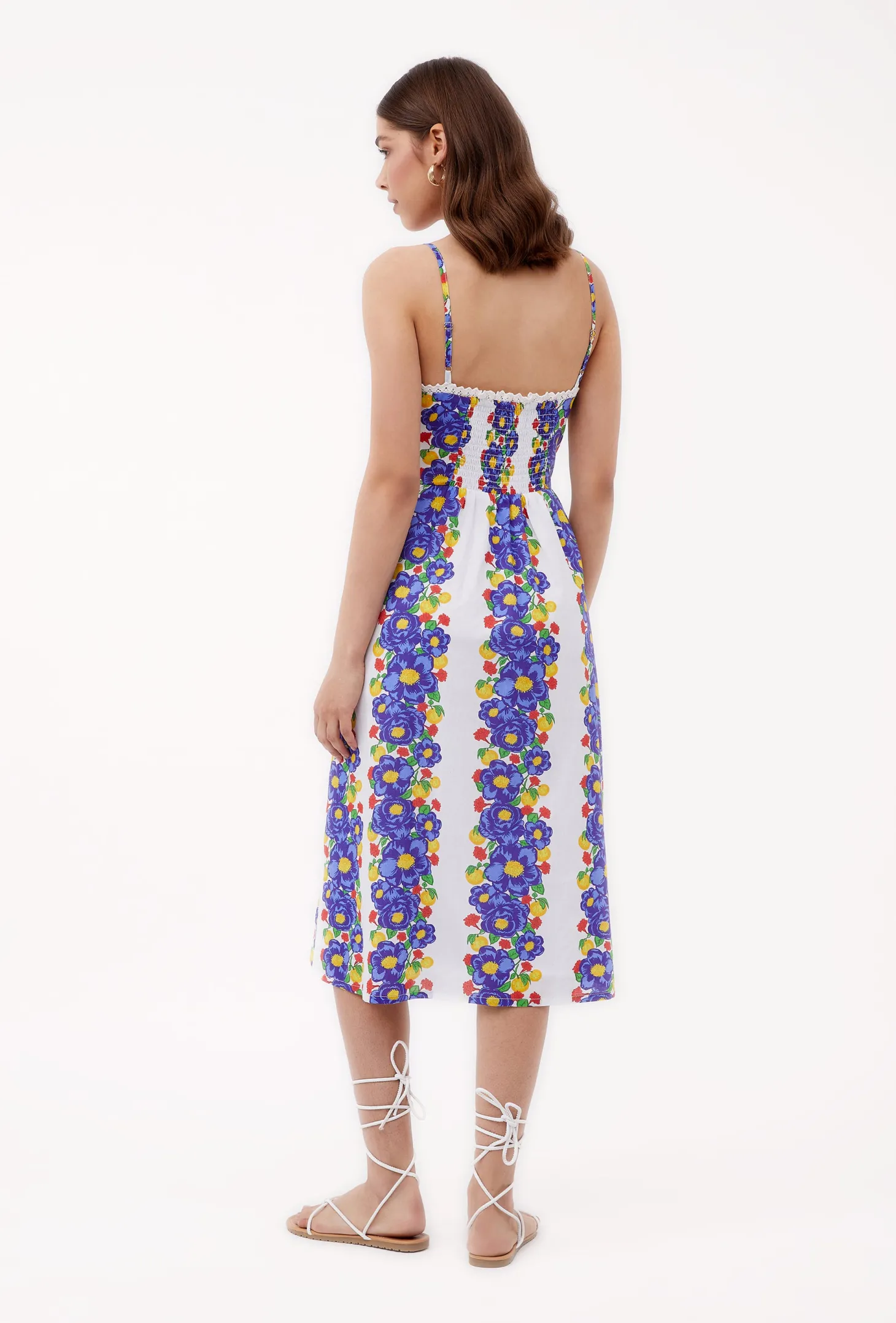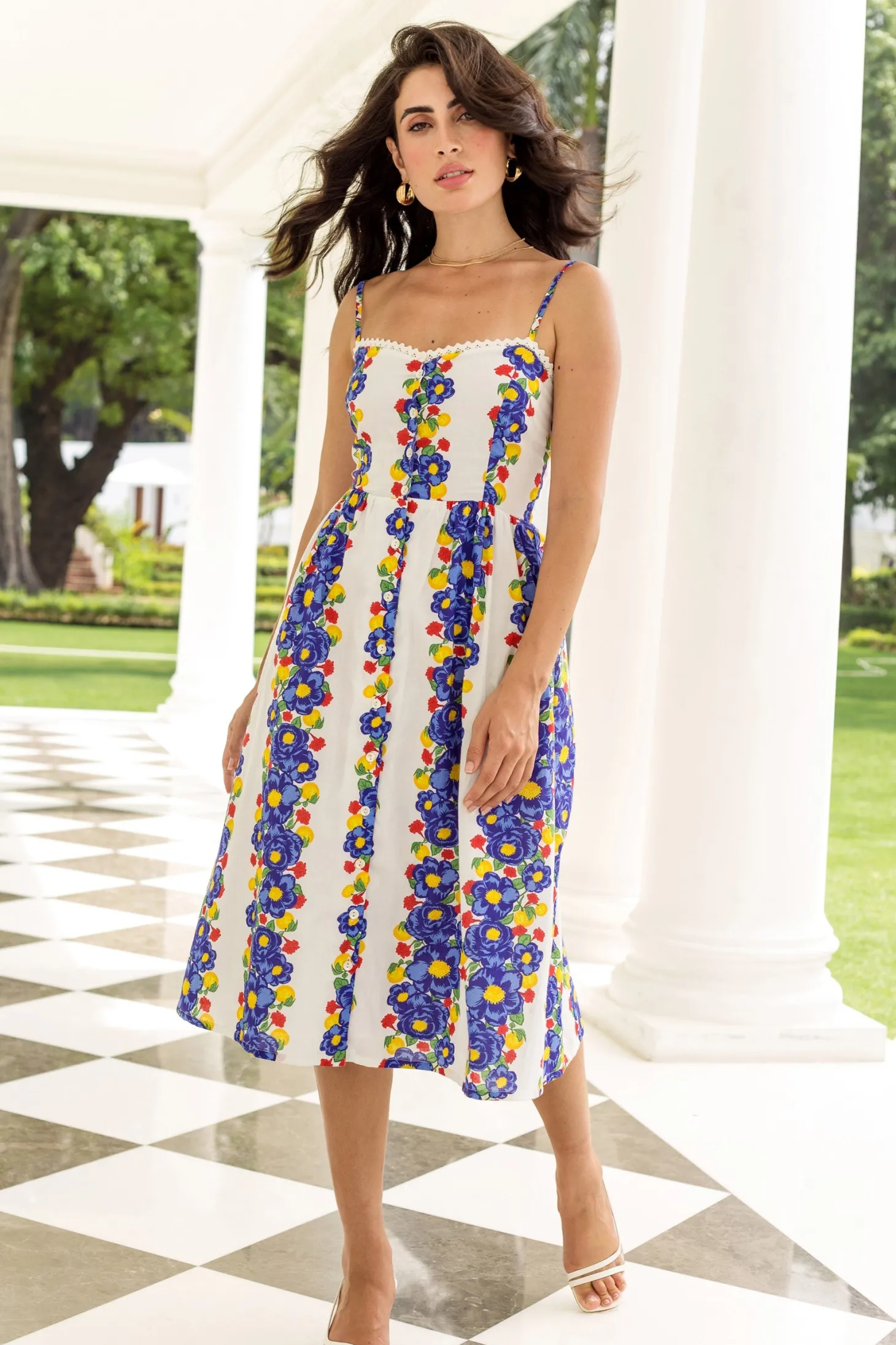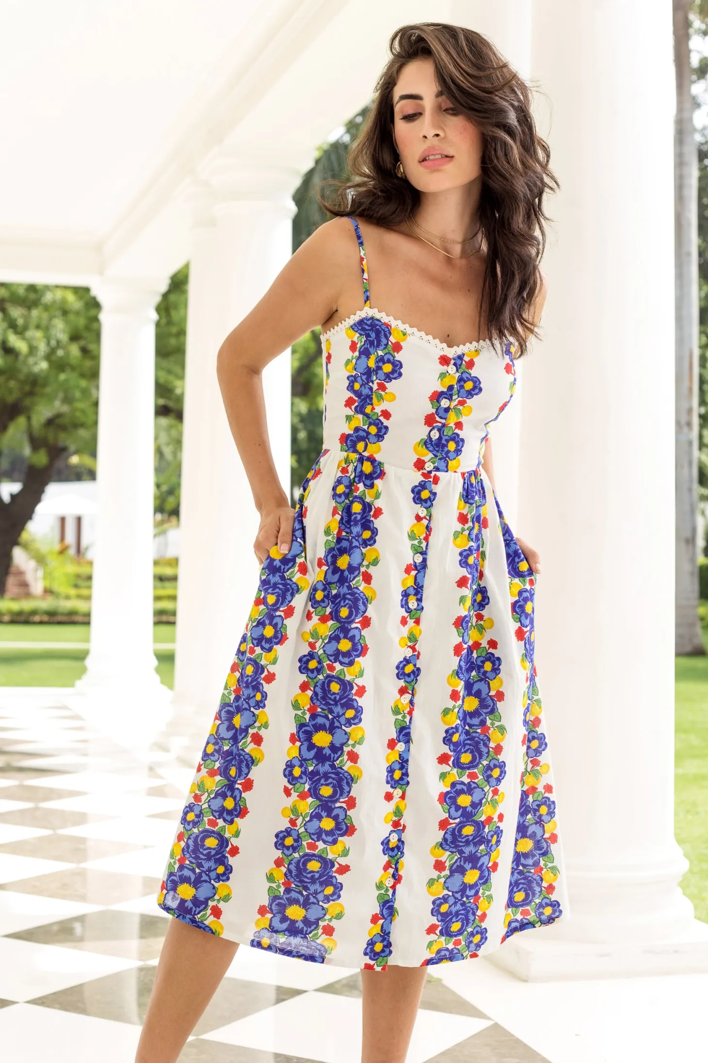 The Louise dress channels relaxed old world charm featuring a sweetheart neckline, button-down front, and an A-line silhouette that effortlessly flatters your figure. With adjustable shoulder straps, hidden pockets and a smocked back, this dress ensures a perfect fit every time. Louise made from a soft, breathable cotton cambric fabric that will keep you cool on a hot summer day. The print artwork embodies opulent garden parties held in the grand villas of Lake Como. The bold print embodies a celebration of indulgence.
