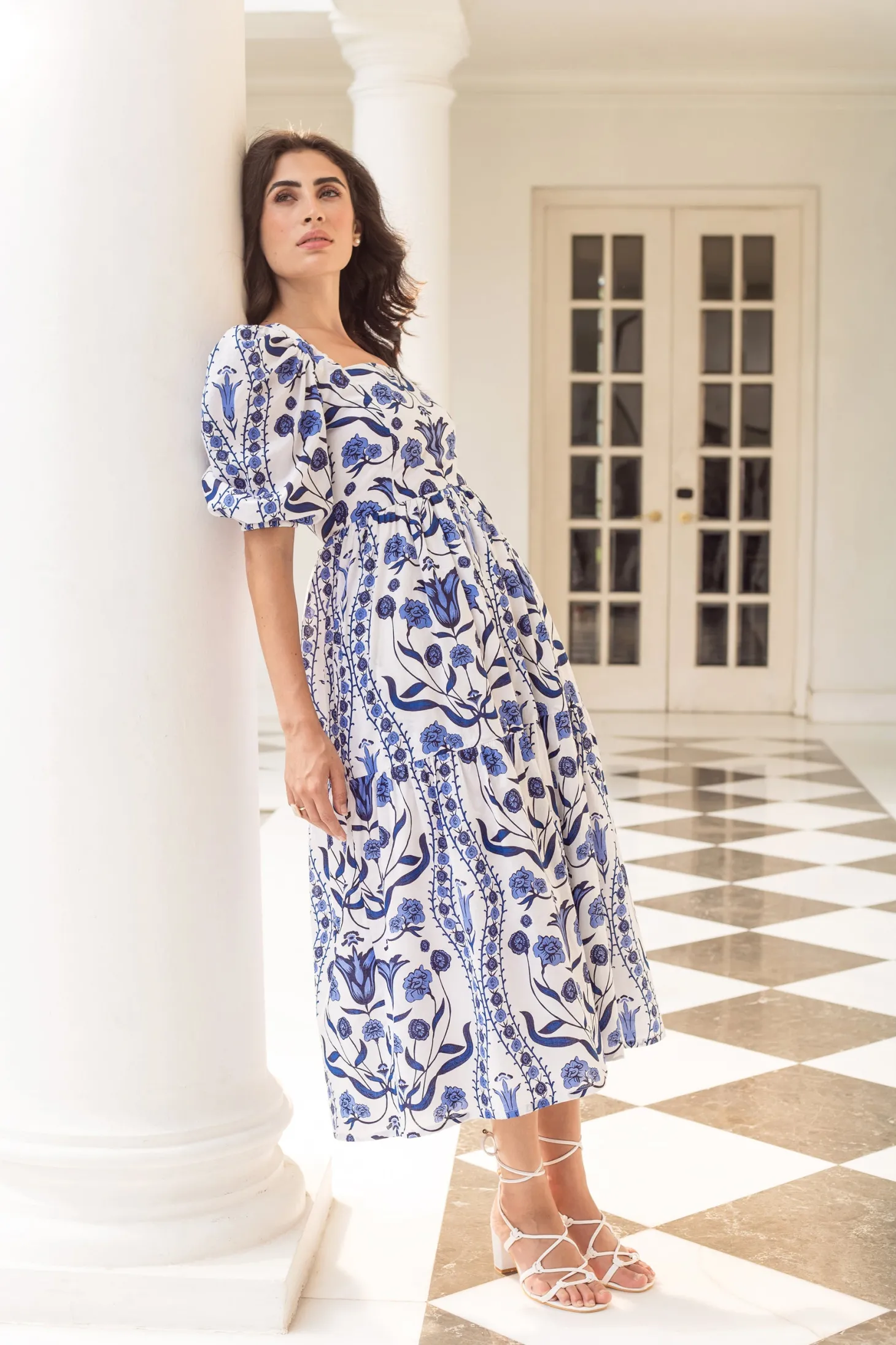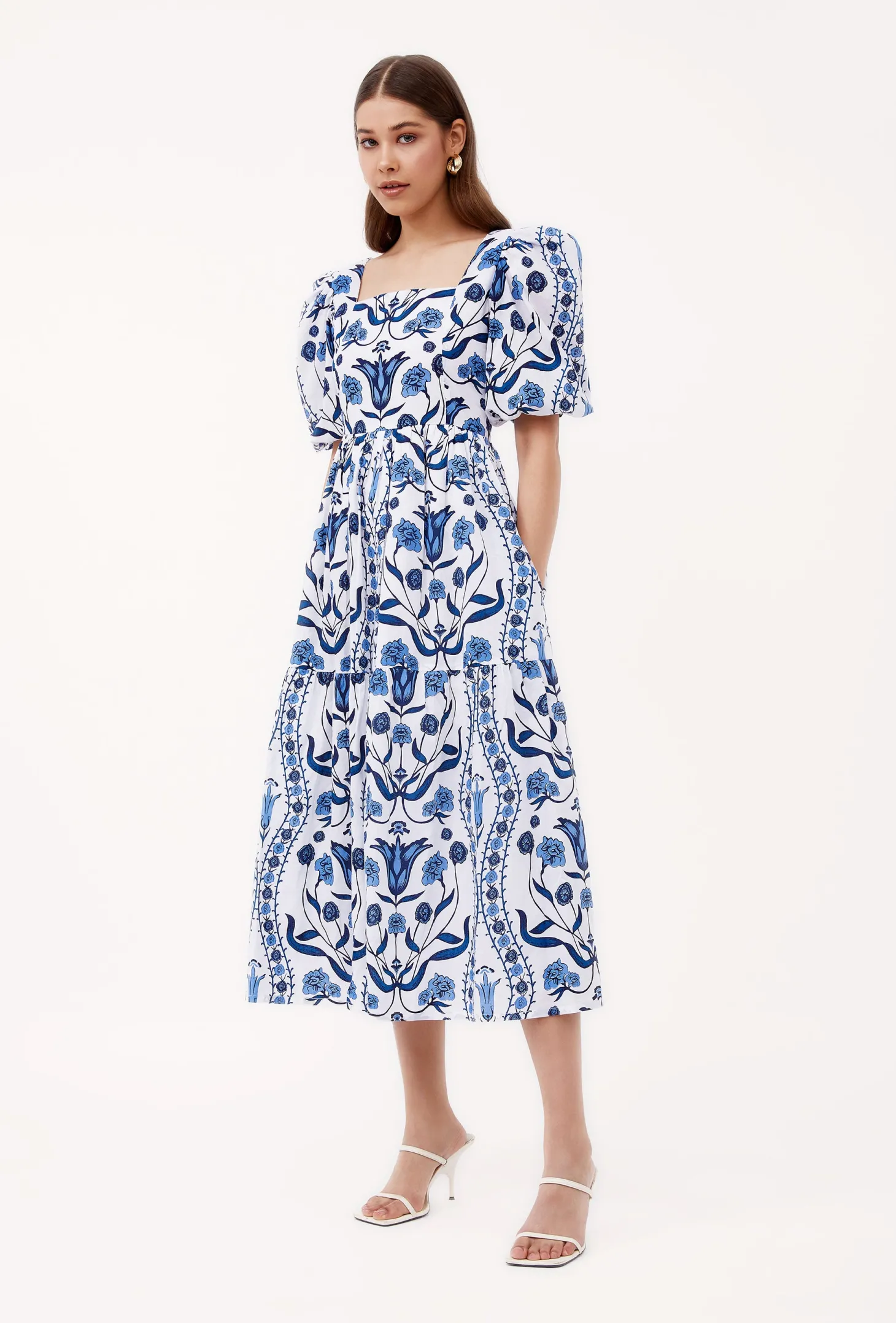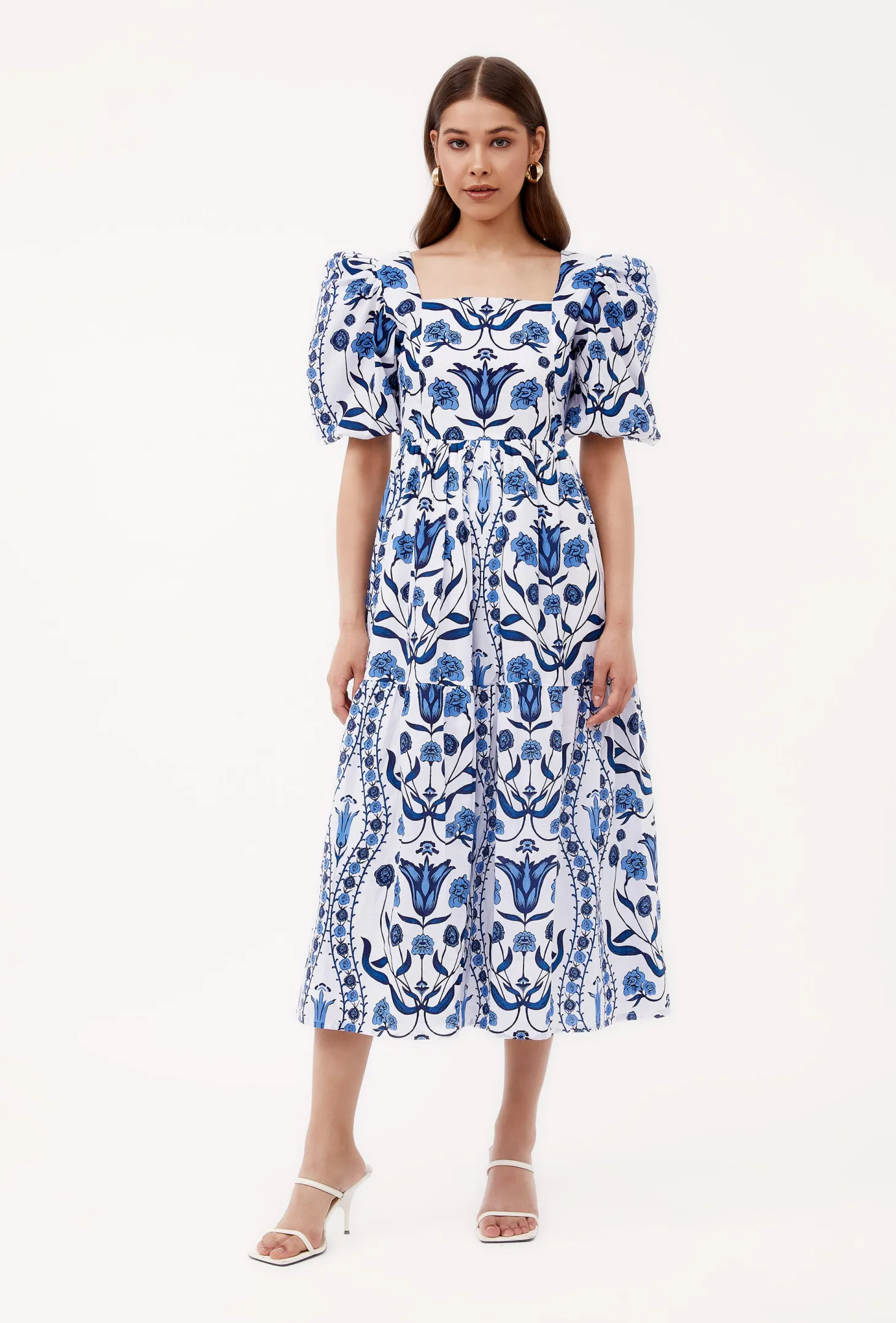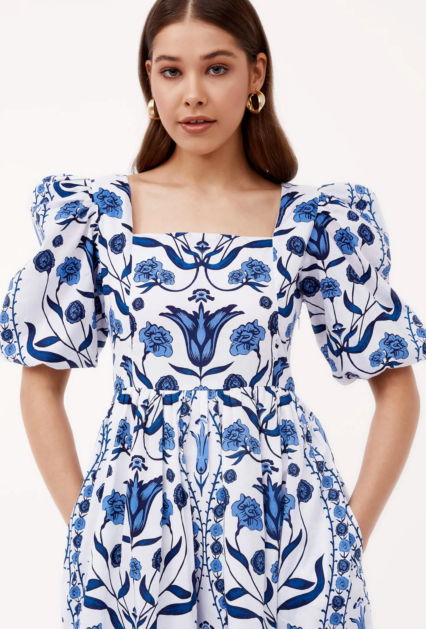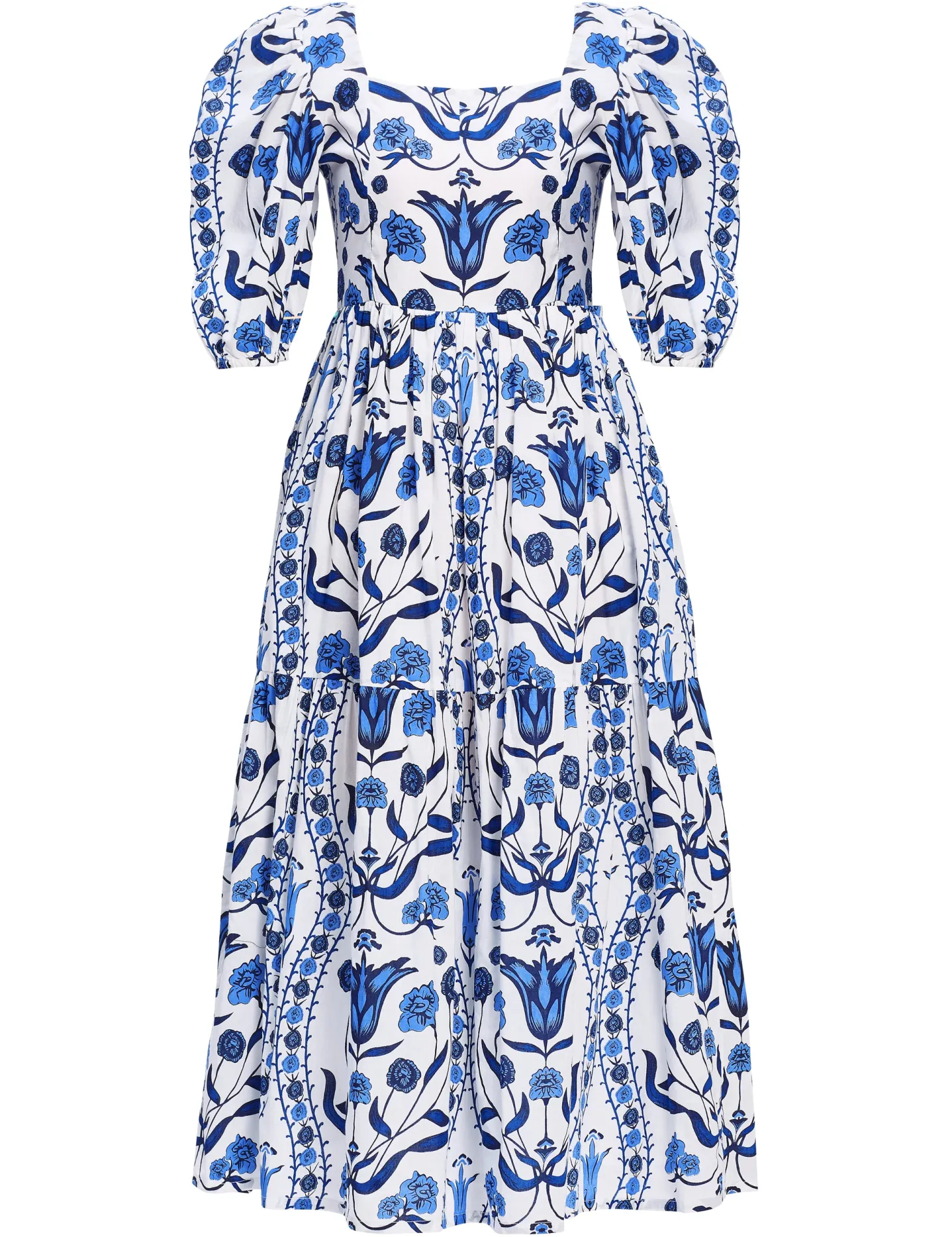 The romantic Estella dress is timeless yet flirty, with a flattering fit and a silhouette that is both elegant and functional. Estella features subtle puff sleeves, smocked details at the back and a chic square neckline. Estella is made from a soft, breathable cotton cambric fabric that will keep you cool on a hot summer day. This floral print embodies an Italian countryside summer, running through flower-filled fields, exuding freedom and joy.
