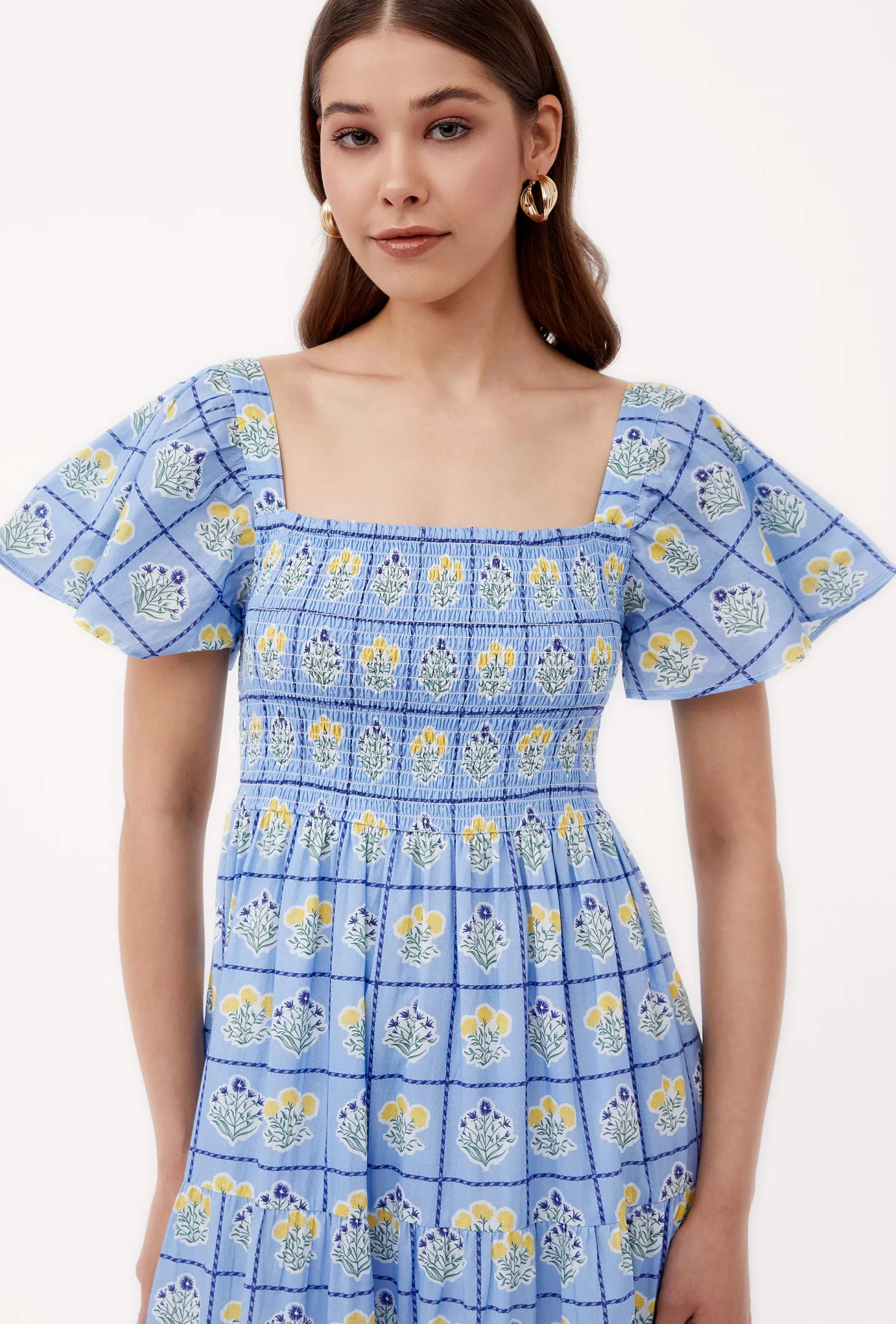 With its smocked top, tiered A-line skirt and flattering sleeves, the Rosie strikes the right balance between sophistication and ease. Rosie is made from a soft, breathable cotton cambric fabric that will keep you cool on a hot summer day. Inspired by a sun-drenched beach day, the artwork references the sorbet-colored beach umbrellas dotting Positano’s coastline.