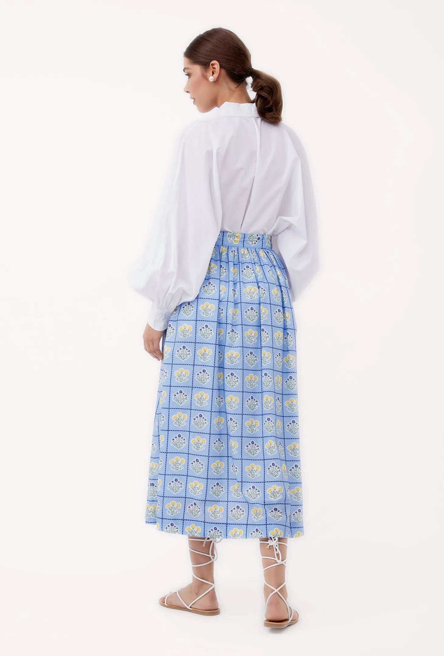 The Anna skirt is a perfect companion for leisurely strolls through the charming streets of Florence. The midi skirt features a flattering A-line silhouette, hidden pockets, and an adjustable waist. Pair it with flats and a white tee for a casual daytime look, or dress it up with heels for a sophisticated evening ensemble. Anna is made from a soft, breathable cotton cambric fabric that will keep you cool on a hot summer day. Inspired by a sun-drenched beach day, the artwork references the sorbet-colored beach umbrellas dotting Positano’s coastline.