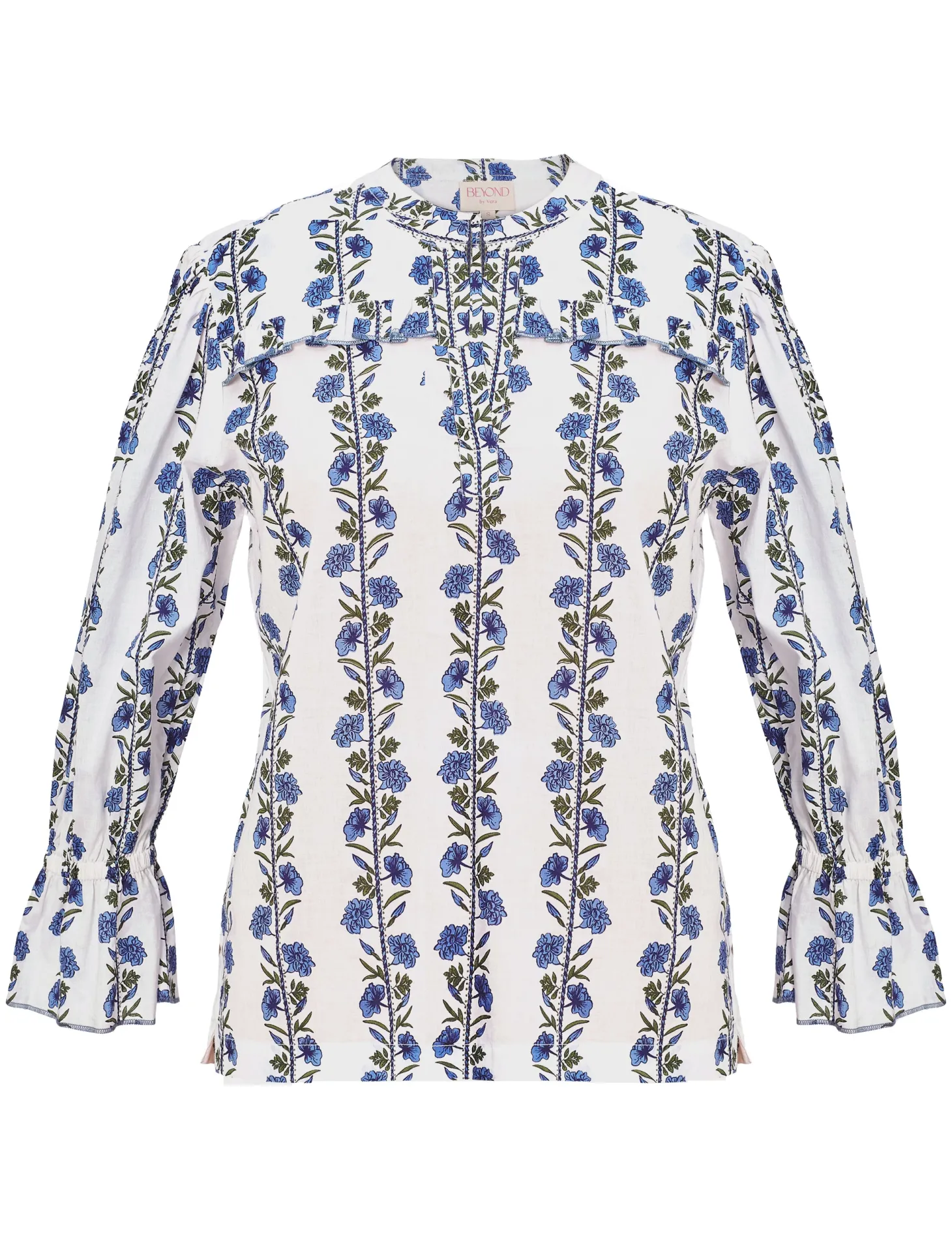 With its slightly puffed 3/4 sleeves, relaxed cut and delicate ruffle details, the Stella is a winner all year round. Pair it with our Gia Midi skirt or with Denim for a casual look. Stella is made from soft, breathable cotton. The print design captures the nostalgic ambiance of Italian country houses with its inspiration drawn from rustic drapes and table linens.