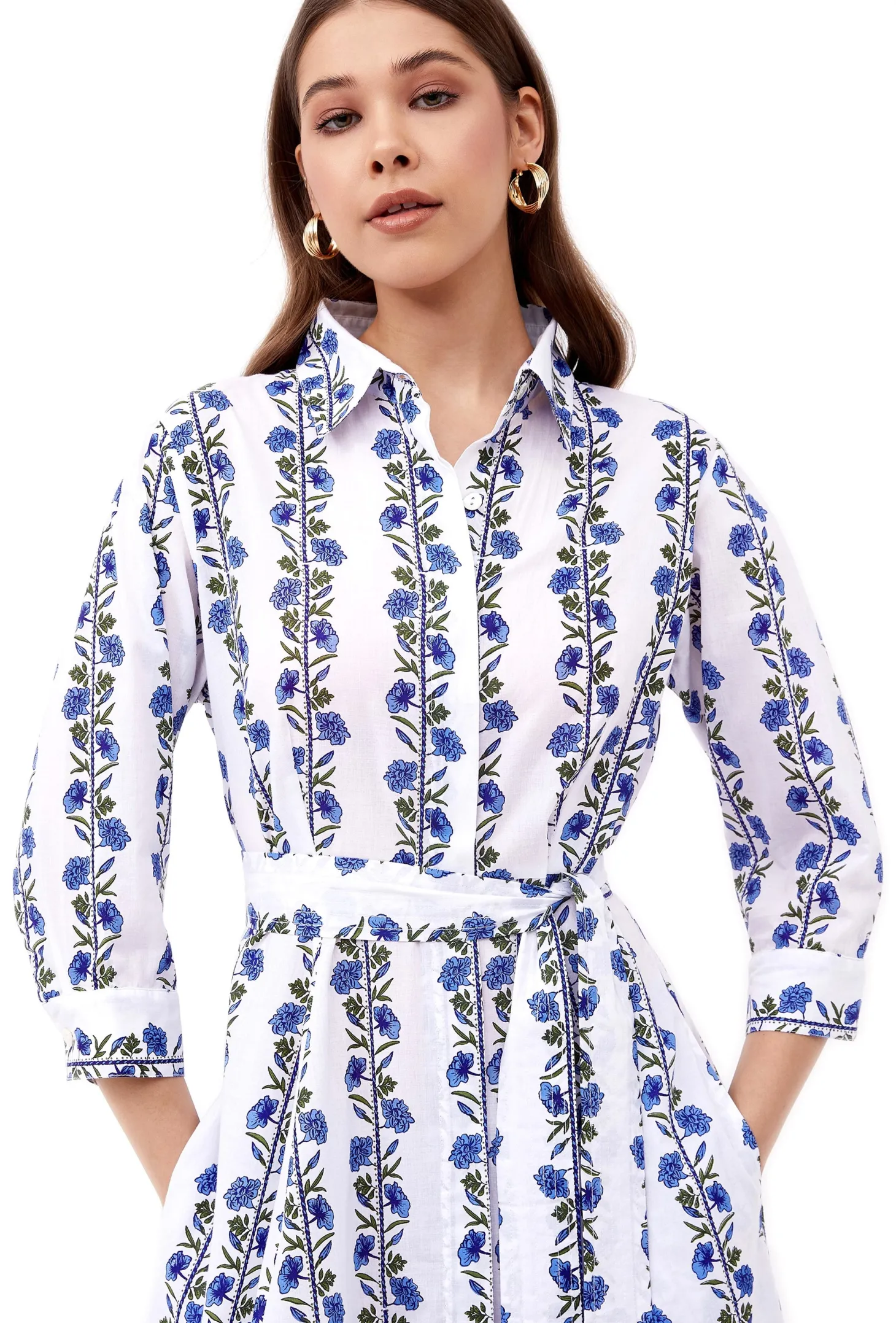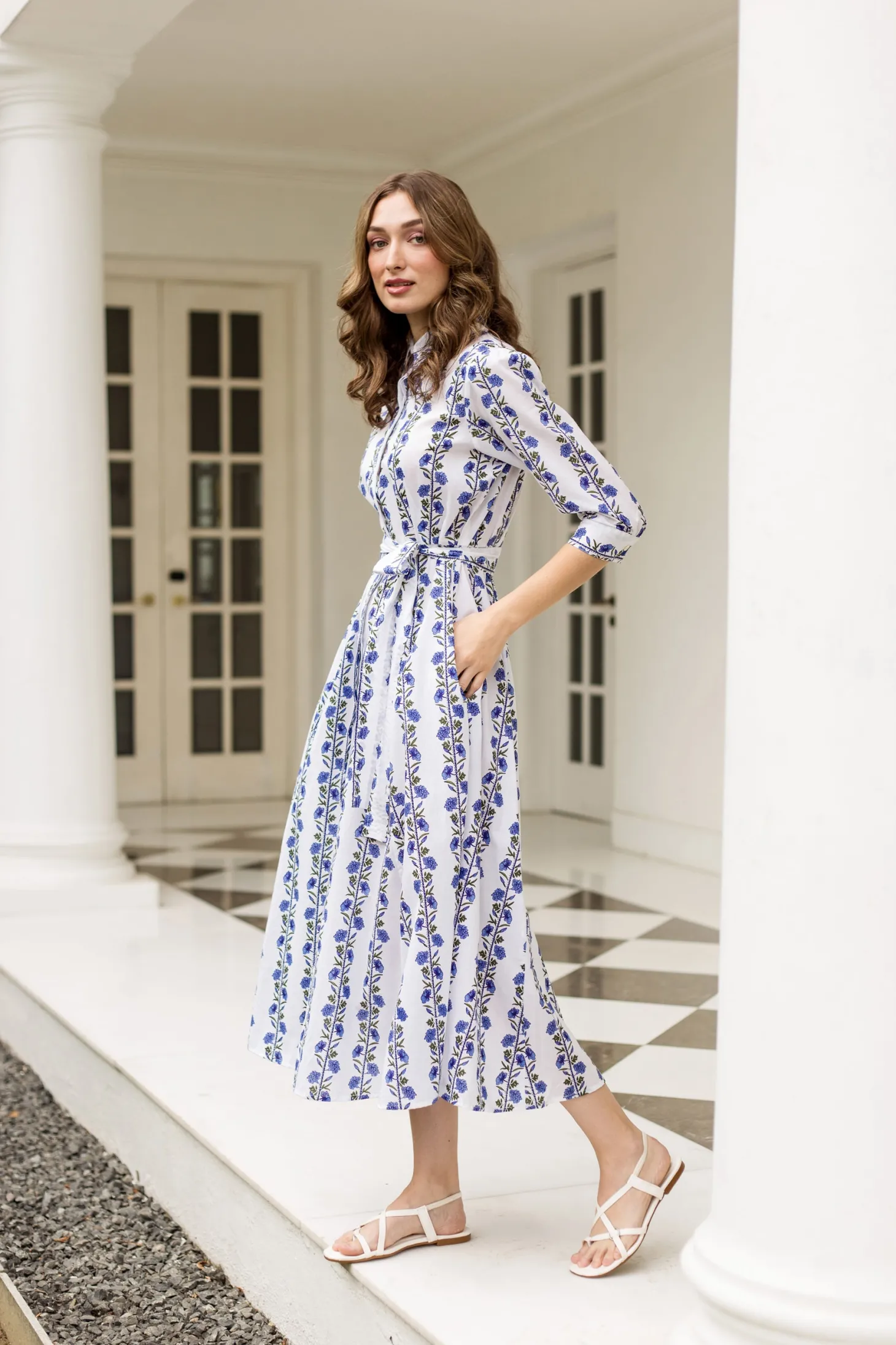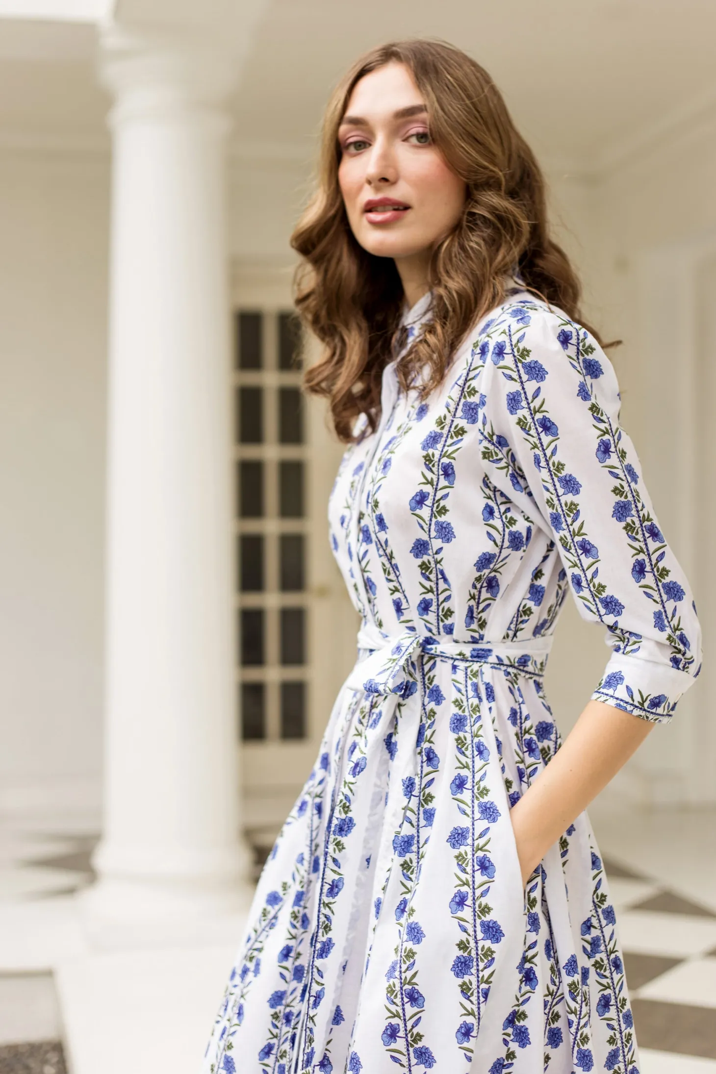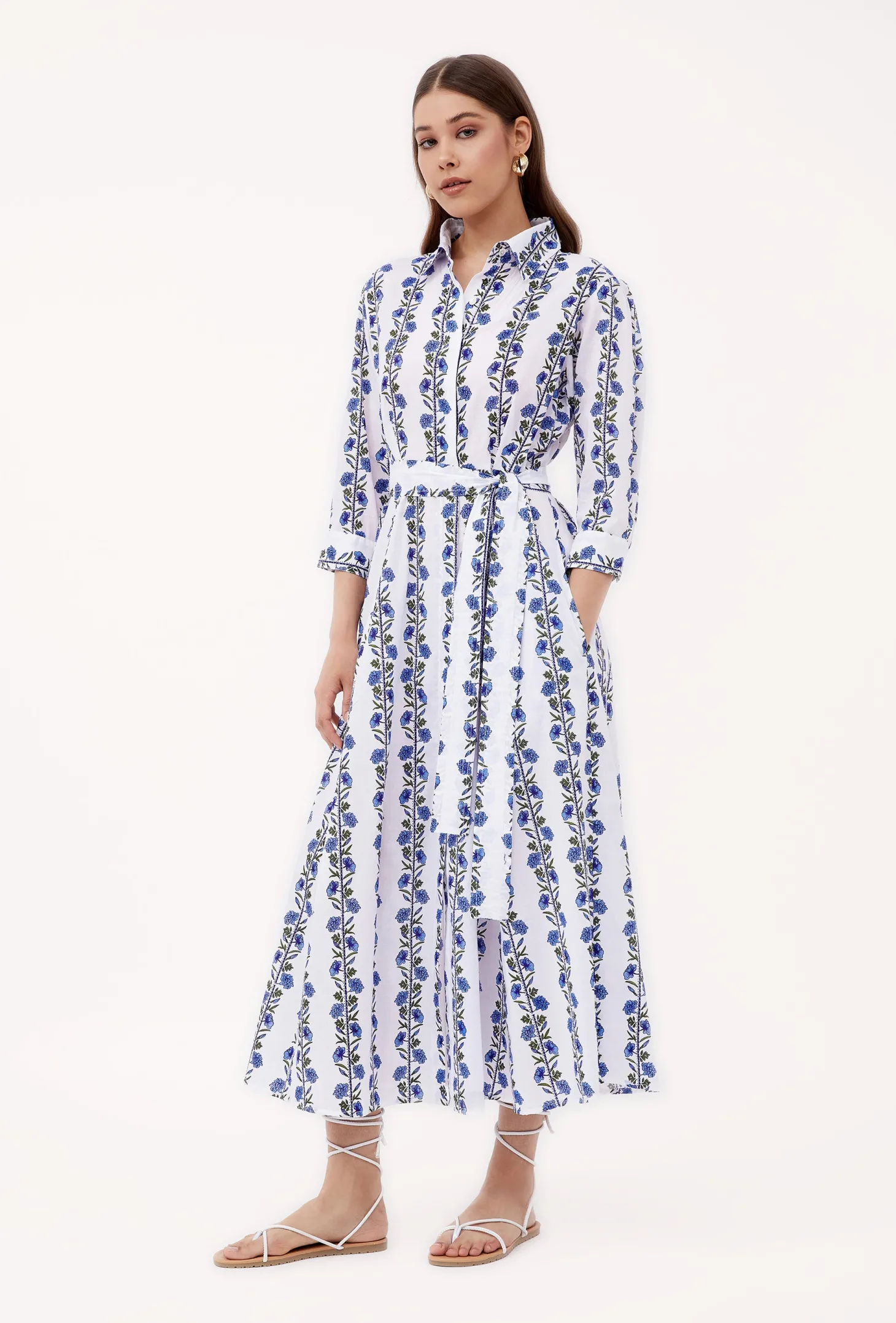 Emily is a classic shirt dress with an elegant ease and a flattering, effortless silhouette. The dress buttons down at the front and features 3/4 sleeves. Emily is made from a soft, breathable cotton cambric fabric that will keep you cool on a hot summer day. The print design captures the nostalgic ambiance of Italian country houses with its inspiration drawn from rustic drapes and table linens.