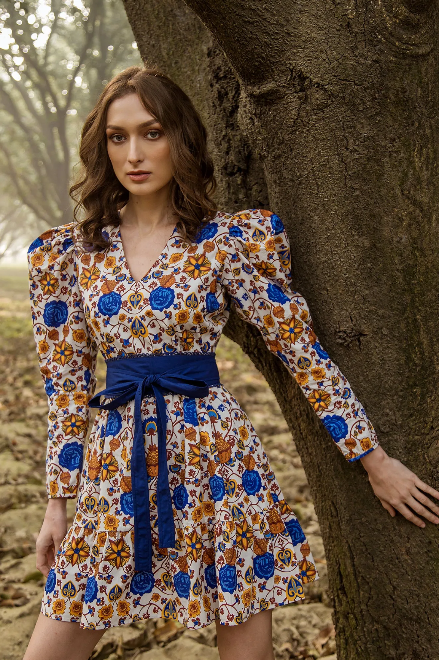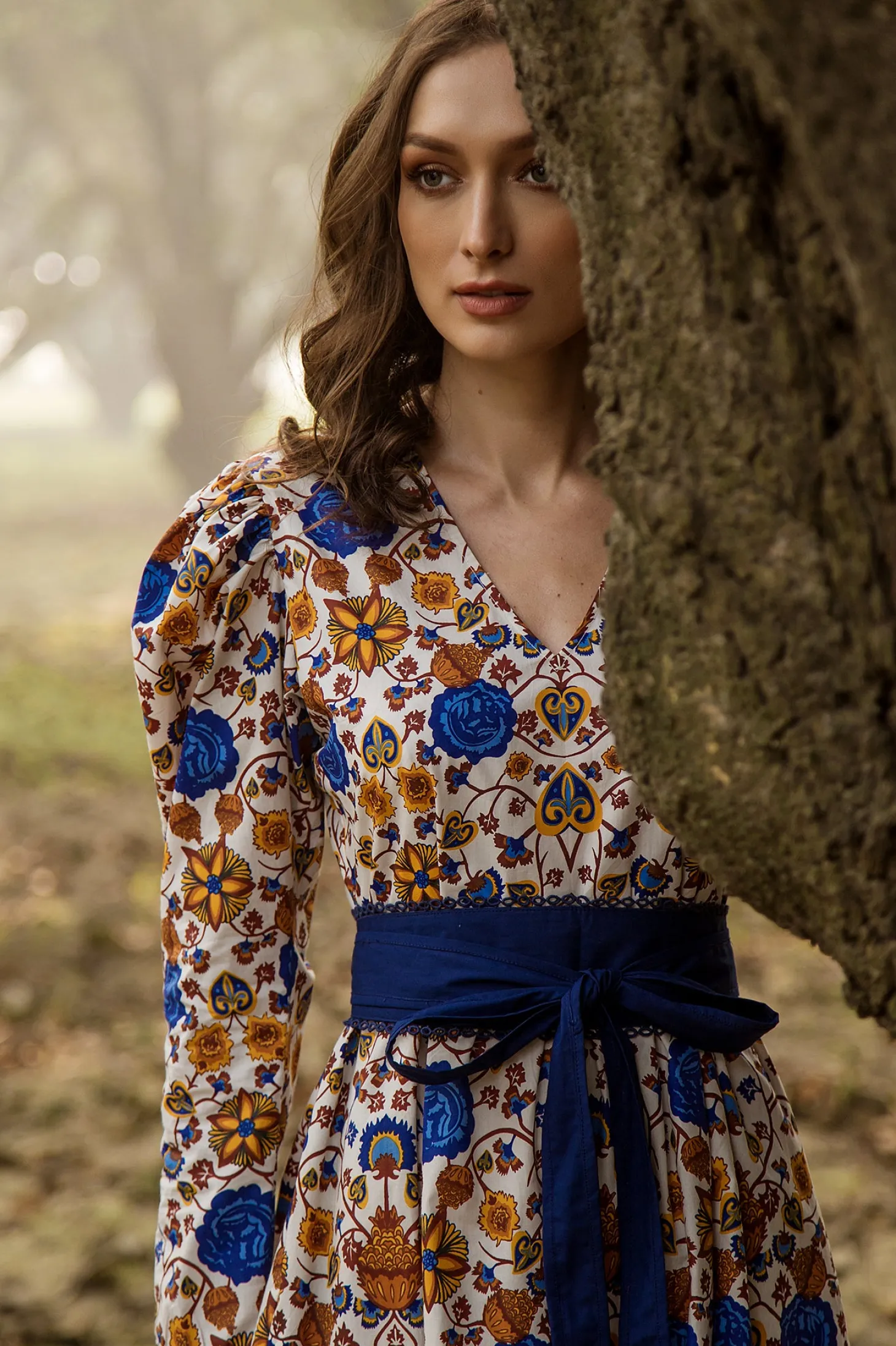 Love at first sight. The Heidi is a romantic day to night staple that can transition easily by swapping flats and sneakers for heels. The subtle shoulder pads, puff sleeves, fitted bodice and flared A-line create a very feminine silhouette. Accentuate the waist with our featured obi belt. Heidi is made from soft, breathable cotton. The floral print pays homage to the beauty of traditional embroidery artworks found in century old Austrian “Tracht” costumes.