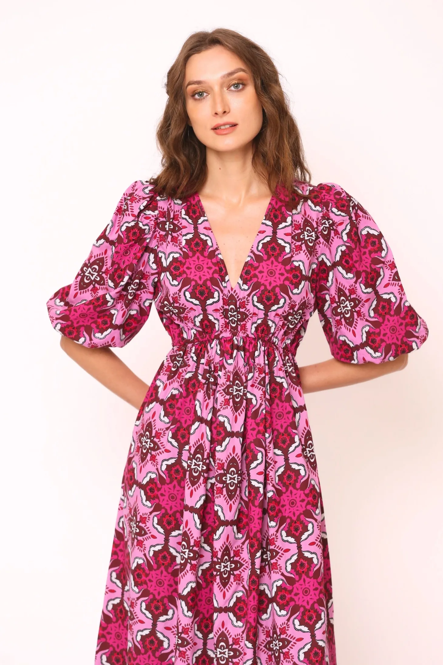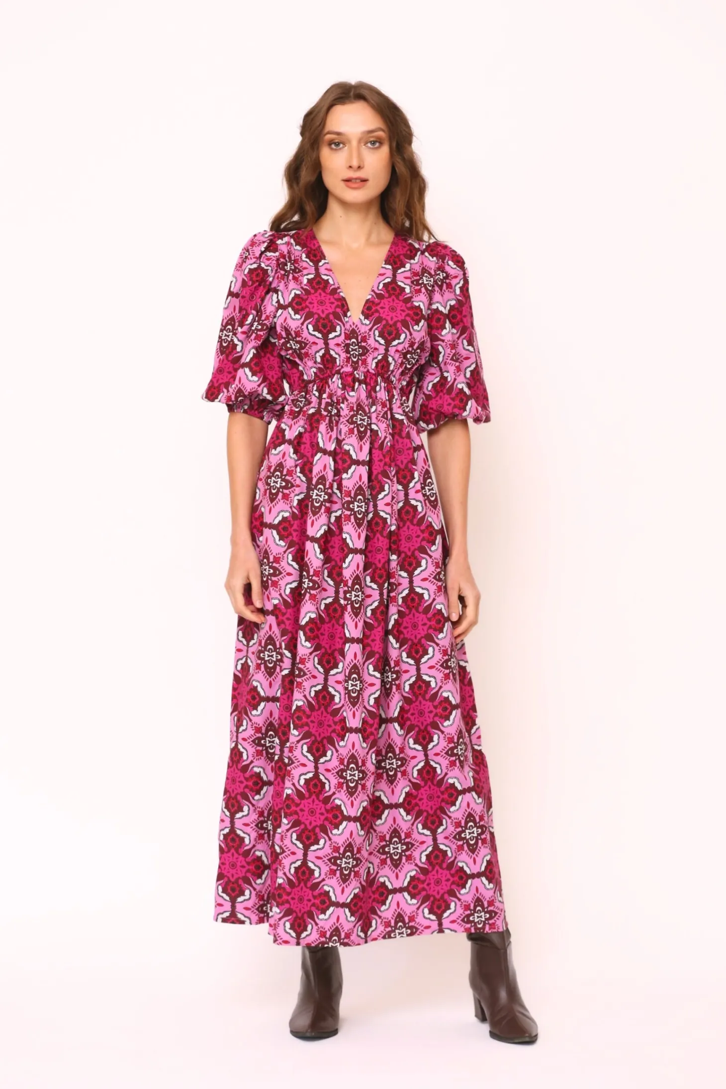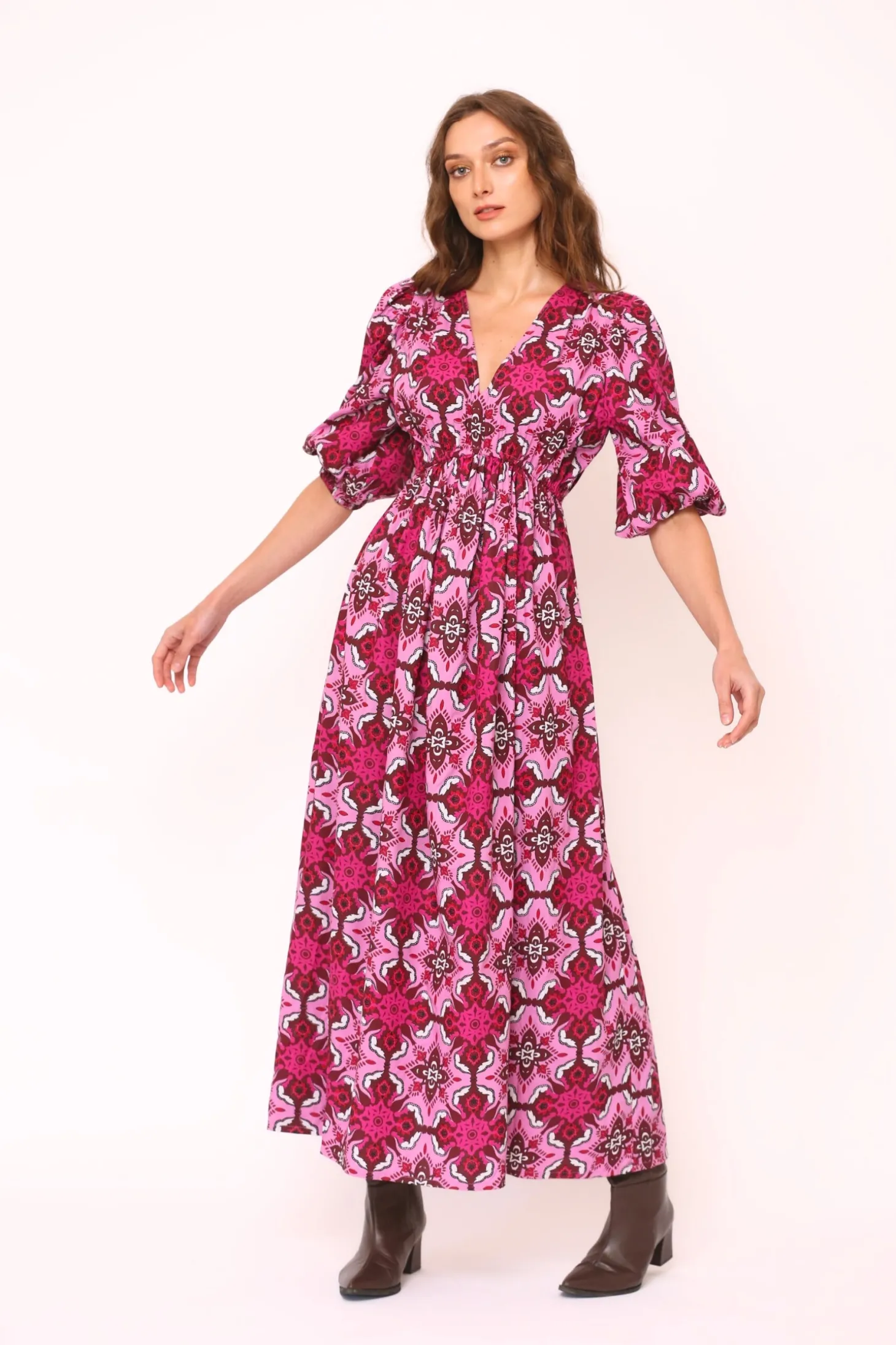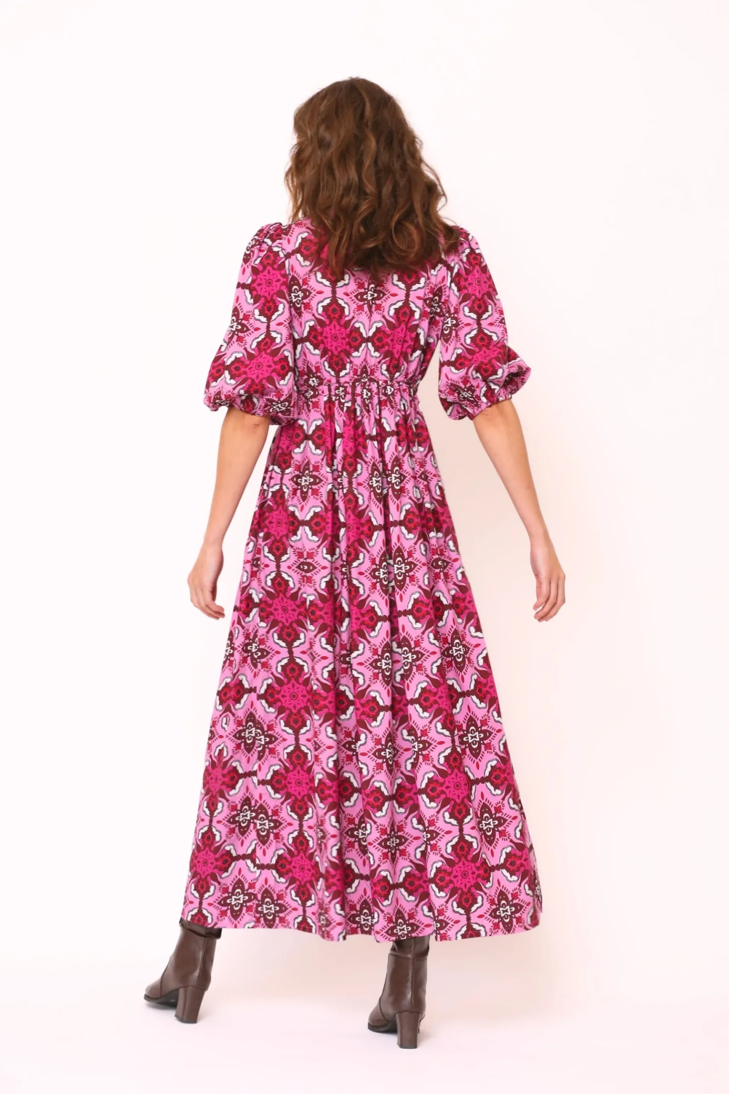 With its elbow-length puffed sleeves, V-neck, elastic waistband and flattering A-line, the Emilia Dress is a fall favorite. Layer with a cardigan and boots as the temperature drops, this midi length dress says fall sophistication. Emilia is made from plant-based Viscose that drapesbeautifully. The print is inspired by the beauty of wildflowers growing on alpine meadows.