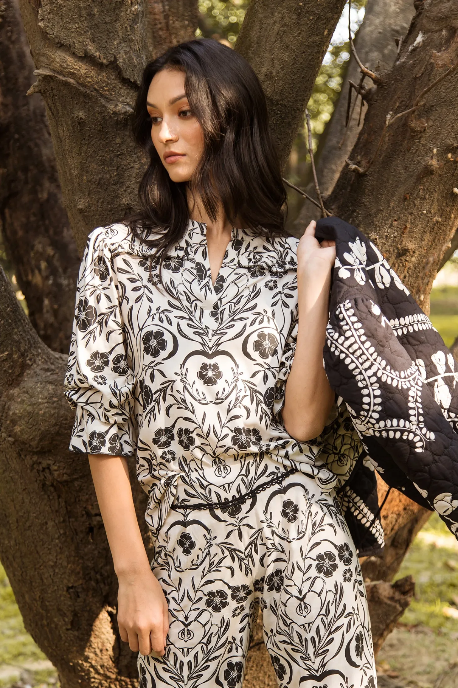 Our Teresa pants are so elegant, yet so effortless. The flattering palazzo silhouette make the pants a fall favorite. The smocking in the back of the waist and self-tie belt guarantee the perfect fit. Teresa pants are made from plant-based Viscose that drapesbeautifully. The print references the natural beauty of apple orchards in the apple-growing region of Austria’s highlands.