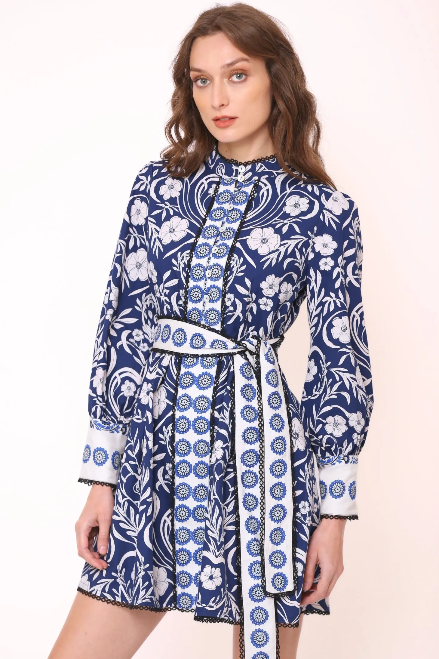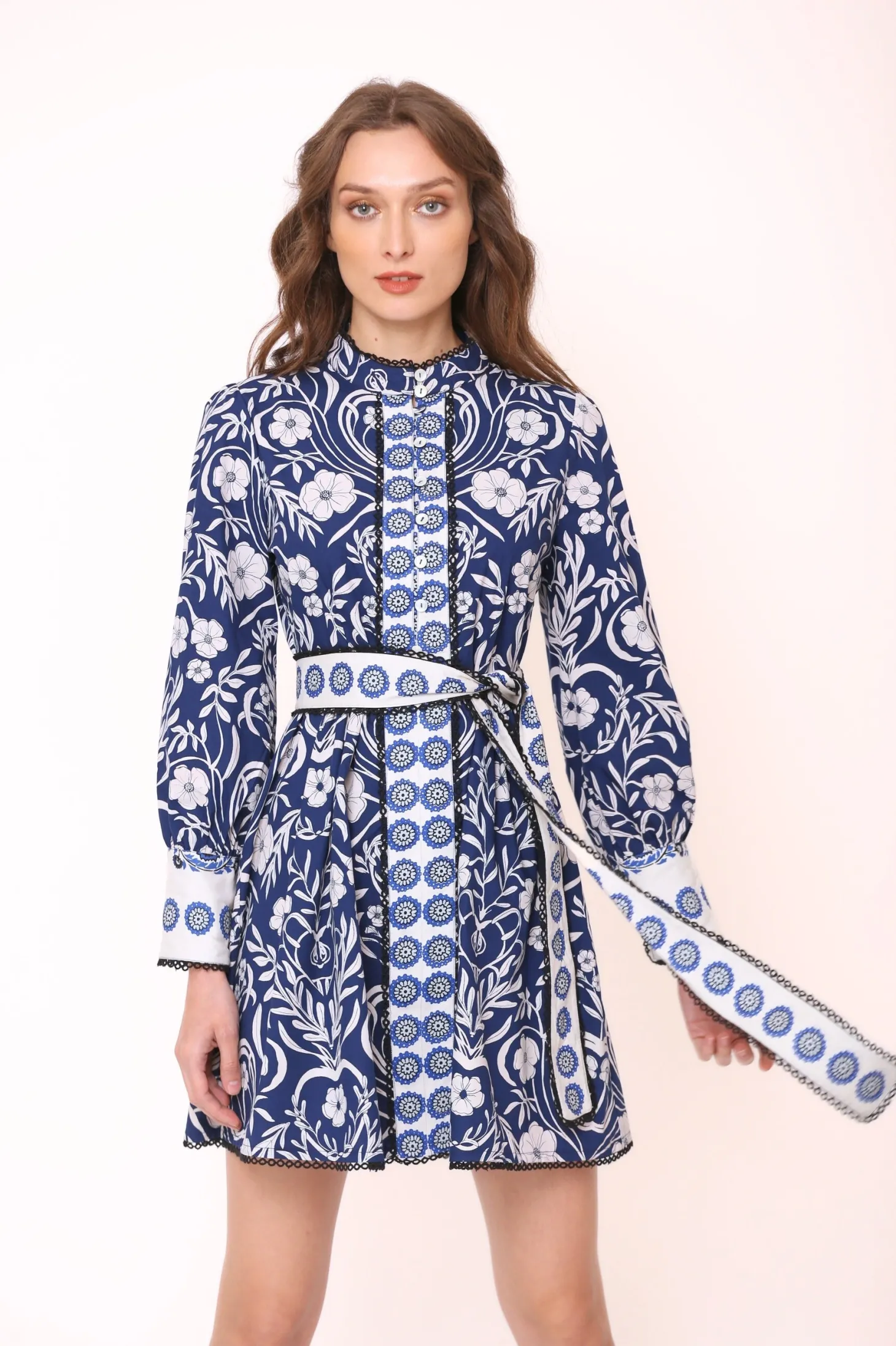 The Nella is a dress to impress. The dress cuts above the knee and features elegant bishop sleeves, a fitted bodice and a flouncy A-line silhouette. Nella is generously adorned with trim and lace details. Nella is made from ultra soft, plant-based Viscose that drapes like silk. The print references the natural beauty of apple orchards in the apple-growing region of Austria’s highlands.