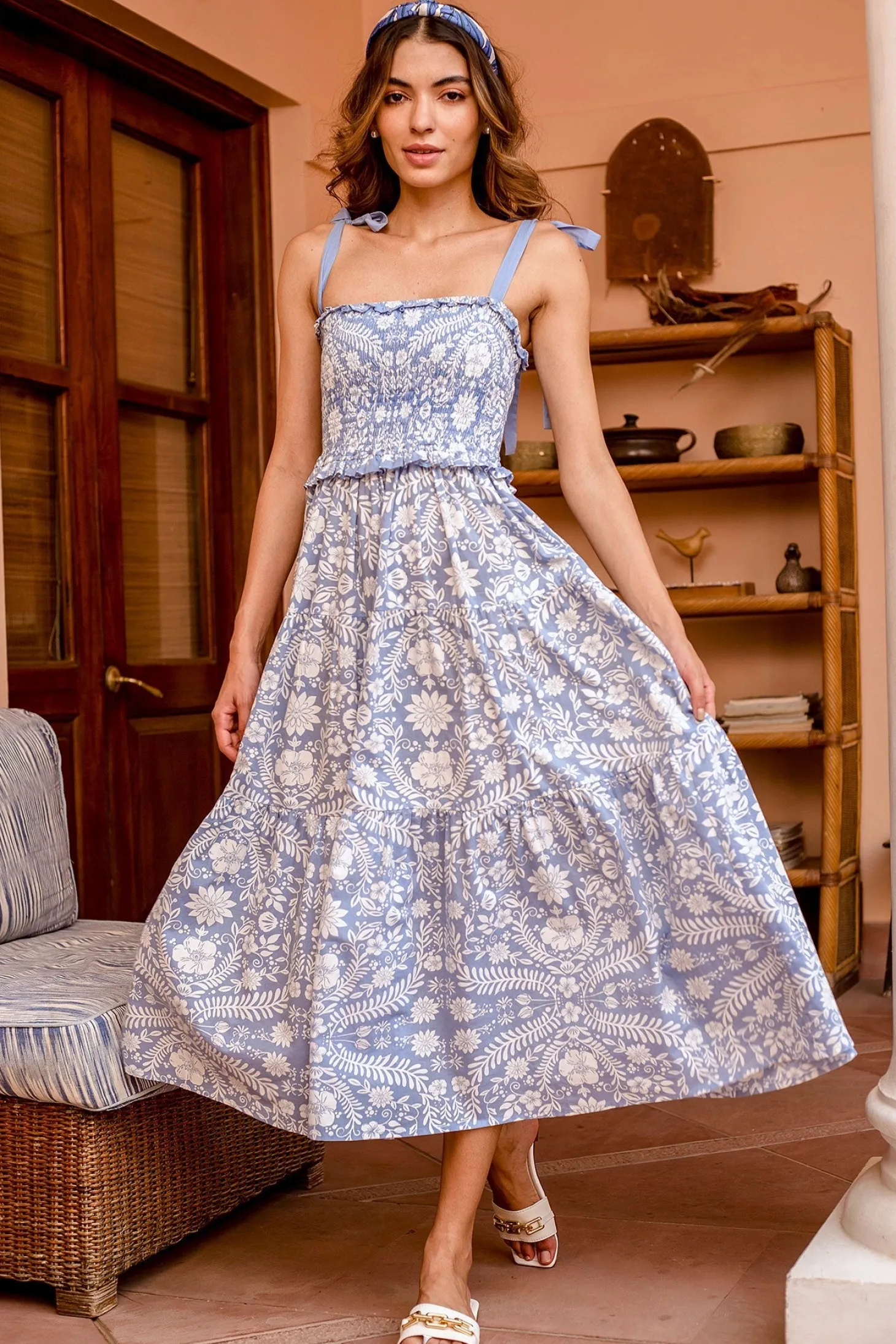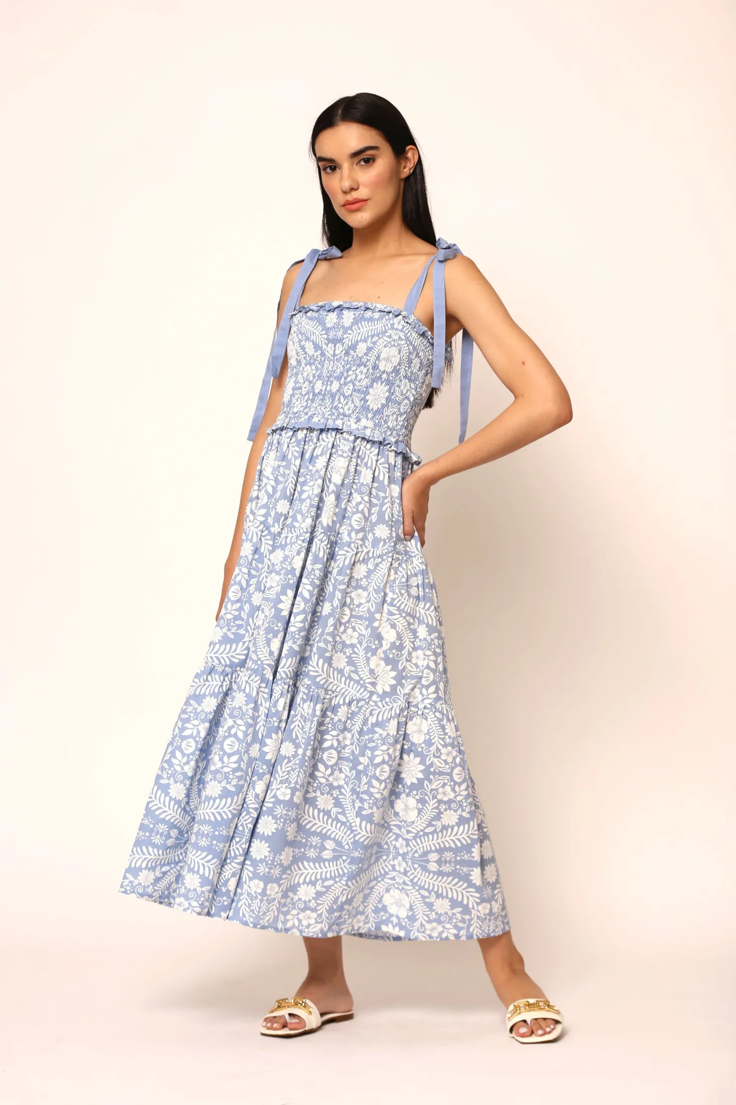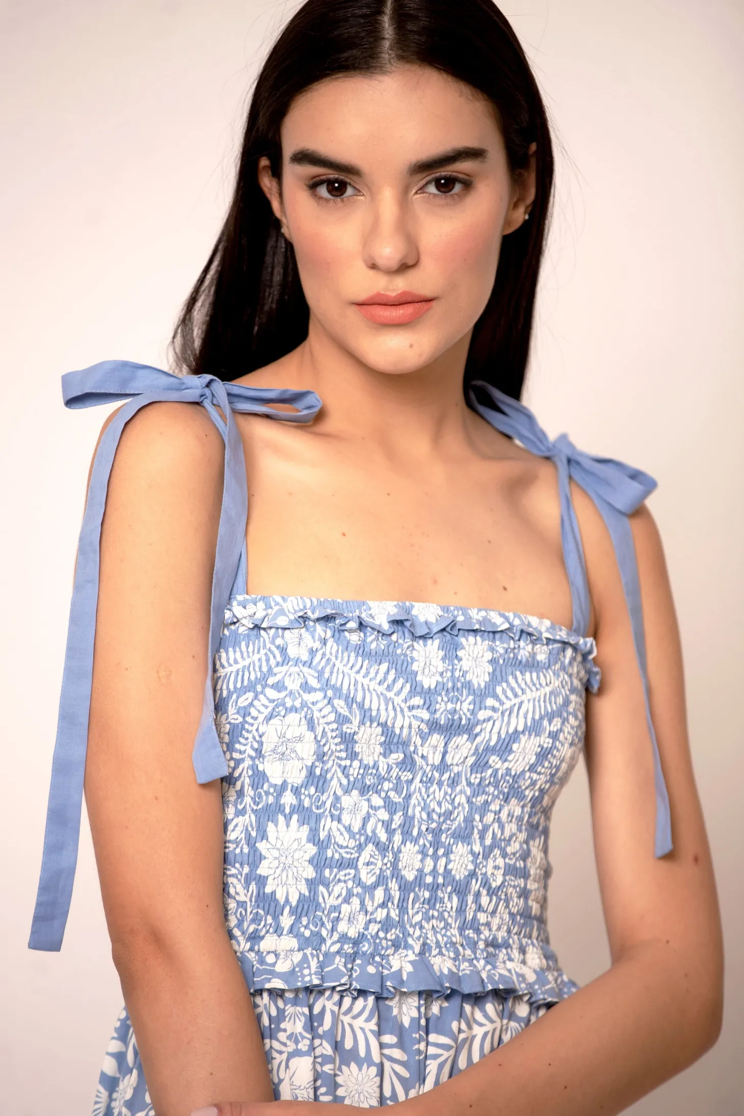 The playful Mia dress has a beautiful tiered A-line silhouette with romantic ruffle details on the waist. The smocked top and self-tie straps ensure comfort and a perfect fit. Mia is made from a soft, breathable cotton cambric fabric that will keep you cool on a hot summer day. “Paradiso” is inspired by the serenity and lush nature of Pondicherry’s backwaters that are lined with dense palm trees.