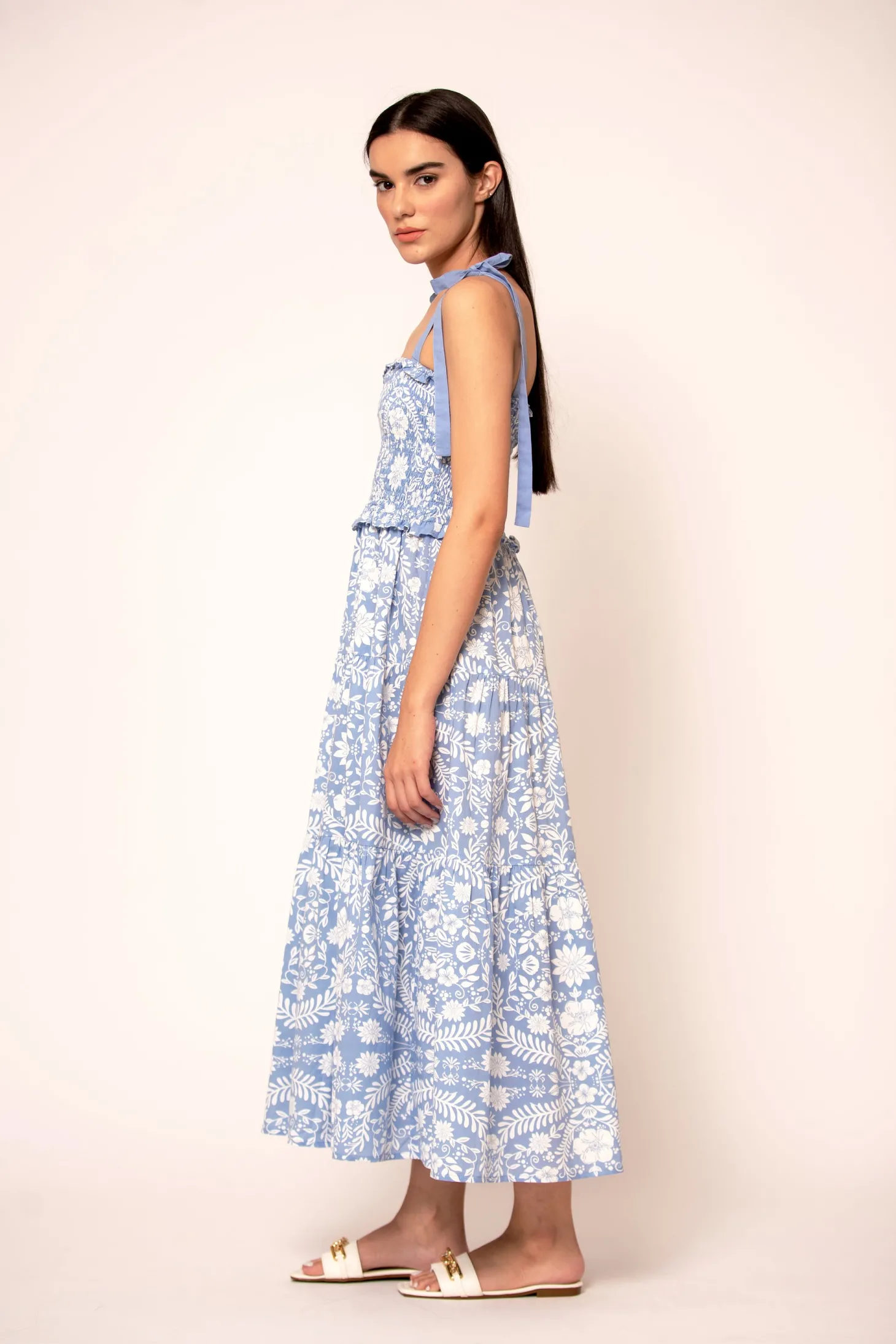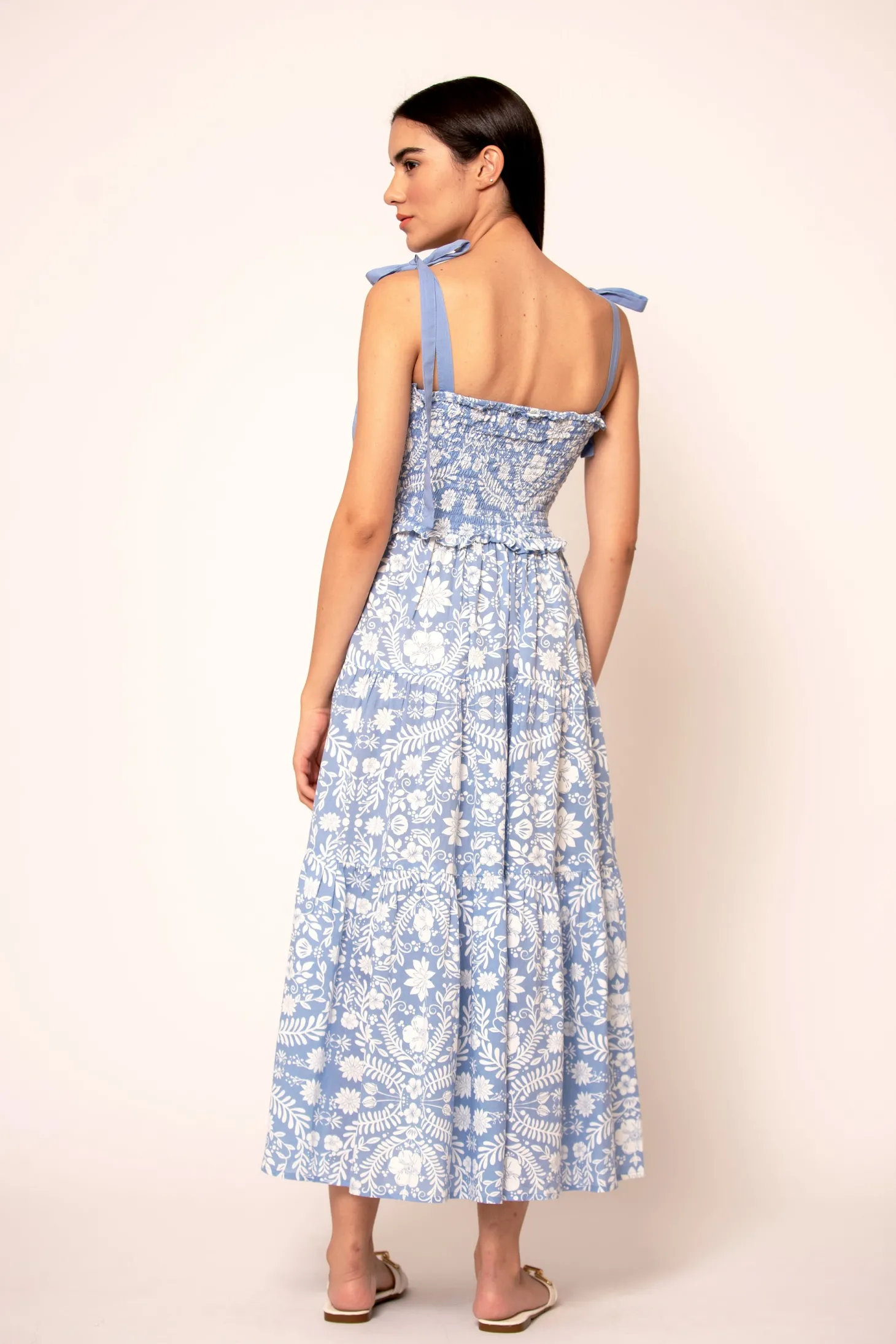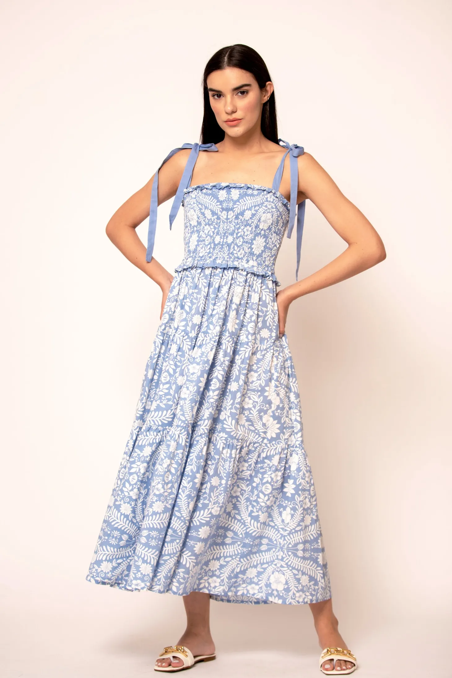 The playful Mia dress has a beautiful tiered A-line silhouette with romantic ruffle details on the waist. The smocked top and self-tie straps ensure comfort and a perfect fit. Mia is made from a soft, breathable cotton cambric fabric that will keep you cool on a hot summer day. “Paradiso” is inspired by the serenity and lush nature of Pondicherry’s backwaters that are lined with dense palm trees.