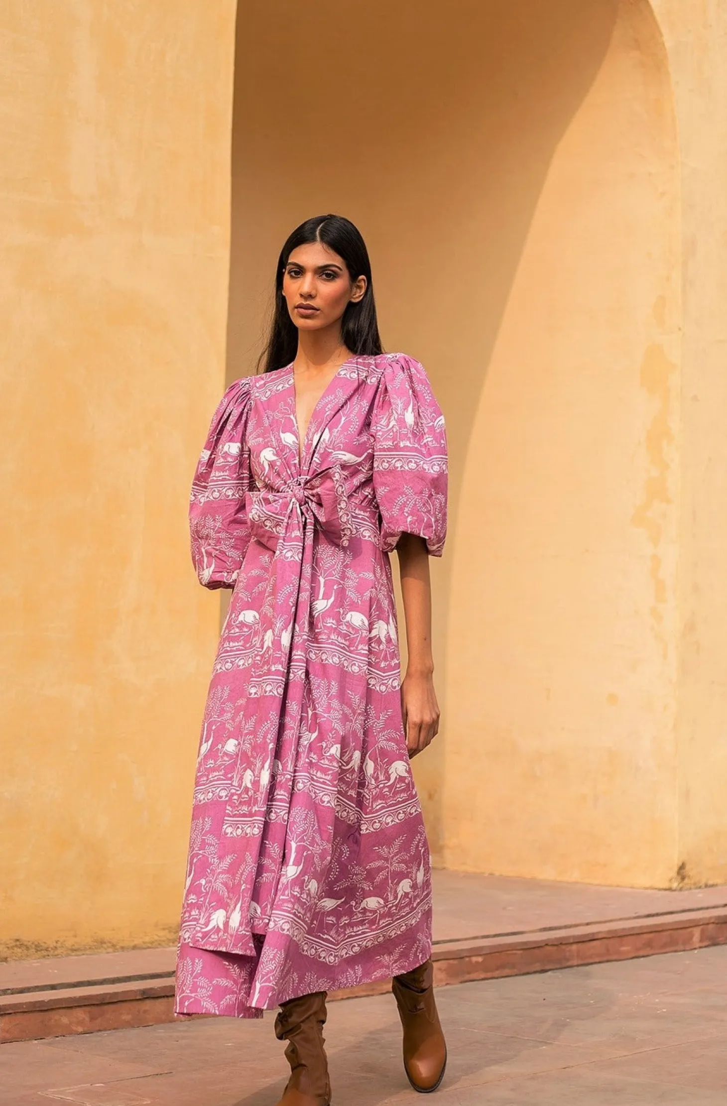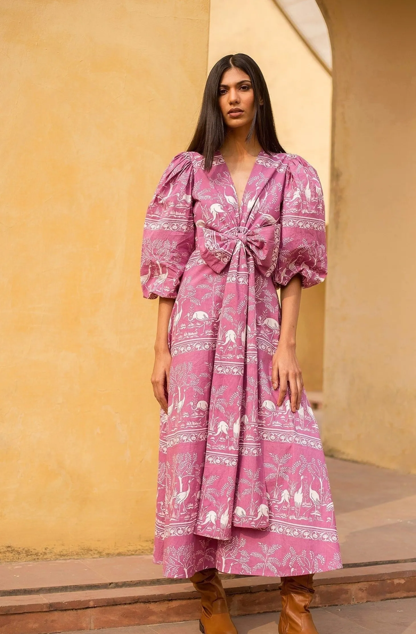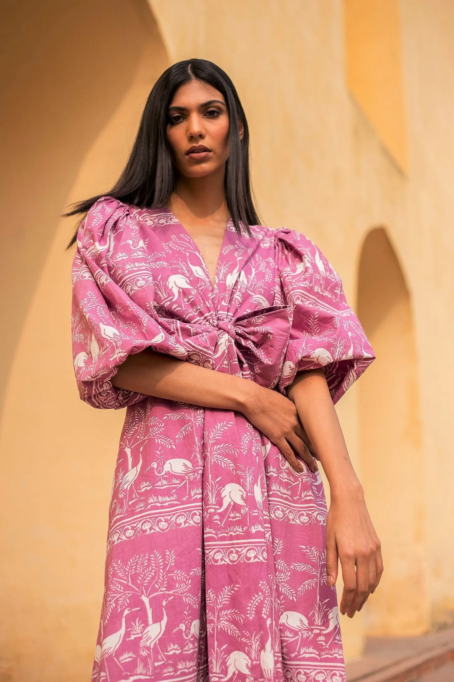 Our signature style and all-time favourite Lola now features a slimmer, buttoned-down A-line silhouette with longer sleeves fit for fall season. Lola is made from wrinkle-resistant cotton poplin with a subtle sheen that adds drape and beauty to the garment. The featured print references the harmony of nature within the concept of the Garden of Eden.