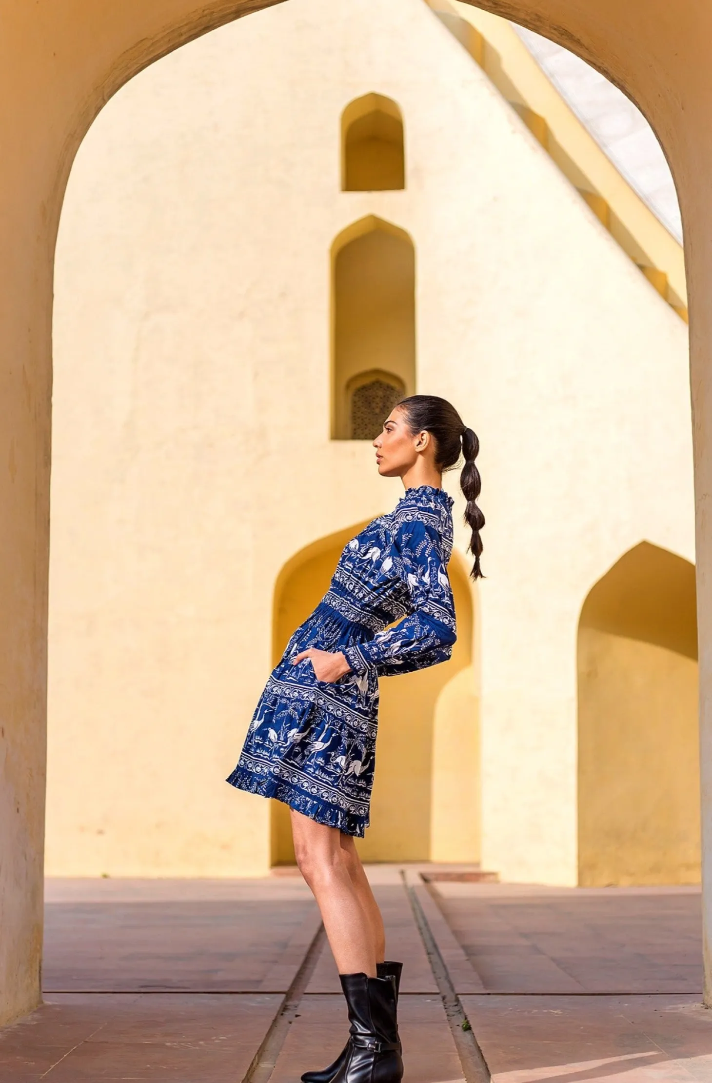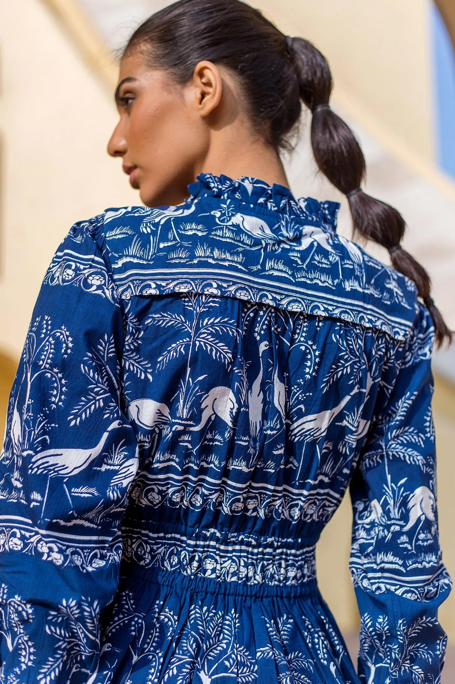 The stunning Alice is back in a new intriguing print. The pleats, smocking details, deep V-neck and flattering shape make Alice a true showstopper. Alice is made from wrinkle-resistant cotton poplin with a subtle sheen that adds drape and beauty to the garment. The featured print references the harmony of nature within the concept of the Garden of Eden.