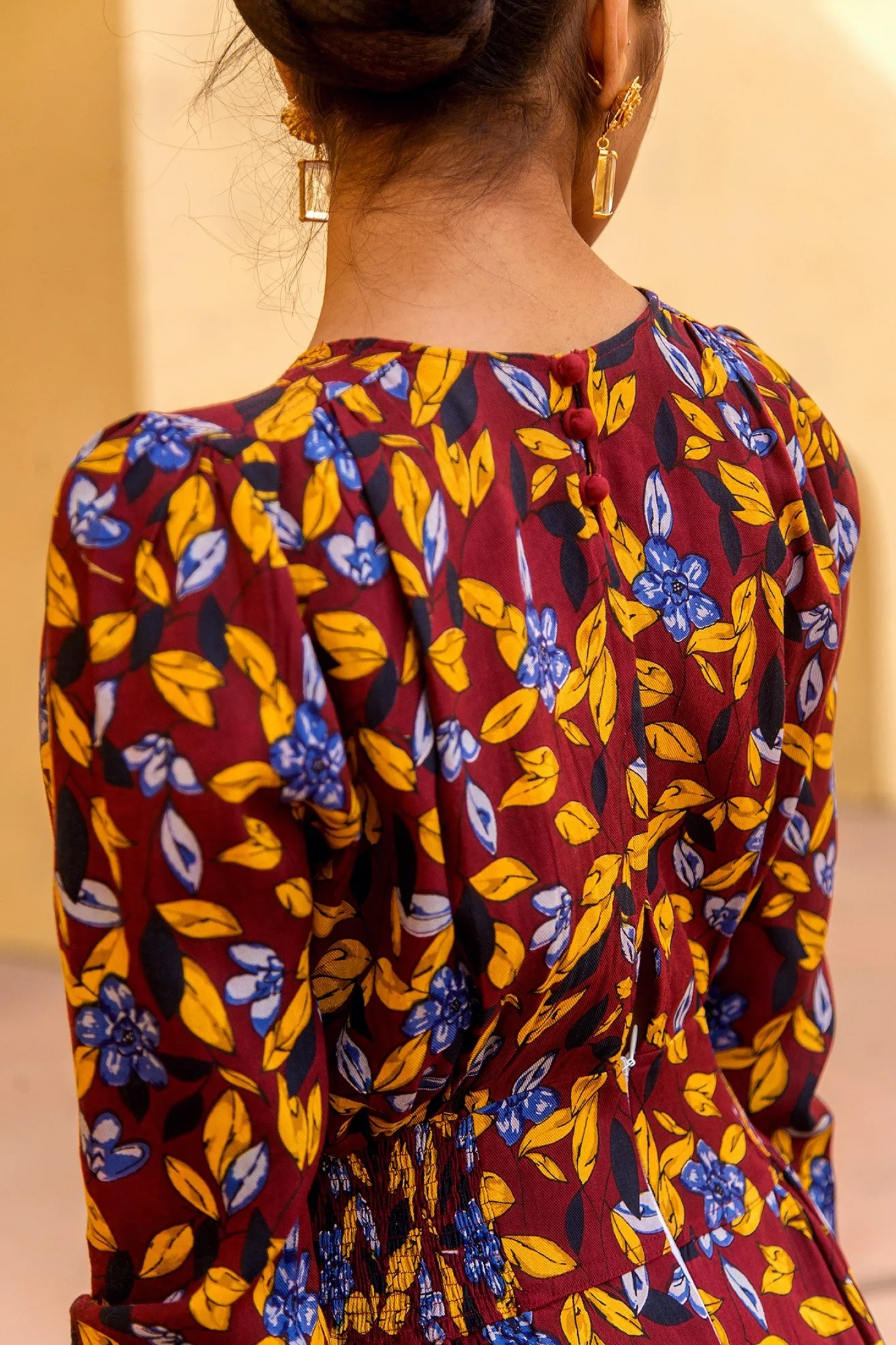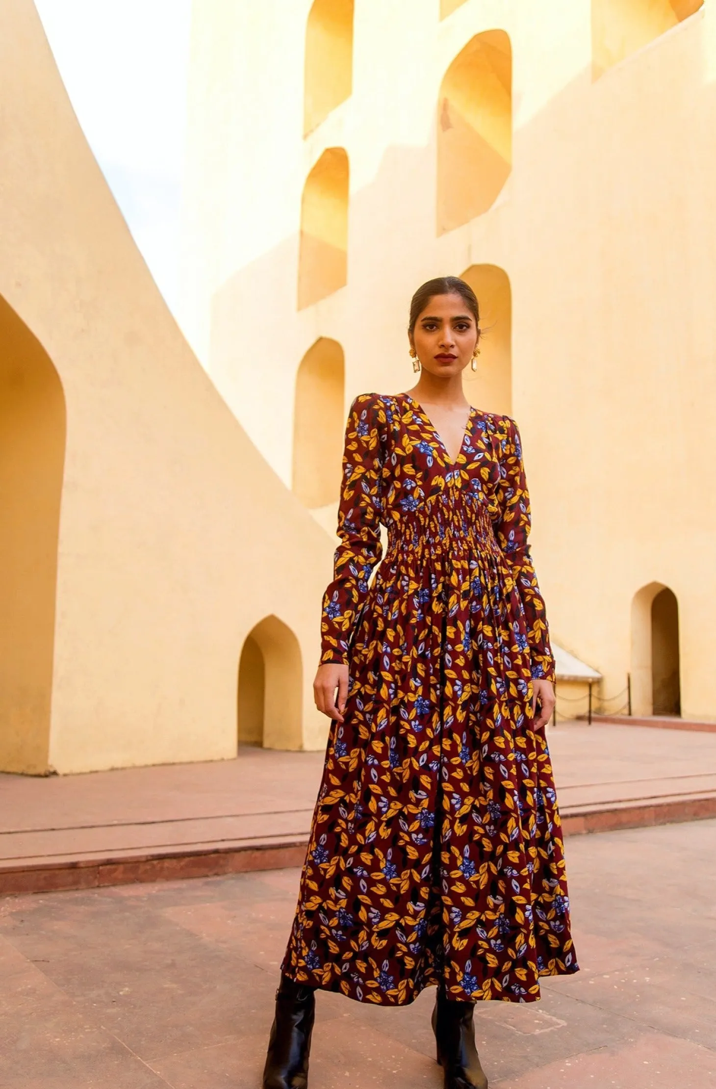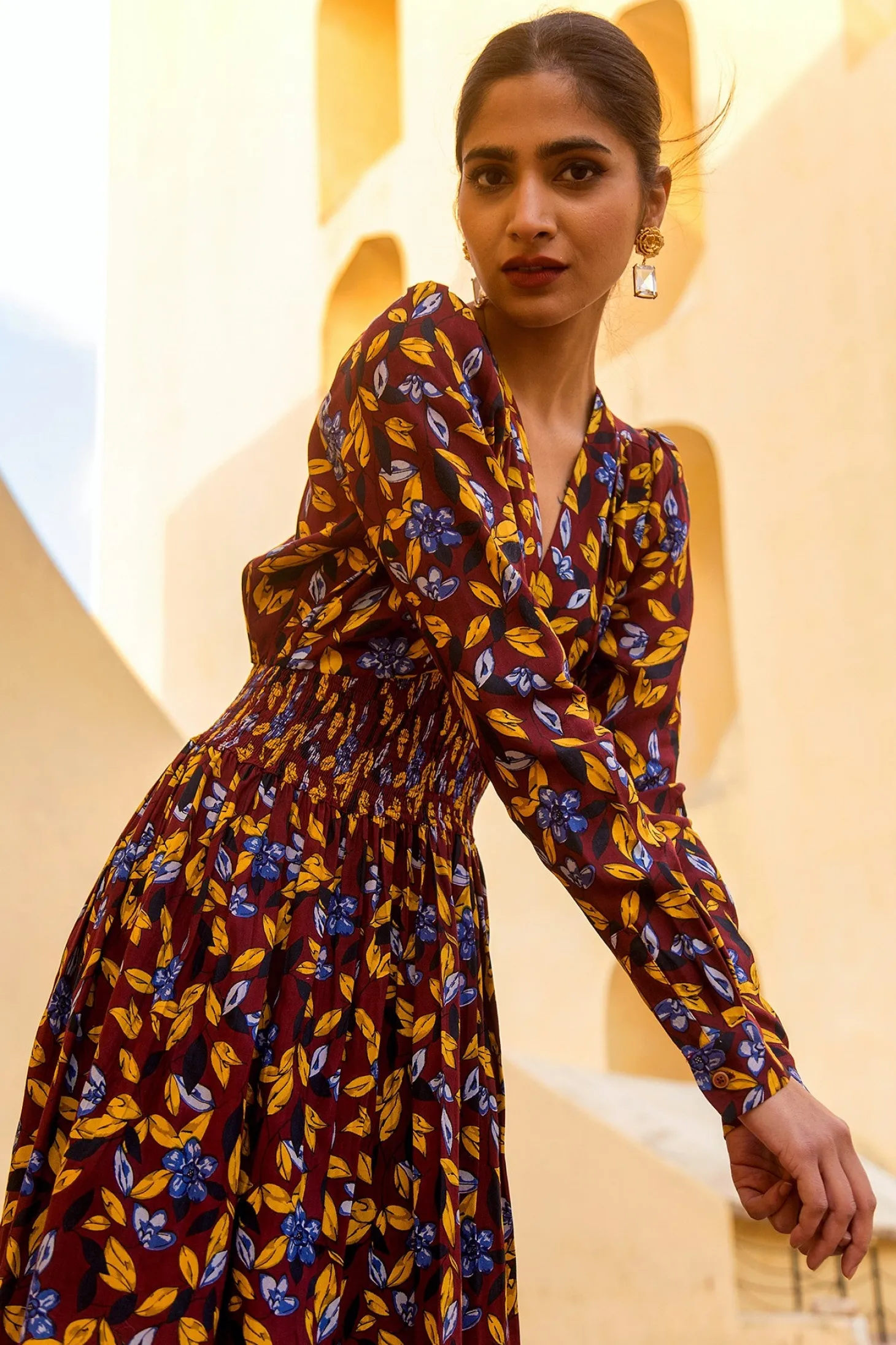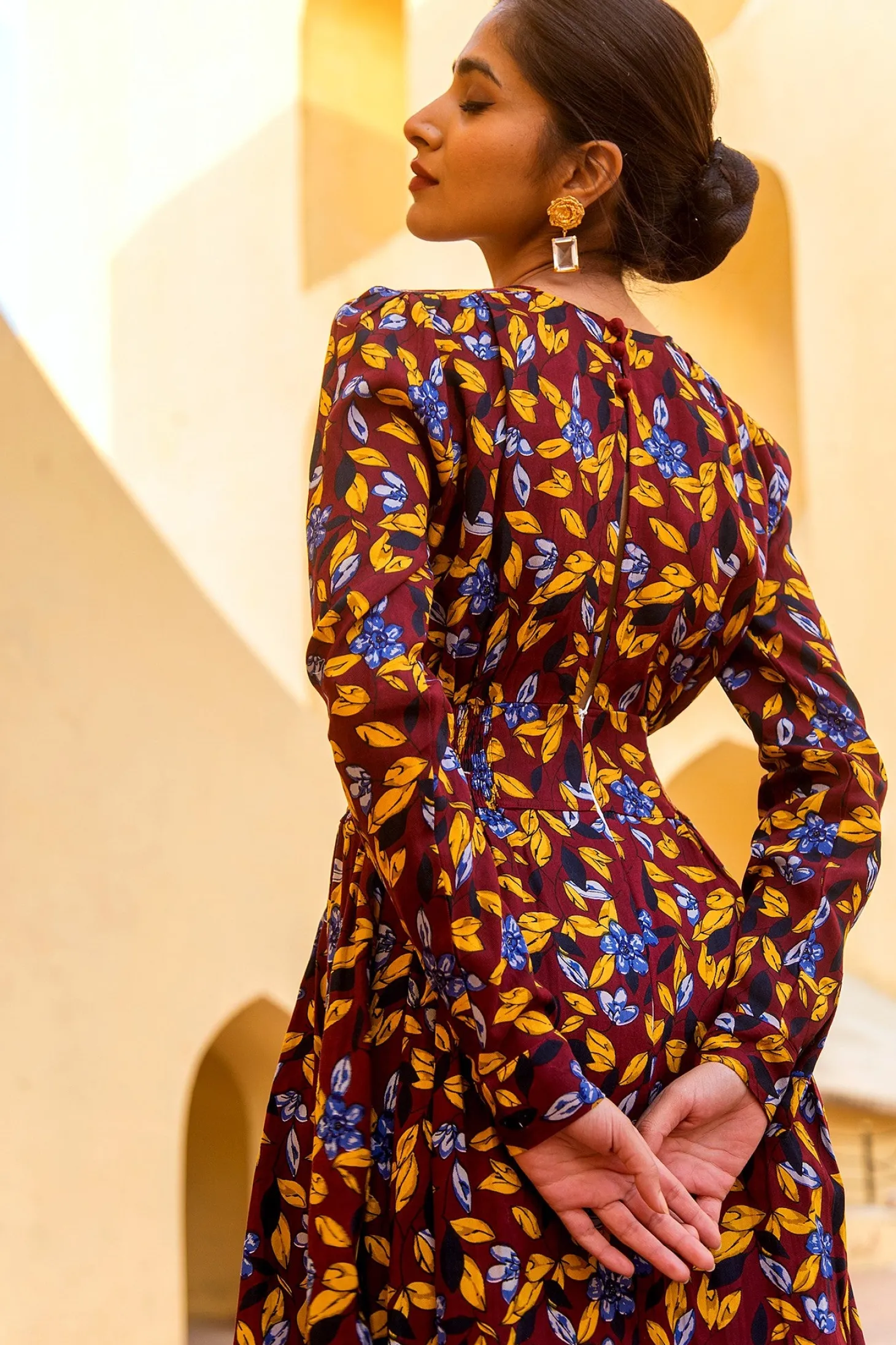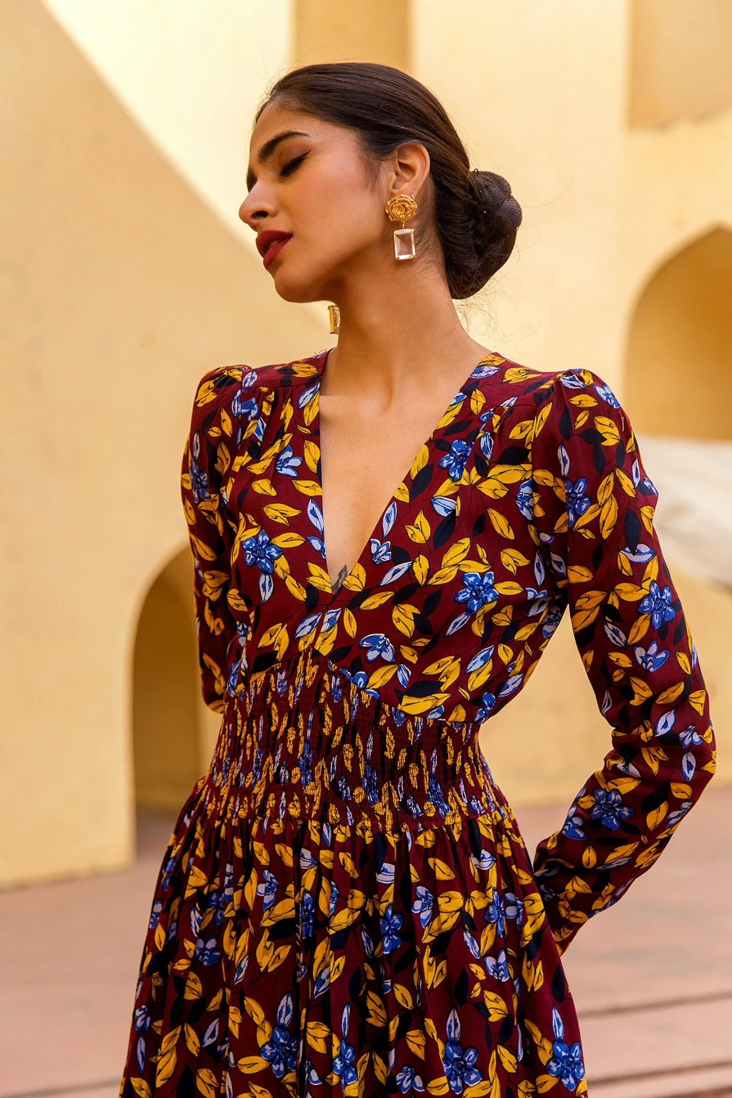 With its tailored shape, smocked waist and enticing open back, the Farah is the dress you wear to feel fabulous. Farah is crafted from luxurious modal fabric that drapes like silk and has an incredible soft touch. The dress showcases our floral “Shalimar” print inspired by the ancient Shalimar Garden in Kashmir.