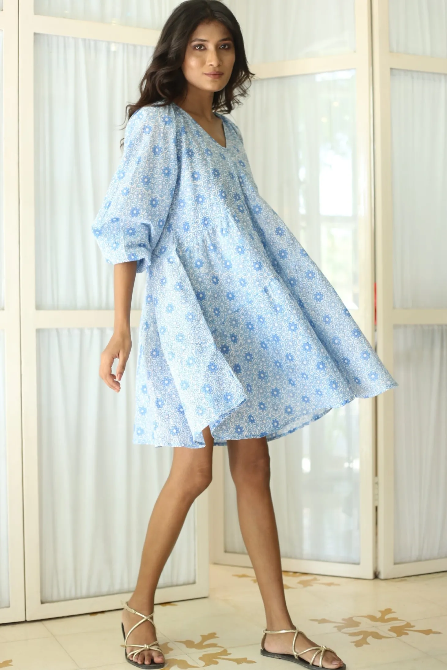 The fun Izzy dress is crafted from 100% cotton. Izzy showcases a geometric print pattern which is inspired by the hand-painted Portuguese tiles (Azulejos) that embellish sidewalks, staircases and old villas of Goa. The artwork is handprinted according to the ancient art of block printing.