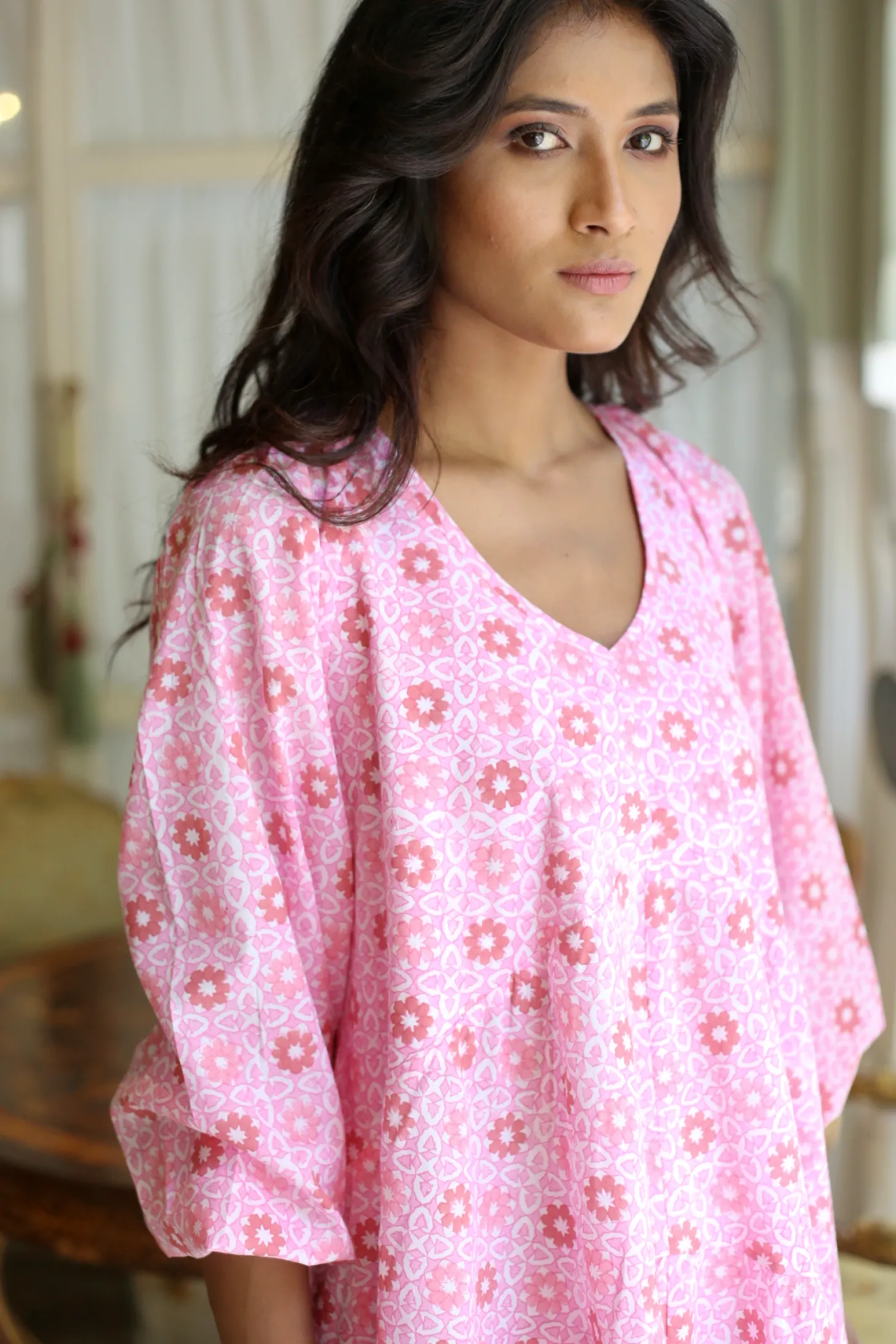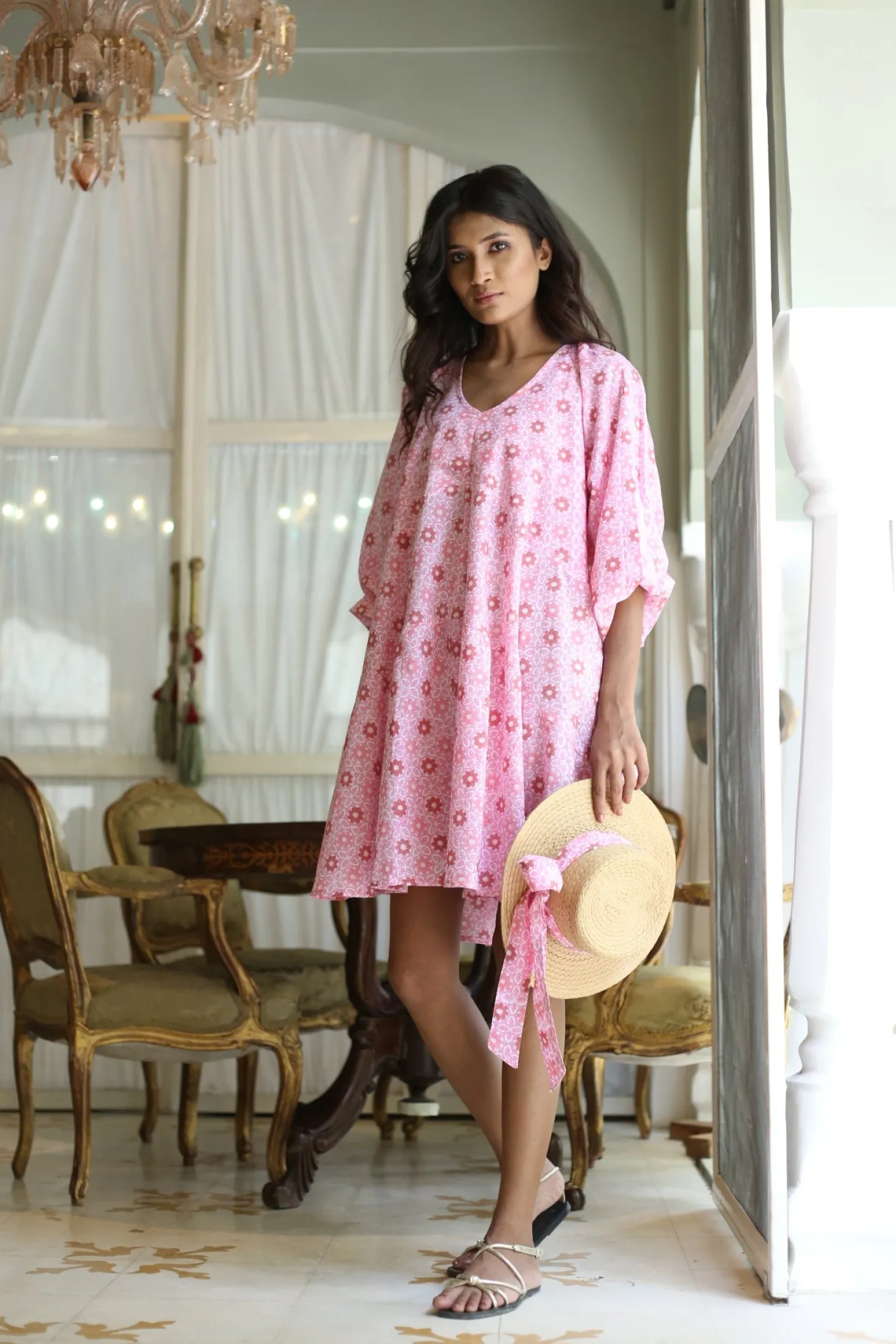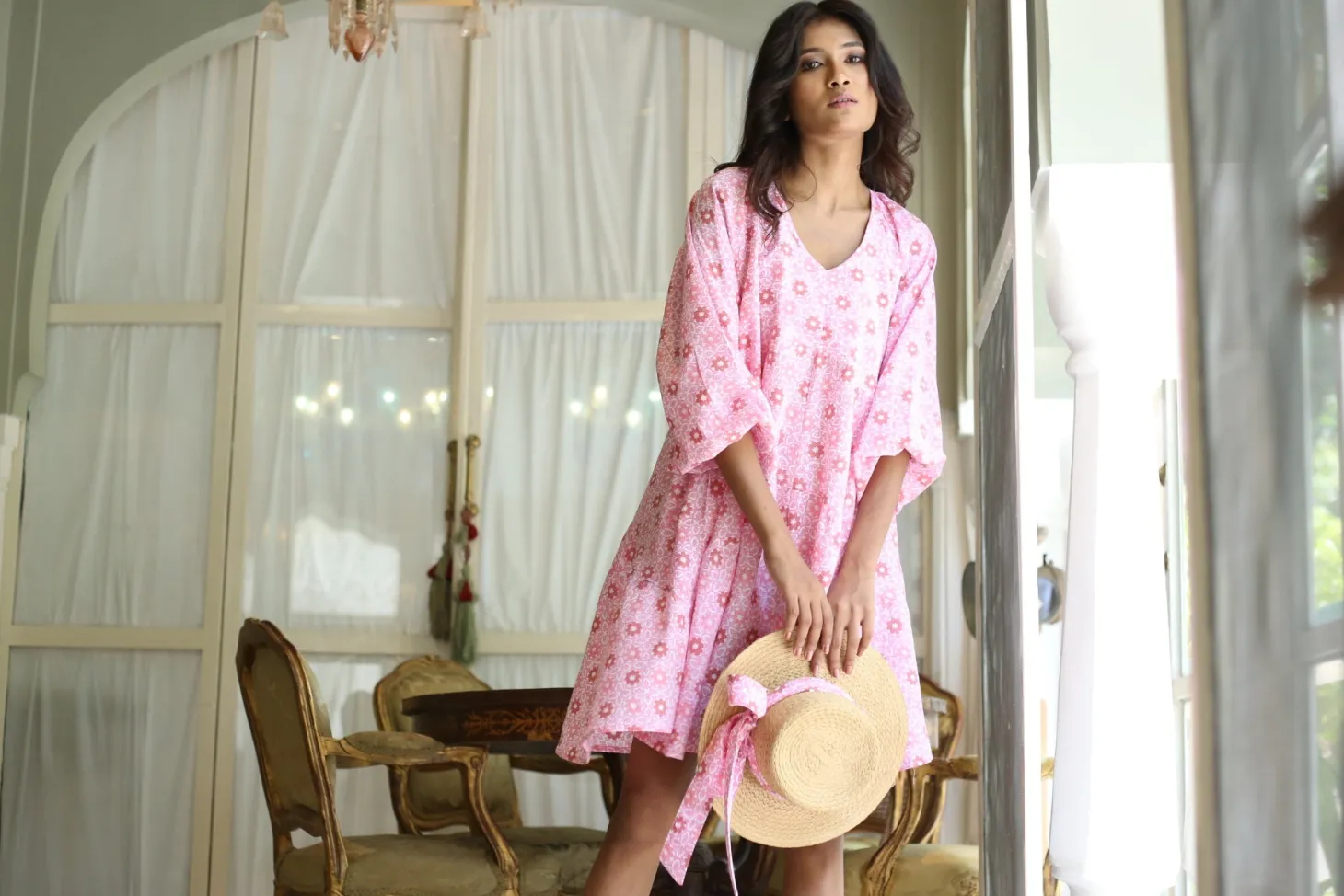 The fun Izzy dress is crafted from 100% cotton. Izzy showcases a geometric print pattern which is inspired by the hand-painted Portuguese tiles (Azulejos) that embellish sidewalks, staircases and old villas of Goa. The artwork is handprinted according to the ancient art of block printing.